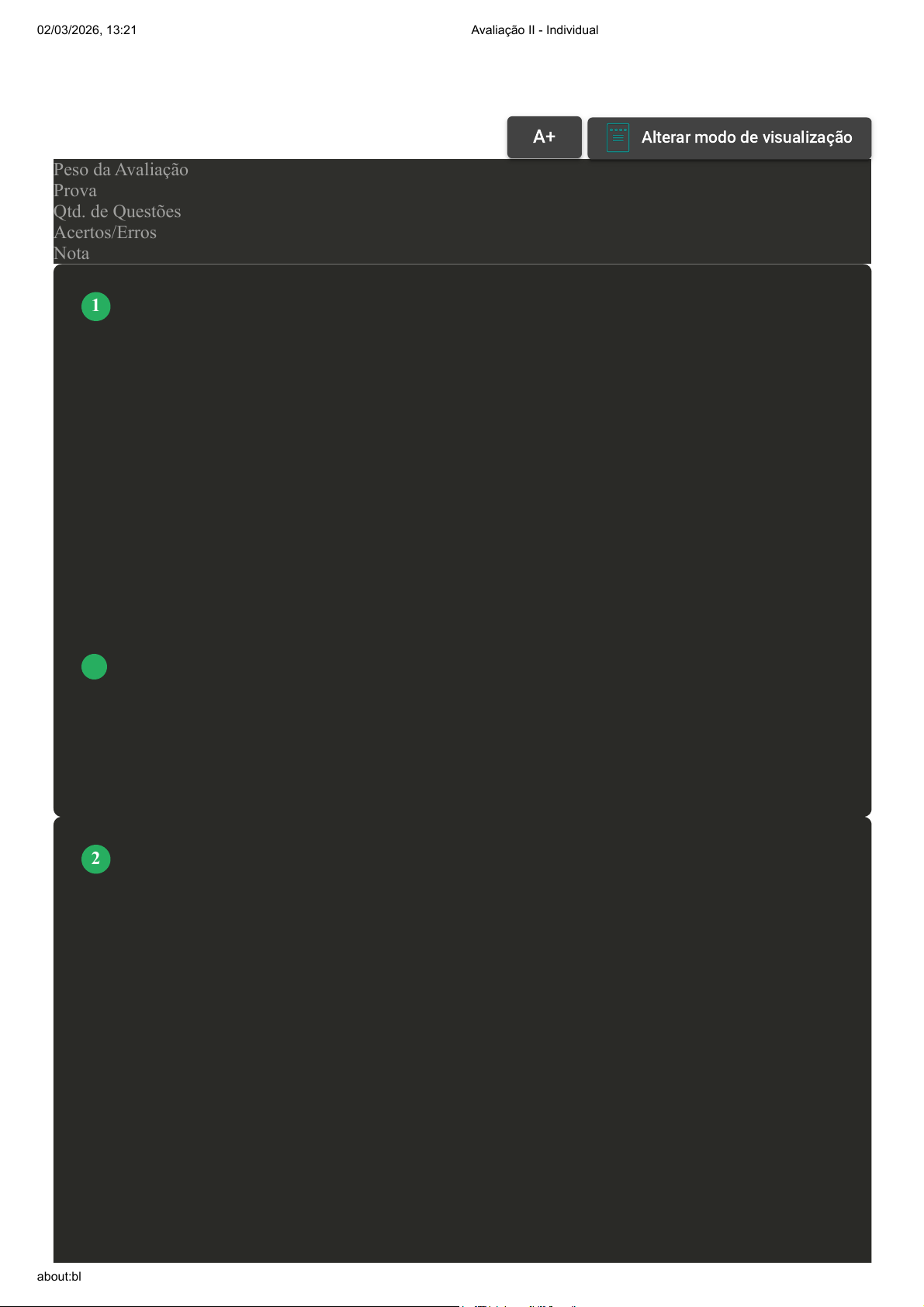 Prova Impressa GABARITO | Avaliação II - Individual (Cod.:1600638) Peso da Avaliação 1,50 Prova 115005341 Qtd. de Questões 10 Acertos/Erros 9/1 Nota 9,00 As células dendríticas são células que têm origem na medula óssea, e possuem inúmeras projeções membranares longas (ou dendritos) que possuem a função de fagocitose. Essas células desempenham uma função muito importante no sistema imune, são conhecidas como células apresentadoras de antígenos (APC). Com relação à função dessas células, analise as sentenças a seguir: I- As células dendríticas podem capturar os antígenos e apresentar aos linfócitos T; essa apresentação irá fornecer sinais que estimularão a proliferação e a diferenciação dos linfócitos durante a resposta imune adaptativa. II- As células dendríticas são consideradas uma ponte entre a imunidade inata e a adaptativa. III- As células dendríticas são as APCs menos eficazes para a ativação de células T imaturas, sendo assim não conseguem iniciar as respostas das células T. Assinale a alternativa CORRETA: A Somente a sentença I está correta. B As sentenças I e II estão corretas. C Somente a sentença III está correta. D As sentenças II e III estão corretas. Existem três vias do sistema complemento: a via clássica, a via das lectinas e a via alternativa. O sistema complemento faz parte da resposta imune inata e adaptativa, ou seja, ele pode ser ativado por microrganismos/patógenos ou por anticorpos. A forma como o sistema complemento é ativado é importante para podermos classificar o tipo de via. Sobre a via de ativação do complemento conhecido como "via da lectina", classifique V para as sentenças verdadeiras e F para as falsas: ( ) Essa via é ativada por uma proteína plasmática chamada lectina, que se liga aos resíduos de manose presentes nas superfícies celulares microbianas. ( ) Essa via é ativada através de anticorpos, promovendo uma ativação semelhante à ativação proposta pela via clássica. ( ) Essa via é ativada por uma lectina plasmática que se liga a resíduos de manose, promovendo uma ativação em cascata semelhante à via clássica. ( ) Essa via é ativada por resíduos de Lipopolissacarídeos (LPS), promovendo uma sequência de ativação semelhante à via alternativa do complemento. Assinale a alternativa que apresenta a sequência CORRETA: A F - V - V - F. VOLTAR A+Aumentar, FonteAlterar modo de visualização 1 2 02/03/2026, 13:21 Avaliação II - Individual about:blank 1/6 B V - V - F - V. C V - V - F - F. D V - F - V - F. As reações de antígeno e anticorpos são altamente específicas. Devido à grande especificidade, as reações entre antígenos e anticorpos são apropriadas para a identificação de um deles e pelo uso de outro. Esta é a base das reações sorológicas. Os testes sorológicos têm uma grande importância na patologia clínica. Sobre a pesquisa de antígenos e anticorpos, analise as sentenças a seguir: I- A pesquisa dos anticorpos é importante no diagnóstico diferencial, onde através da detecção das diferentes classes de imunoglobulinas pode-se diferenciar a fase da doença. II- O diagnóstico de uma doença congênita é baseado na presença de IgG no soro do recém-nascido. III- A pesquisa dos anticorpos pode ser usada como avaliação do prognóstico de doenças. IV- A pesquisa de antígenos no soro do paciente pode ser utilizada como critério de cura, avaliando a presença ou a ausência do patógeno. V- A pesquisa de anticorpos pode ser usada em Inquéritos epidemiológicos, podendo estabelecer a prevalência de uma doença, através da pesquisa do anticorpo IgM. Assinale a alternativa CORRETA: A As sentenças I, III e IV estão corretas. B As sentenças II, III e IV estão corretas. C As sentenças II e IV estão corretas. D As sentenças I e II estão corretas. O sistema complemento consiste em uma cascata de proteínas precursoras inativas que, conforme vão sendo ativadas, tornam-se capazes de ativar as outras proteínas na sequência. Esse sistema é um dos principais mecanismos efetores da Imunidade Humoral. Sobre o auxílio desse mecanismo na resposta imunológica, analise as sentenças a seguir: I- Media os processos inflamatórios. II- Atrai células fagocíticas. III- Ativa células fagocíticas. Assinale a alternativa CORRETA: A Somente a sentença I está correta. B Somente a sentença III está correta. C As sentenças I, II e III estão corretas. 3 Revisar Conteúdo do Livro 4 02/03/2026, 13:21 Avaliação II - Individual about:blank 2/6 D Somente a sentença II está correta. O sistema inato é capaz de reconhecer estruturas moleculares que são produzidas pelos patógenos microbianos, ao qual podemos chamar de "padrões moleculares associados aos patógenos" (PAMPs) e "padrões moleculares associados ao dano" (DAMPs). Você deve se perguntar como o sistema imune inato é capaz de reconhecer essas substâncias PAMPs e DAMPs. Esse reconhecimento é graças aos vários tipos de receptores celulares, presentes em diferentes localizações nas células, e moléculas solúveis no sangue e secreções mucosas, que são capazes de reconhecer os PAMPs e DAMPs. Com relação ao sistema imune inato, classifique V para as sentenças verdadeiras e F para as falsas: ( ) Imunidade inata representa uma resposta tardia e estereotipada a um número grande, mas limitado, de estímulos. ( ) Moléculas, tais como lipopolissacarídeos, resíduos de manose e ácidos teicoicos, são consideradas Padrões moleculares Associados a patógenos (PAMPS) e ativam a resposta imune inata, por interação de receptores de reconhecimentos padrões. ( ) As principais características da Imunidade inata são: especificidade e diversidade de reconhecimento, memória, especialização da resposta, autolimitação e tolerância a componentes próprios. ( ) Os receptores que reconhecem os PAMPs recebem o nome de "receptores de reconhecimento padrão" (PRRs), eles atuam na