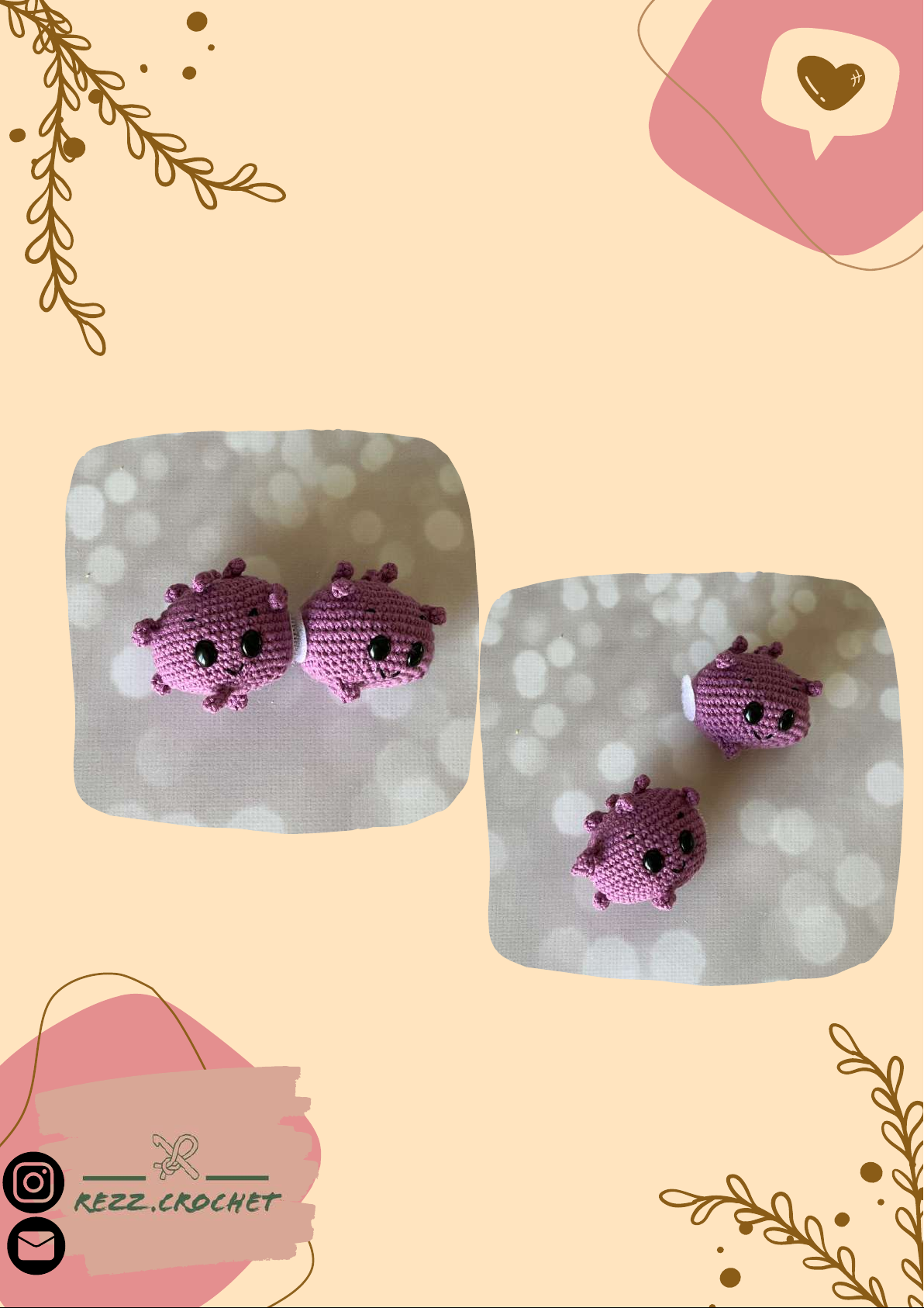 Neisseria meningitidis Pattern This amigurumi toy pattern is designed by @rezz.crochet for personal use. The fountainhead and consulting mind of microbes is Zeynep Ceren Karahan.Toys made using this pattern can be sold as finished products. However, selling, sharing, or reproducing all or part of this pattern is prohibited due to intellectual property rights. rezz.crochet@gmail.com ATTACHABLE OPTION BEFORE STARTING STITCH GUIDE/ ABBREVIATIONS U.S. terms mr: magic ring sc: single crochet inc: increase (two single crochets in the same stitch) dec: decrease (crocheting two stitches together) BO: booble stitch, 4dctog (4 incomplete dc and pull through 5 loops) BLO: back loop only FLO: front loop only hdc: half double crochet hdcinc: two hdc in the same stitch dc: double crochet ch: chain cc: slip stitch (....)*: repeat what's inside the parenthesis as many times as the number next to the asterisk (..): the number inside indicates how many rounds to crochet in the same manner YARN- Weight 2 Fine COLOURS: purple, black 2.5 mm crochet hook, needle, stuffing, 6x8 mm oval safety eyes, stitch marker, scissors, optional: velcro, hook & loop fastener NOTE: Please note that this pattern is crocheted in continuous rounds for all the parts. At the end of each round, move your stitch marker to the last stitch of the round and continue. Make two coccus 8sc in MR (8)1. 8inc (16)2. (sc,inc)*8 (24)3. (2sc,inc)*8 (32)4. (3sc,inc)*8 (40) 5. (4sc,inc)*8 (48)6. 7-12 (6 rounds) 48sc (48) 13. (4sc, dec)*8 (40) 14. (3sc,dec)*8 (32) Place 8 mm oval safety eyes between rounds 11-12, 4 stitches apart 15. (2sc,dec)*8 (24) 16. (sc,dec)*8 (16) Stuff the coccus. 17. 8dec (8) FO, close the remaining stitches with a needle. Weave the end in. If you want your meningoccus attachable, sew a velcro (hook & loop fastener) to the sides of them between rounds 10-15. Or simply sew the two coccus to each other. HEAD TO BODY PILI Attach the yarn randomly where you want to add a pilus. ch 5, start from the 2nd st from the hook, 4 sc, sc back in the same beginning st. FO, knot the two ends and weave in. Repeat this,as many as you wish around the coccus.I made 15 pili on each coccus. Embroider a mouth (smiling or angry or flat, your choice! ) on your coccus. Thank you for choosing to crochet with me :) When sharing photos of your amigurumis on Instagram, don't forget to tag me @rezz.crochet and use the hashtag #rezzcrochet! You can sell the finished toy you made with this pattern. rezz.crochet@gmail.com @rezz.crochet @rezz.crochet @knotjustanotherhooker @dreamiescrochet @maravirok @melzyarnart @yarnandhookcreations Tester Appreciation