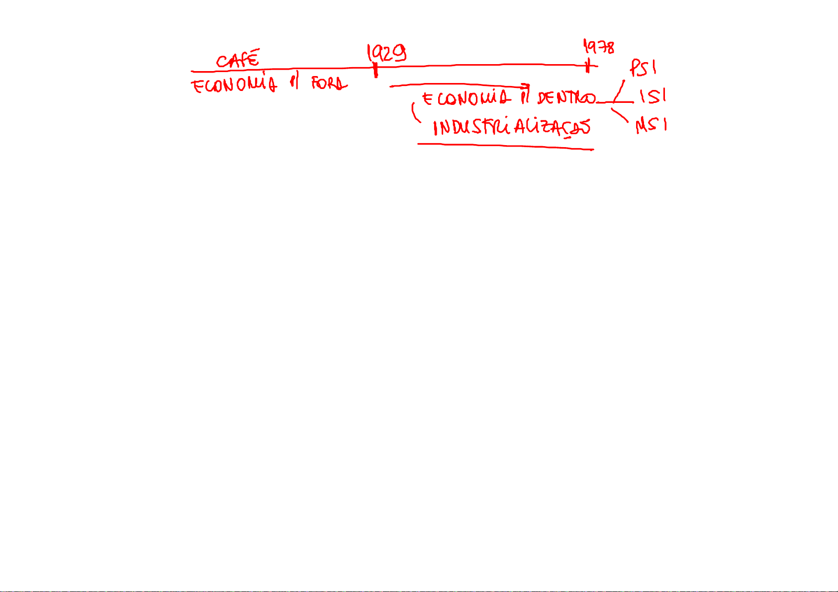 Parte III: Abordagem Histórica da Economia Brasileira Capítulo 14: Processo de Substituição de Importações Parte III Capítulo 14 Gremaud, Vasconcllos e Toneto Jr. 1 Introdução • A crise dos anos 30 foi um momento de ruptura ou transformação estrutural na Economia Brasileira. Ô Desde esta data o modelo agroexportador é paulatinamente afastado e ocorre a industrialização • A forma assumida pela industrialização brasileira, pelo menos entre 1930 e 1960, foi a chamada industrialização substituidora de importações. Parte III Capítulo 14 Gremaud, Vasconcllos e Toneto Jr. 2 O deslocamento do centro dinâmico • O deslocamento do centro dinâmico no Brasil é: ê O período em que a determinação do nível de renda deixa de estar ligada a elementos como a demanda externa (base de uma economia agroexportadora) e passam a depender de elementos ligados ao mercado interno, como o consumo e o investimento doméstico. ê Isto ocorre basicamente na década de 30 Parte III Capítulo 14 Gremaud, Vasconcllos e Toneto Jr. 3 A crise de 30 • A crise de 1930, iniciada nos Estados Unidos e que se repercutiu rapidamente na Europa, chegou ao Brasil com uma Crise no Balanço de Pagamentos •rápida queda na demanda por café. •reversão dos fluxos de capital • Dada a política do governo no Brasil a crise foi menor e mais rápida do que nos EUA Parte III Capítulo 14 Gremaud, Vasconcllos e Toneto Jr. 4 Parte III Capítulo 14 Gremaud, Vasconcllos e Toneto Jr. 5 As políticas do governo (1) ¶ A política de “manutenção da renda” •política de defesa do café: •estocagem e queima de café •Esta política, financiada em parte com crédito e emissão de moeda, sustenta a demanda agregada mantendo o emprego e a renda •considerada uma típica política keynesiana Parte III Capítulo 14 Gremaud, Vasconcllos e Toneto Jr. 6 As políticas do governo (2) · O Deslocamento da demanda” - problema de BP enfrentado com controles e desvalorização cambial - produtos importados se tornam mais caros e difíceis de serem adquiridos - as dificuldades de importação deslocam a demanda que foi mantida dos produtos antes importados para a produção nacional. - A queda de rentabilidade do setor cafeeiro faz com que o capital flua para outros setores. ý Setores domésticos (industria) aumentam sua importância frente aos exportadores (agricultura) Parte III Capítulo 14 Gremaud, Vasconcllos e Toneto Jr. 7 Parte III Capítulo 14 Gremaud, Vasconcllos e Toneto Jr. 8 Participação dos Setores no Valor adicionado (1928 - 1945) 52,5 47 43,2 37,1 22,7 23,9 29,9 36,1 14,8 18,8 17,3 16,6 10 10,3 9,6 10,2 0% 20% 40% 60% 80% 100% 1928/29 1930/34 1935/39 1940/45 Agricultura Indústria Governo Outros Fonte: Haddad (1978) A Revolução de 1930 • Os anos 30 também foram marcados por importantes mudanças de ordem política. Ø A Revolução de 30: • Movimento político-militar que derrubou o presidente Washington Luis e impediu a posse do novo presidente eleito Júlio Prestes. • O principal efeito da revolução foi a derrubada do grupo até então hegemônico no país, a oligarquia cafeeira paulista. Parte III Capítulo 14 Gremaud, Vasconcllos e Toneto Jr. 9 Populismo •A década de 30 foi marcada pela condução do governo, por parte de Getúlio Vargas, sobre um equilíbrio instável entre os grupos que o apoiavam •Os compromissos básicos sobre os quais se assentava os governos da fase populista eram: a) Não alterar a situação política e fundiária do campo. b) Trazer para a base de sustentação do governo as massas urbanas sem radicalização Urbanização da hegemonia Parte III Capítulo 14 Gremaud, Vasconcllos e Toneto Jr. 10 As Características do PSI •É uma industrialização fechada pois: •É voltada para dentro, visa o atendimento do mercado interno. •depende de medidas que protegem a industria nacional. • Desvalorização cambial • controles cambiais • taxas múltiplas de cambio • tarifas aduaneiras Parte III Capítulo 14 Gremaud, Vasconcllos e Toneto Jr. 11 O PSI: a sequência lógica 1 Inicio com um estrangulamento externo gerando escassez de divisas; 2 o governo tenta controlar a crise por meio de medidas que dificultam as importações e acabam por proteger a indústria nacional. 3 gera-se uma onda de investimentos nos setores substituidores de importação, aumentando a renda nacional e a demanda agregada; 4 novo estrangulamento externo em função do próprio crescimento da demanda (volta a 1) Parte III Capítulo 14 Gremaud, Vasconcllos e Toneto Jr. 12 Outras Características do PSI • O motor do PSI é o estrangulamento externo. • É uma industrialização por etapas: • apesar de ao final se buscar uma industria completa, a industrialização se faz por partes (rodadas) • a pauta de importações ditava a seqüência dos setores objeto dos investimentos industriais bens de consumo não duráveis – têxteis, calçados, alimentos bens de consumo duráveis – eletrodomésticos, automóveis bens intermediários – ferro, aço, cimento, petróleo, químicos bens de capital – máquinas, equipamentos Parte III Capítulo 14 Gremaud, Vasconcllos e Toneto Jr. 13 Parte III Capítulo 14 Gremaud, Vasconcllos e Toneto Jr. 14 C on su m o n ão d u ráve l C on su m o d u ráve l In term e d iários C ap ita l 4 ª rod ad a 3ª rod ad a 2ª rod ad a 1ª rod ad a Ind ustr ia lizaçã o p or sub stitu içã o d e im p or taç ões – a ind us tr ia lizaç ã o p or etap as As dificuldades do PSI (1) A. Tendência ao desequilíbrio externo por várias razões: i. a política cambial transferia renda da agricultura para a indústria (“confisco cambial”) e desestimulava as exportações agrícolas; ii.indústria sem competitividade devido ao protecionismo; iii. elevada demanda por importações devido ao investimento industrial e ao aumento da renda. Parte III Capítulo 14 Gremaud, Vasconcllos e Toneto Jr. 15 As dificuldades do PSI (2) B. Aumento da par