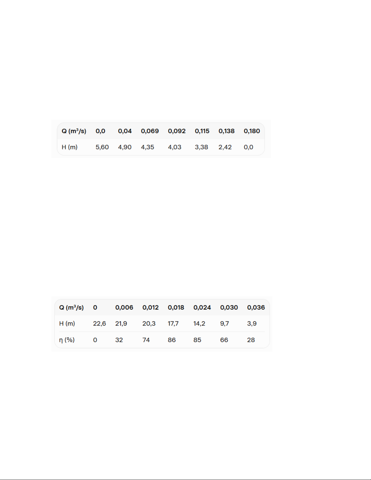 tabela a seguir. Quando duas bombas iguais a esta são associadas em série ou em paralelo,