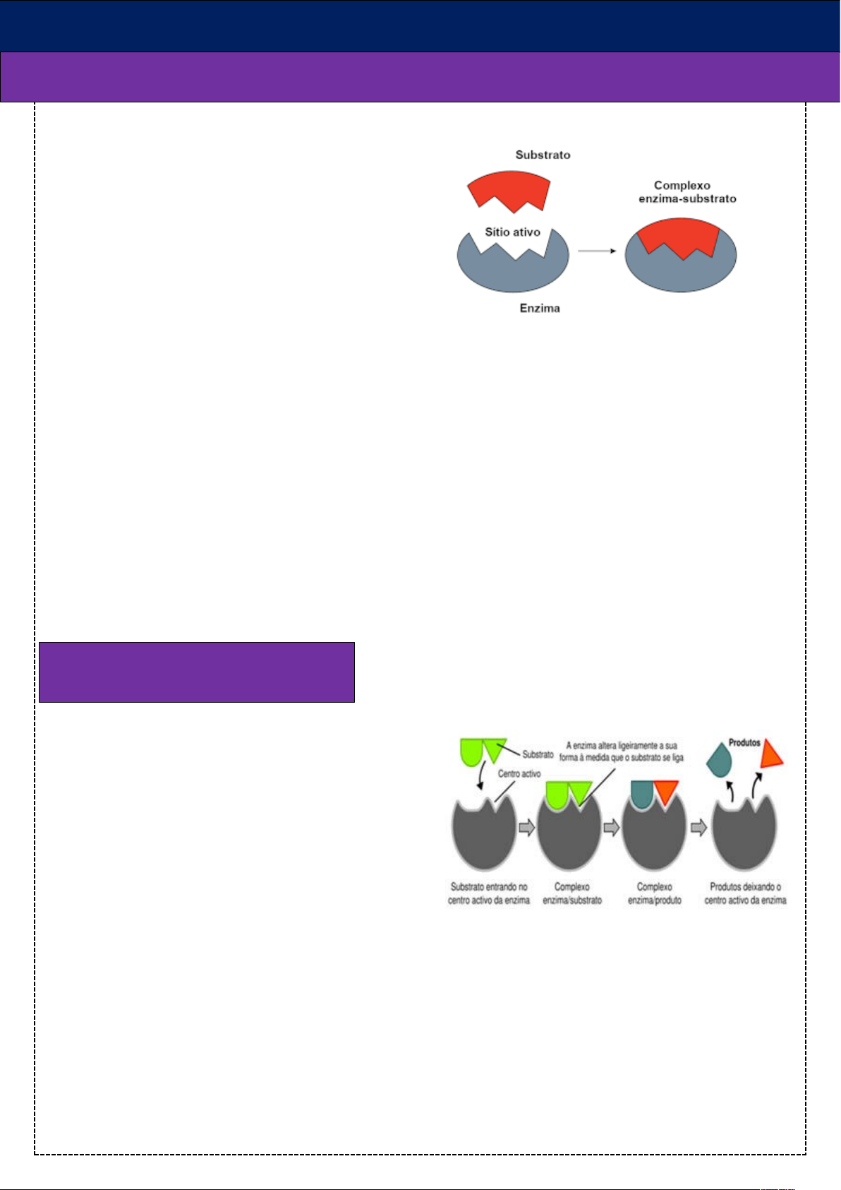 Enzimas São proteínas globulares com função de catalise de reações, ou seja, elas aceleram as reações químicas sem serem consumidas Energia de ativação: É a quantidade de energia necessária para moléculas atingirem o estado de transição de reagentes para produtos. As enzimas elas diminuem essa energia de ativação, fazendo com que o progresso da reação seja menor e sua velocidade aumente Modelo proposto para a interação enzima-substrato Antes diziam que a enzima chamada de sitio ativo se ligava com o substrato se tornando o complexo enzima-substrato, isso sem nenhuma alteração enzimática para receber o substrato. Esse modelo ficou chamado de chave- fechadura Atualmente, ainda se acredita nesse modelo, porém, hoje sabemos que a região do sitio ativo não esta totalmente preparada para receber o substrato, fazendo com que ela sofra algumas modificações para receber o substrato. Essa nova proposta se chama modelo do encaixe induzido · Depois que a enzima acelera uma reação e forma uma outra reação ela se desliga do produto para participar de uma próxima reação e a velocidade com que ela faz isso se chama número de renovação (Kcat) Kcat: número máximo de mols que podem ser convertidos em produto por mol de enzima Mecanismos de Catalise Catalise por proximidade: Aproximação e orientação das moléculas de substrato, possibilitando a interação com a enzima Catalase ácido-basica: os grupos ionizáveis ou os prostéticos podem atuar como ácidos ou bases carregando as enzimas com cargas positivas ou negativas, facilitando a interação da enzima com o substrato Catalase por estiramento ou encaixe induzido: A ligação da enzima muda a estrutura do substrato (Estiramento), favorecendo uma reação subsequente, como uma hidrolise acida Catalise covalente: Envolve uma interação covalente entre enzima e substrato. Envolve uma modificação transitória na enzima Fatores que alteram a velocidade das reações enzimáticas · Concentração da enzima: Quanto maior a concentração da enzima, maior a velocidade da reação desde que a quantidade de substrato corresponda a quantidade da enzima. · PH: As enzimas tem um PH ótimo de atuação, no qual apresentam atividade máxima. Se mudar o PH, muda a carga da enzima, vai mudar a característica do sitio ativo e não liga mais com o substrato · Temperatura: A enzima para ter uma atividade máxima age em uma determinada temperatura, se diminuir ou aumentar essa temperatura vai diminuir a atividade enzimática. Acima da temperatura a enzima desnatura e se ela desnatura, a estrutura da enzima muda e ela não se liga ao substrato EX: Se você quer que um fruto amadureça mais rápido, deixe-o na mesa a uma temperatura de 25 graus que é a temperatura ótima de amadurecimento. Agora, se você quiser que o processo de amadurecimento demore, coloque o fruto na geladeira, que ai diminui sua temperatura ótima e consequentemente sua energia, fazendo com que o amadurecimento seja mais lento. Já se colocarmos o fruto em agua fervente, ele não amadurece mais, pois a enzima desnatura, não sendo mais utilizada · Cofatores: São partes moleculares da enzima diferentes de proteína. Eles agem quando uma proteína esta inativa, ou seja, sua forma não esta propricia para receber o substrato, fazendo com que essas estruturas se liguem as proteínas mudando sua estrutura e tornando-as ativas para receber o substrato. Se ele tiver características inorgânicas, vão ser chamados de ions, já se apresentarem características orgânicas, serão chamados de coenzimas · Concentração de substrato: Em baixas concentrações de substrato a velocidade da reação é proporcional a concentração de substrato (Reação de primeira ordem). Já em altas concentrações a velocidade da reação é constante e independente da quantidade de substrato (Reação de ordem 0) Constante de Michaelis e Menten (KM) Concentração de substrato necessária para se atingir metade da velocidade máxima. Serve para indicar a afinidade (catalisa mais facilmente) da enzima pelo substrato, quanto menor o Km, maior a afinidade image1.png image2.jpeg