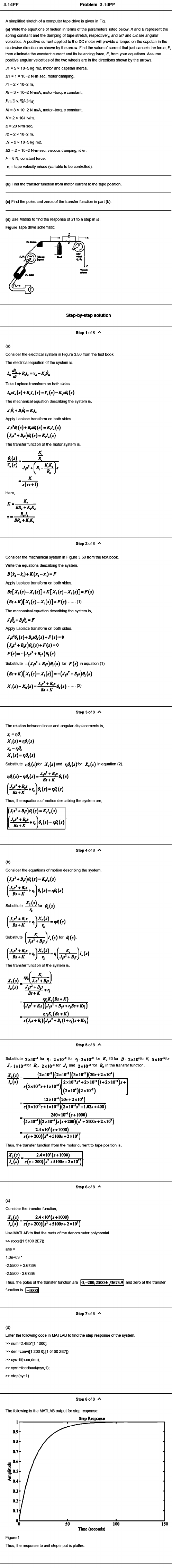 (b) Find the transfer function from motor current to the tape position.