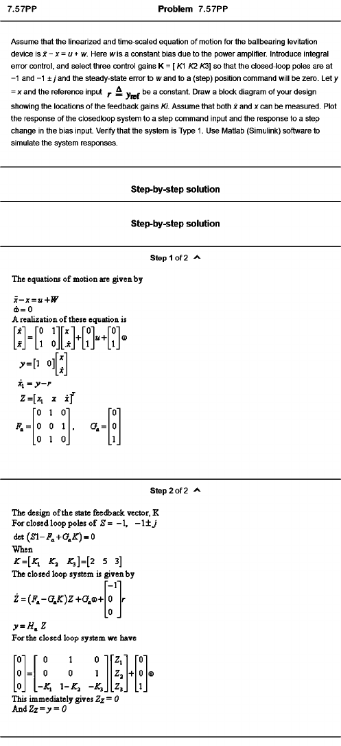 change in the bias input. Verify that the system is Type 1. Use Matlab (Simulink) software to