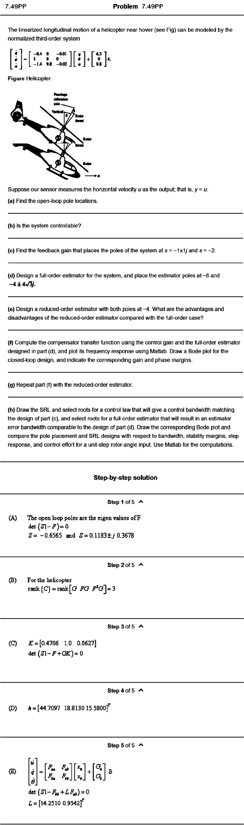 The linearized longitudinal motion of a helicopter near hover (see Fig) can be modeled by the