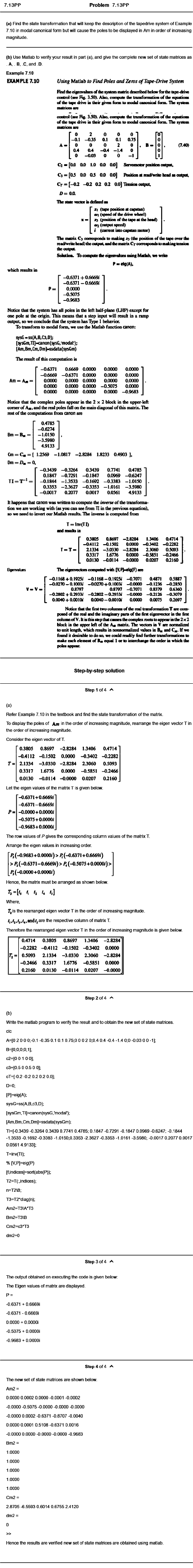 7.10 in modal canonical form but will cause the poles to be displayed in Am in order of increasing