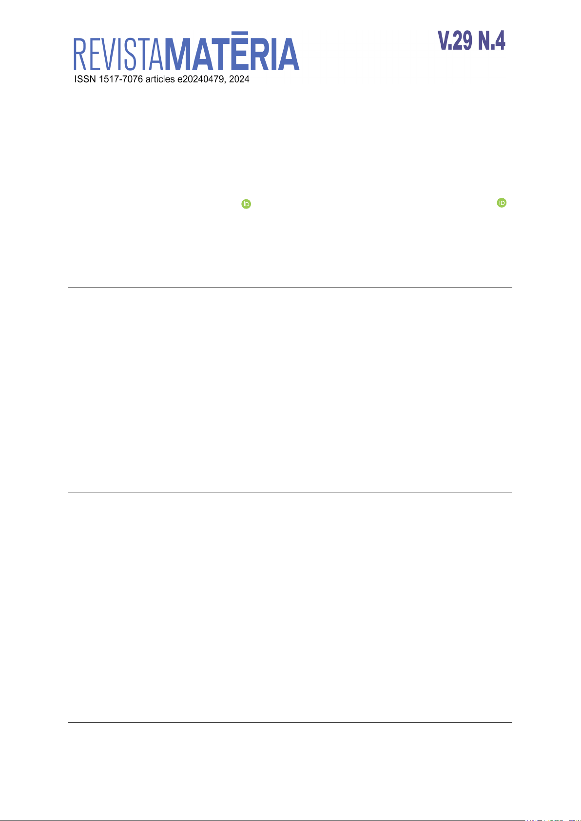 Corresponding Author: Rafael Ferreira dos Santos Data de envio 23/07/2024 Data de aceite 30/09/2024 DOI: https://doi.org/10.1590/1517-7076-RMAT-2024-0479 Microestrutura e propriedades mecânicas do aço AHSS - DP 800 tratado termicamente Microstructure and mechanical properties of heat-treated AHSS - DP800 steel Rafael Ferreira dos Santos¹ , Yogendra Prasad Yadava1, Ricardo Artur Sanguinetti Ferreira1 1Universidade Federal de Pernambuco, Programa de Pós-graduação em Engenharia Mecânica. Avenida Acadêmico Hélio Ramos, s/n, 50640-530, Recife, PE, Brasil. e-mail: ferreira.santos@ufpe.br, yadava@ufpe.br, ricardo.sferreira@ufpe.br RESUMO As transformações microestruturais do aço AHSS do tipo DP 800 foram estudadas com o objetivo de se investigar a influência dos tratamentos térmicos na microestrutura e nas propriedades mecânicas deste aço modificado; versatilizando sua gama de aplicações. O material na condição de como recebido foi submetido a um ensaio de dilatometria, para identificação dos domínios de transformação de fases. Depois de identificados, foram produzidas no material como recebido, algumas sequências térmicas feitas com resfriamento rápido a partir da solubilização parcial (α + γ) a 840°C e total (γ) a, 860°C e 880°C, seguidos de resfriamento. Após os tratamentos, sem revenimento, o material foi submetido a metalografia tradicional e posterior caracterização microestrutural com microscopia de varredura. Depois da caracterização microestrutural os materiais como recebido e tratados nas diferentes temperaturas foram submetidos a ensaios de tração uniaxial. As microestruturas mostraram que o material como recebido é constituído por uma matriz ferrítica, com grão contornados por martensita e bainita. A microestrutura do material resfriado a partir de 840°C mostrou, como era de se esperar, austenita residual, a ferrita, pouca bainita e um aumento significativo no teor de martensita. O resfriamento a partir de 860°C e 880°C produziram resultados, semelhantes, porém sem austenita residual. As propriedades mecânicas revelaram que o aumento do teor de martensita aumenta significativamente o limite de resistência, mas com perda da ductilidade. Palavras-chave: Tratamentos Térmicos; Propriedades Mecânicas; Aço AHSS. ABSTRACT The microstructural transformations of AHSS steel of type DP 800 were studied in order to investigate the influence of heat treatments on the microstructure and mechanical properties of this modified steel; versatilizing its range of applications. The as received material was submitted to a dilatometry test to identify the phase transformation domains. After identification, some thermal sequences were produced in the as received material, made with rapid cooling both in partial solubilization (α + γ) at 840°C and total solubilization (γ) at 860°C and 880°C, followed by cooling. After treatments, without tempering, the material was subjected to traditional metallography and subsequent microstructural characterization with scanning microscopy. After the microstructural characterization, the materials, as received and treated at different temperatures, were subjected to uniaxial tensile tests. The microstructures showed that the as received material is constituted by a ferritic matrix, with grain contoured by martensite and bainite. The microstructure of the cooled material from 840°C showed, as expected, residual austenite, ferrite, little bainite and a significant increase in martensite content. The microstructures showed that the as received material is constituted by a ferritic matrix, with grain contoured by martensite and bainite. The microstructure of the cooled material from 840°C showed, as expected, residual austenite, ferrite, little bainite and a significant increase in martensite content. Cooling from 860°C and 880°C produced similar results, but without residual austenite. The mechanical properties revealed that the increase in martensite content increases significantly the strength limit, but with loss of ductility. Keywords: Heat Treatments; Mechanical Properties; AHSS Steel DP 800. https://orcid.org/0009-0005-5816-2664 https://orcid.org/0000-0002-4136-8421 SANTOS, R.F.; YADAVA, Y.P.; FERREIRA, R.A.S., revista Matéria, v.29, n.4, 2024 1. INTRODUÇÃO Os aços AHSS (Advanced High Strenght Steel) vêm sendo utilizados na indústria automobilística devido ao excelente desempenho estrutural, com limite de resistência variando de 400 a 1200 MPa [1–3]. Estes novos aços vêm, gradativamente, substituindo, com vantagens, os tradicionais aços do tipo HSLA (alta resistência e baixa liga) [4, 5]. Dependendo da composição química [6] e do tipo de processo termomecânico produzido [7], estes aços podem ser do tipo DP (dual phase), CP (fases complexas), TRIP (Plasticidade induzida pela transformação), TWIP (Transformação induzida por maclação), além de outros [2, 3]. O aço DP (Dual Phase) foi desenvolvido com baixo teor de carbono, sendo constituído, microestrutural- mente, pelas fases martensita e ferrita, onde a martensita confere alta resistência e a ferrita a boa ductilidade alongamento [7]. O aço DP (Dual Phase), além de boa resistência, exibe uma excelente formabilidade que possibilita a manufatura de peças de geometria complexas da carroceria de veículos automotores. Esta flexibilidade pode ser controlada por vários processos térmicos e termomecânicos [3, 7] pelo ajuste da fração volumétrica da marten- sita e controla do tamanho do grão de ferrita, onde a martensita se dispersa pelos contornos. Estudos realizados anteriormente [2, 3] mostraram que estes aços DP podem ser modificados microestru- turalmente por sequências termomecânicas diferenciadas, aumentando ou diminuindo sua resistência mecânica; ampliando a gama de aplicações nas diferentes partes de carrocerias automotivas. Estes estudos mostraram que um aço do tipo DP 800 pode ter sua resistência varian