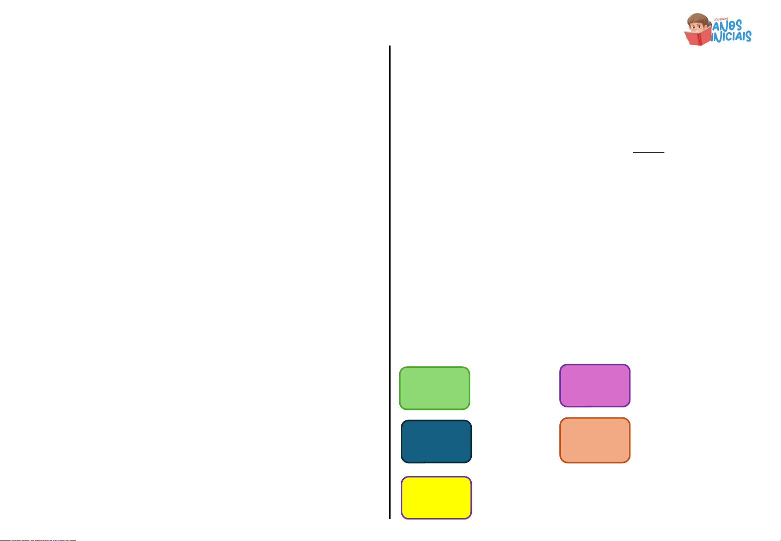Materiais Necessários: Tabuleiro de jogo Peões para os jogadores Cartas de Palavras Cartas de Desafio Dado Objetivo do Jogo: Os jogadores devem avançar pelo tabuleiro identificando corretamente a classe gramatical das palavras ou formando frases com palavras de diferentes classes gramaticais. O primeiro jogador a chegar ao final do tabuleiro é o vencedor. Regras do Jogo: Os jogadores começam na casa inicial do tabuleiro. Cada jogador lança o dado e avança o número de casas indicado. Se um jogador cair em uma casa com a escrita “palavra”, ele terá que tirar na caixa uma palavra, após deve identificar corretamente a classe gramatical da palavra para avançar mais casas. Se acertar, avança mais duas casas; se errar, permanece na mesma casa. (QUANDO AVANÇAR AS DUAS CASAS, NÃO PRECISARÁ REALIZAR NOVAMENTE O DESAFIO) 4. Se um jogador cair em uma casa de desafio, ele terá que tirar na caixa um desafio e responder corretamente para avançar. Se acertar, avança três casas; se errar, permanece na mesma casa. (QUANDO AVANÇAR AS DUAS CASAS, NÃO PRECISARÁ REALIZAR NOVAMENTE O DESAFIO) 5. O primeiro jogador a chegar à casa final do tabuleiro é declarado o vencedor. JOGO DAS CLASSES GRAMATICAIS Exemplo de Cartas: Carta de Palavras: Palavra: "Correr" Classe Gramatical: Verbo Carta de Desafio: Desafio: "Identifique a classe gramatical da palavra sublinhada na frase: 'O gato preto dorme tranquilamente.'" Resposta: Substantivo Observações: As cartas de desafio devem abranger uma variedade de conceitos gramaticais, como substantivos, verbos, adjetivos, advérbios, preposições, etc. O tabuleiro pode ser projetado para incluir espaços adicionais que concedam vantagens ou penalidades aos jogadores, adicionando elementos estratégicos ao jogo. Certifique-se de que as palavras e frases usadas no jogo sejam adequadas ao nível de compreensão gramatical dos jogadores. PALAVRA DESAFIO PAUSA FIQUE UMA RODADA SEM JOGAR PARABÉNS! VOCÊ GANHOU! PEGAR UMA PALAVRA NA CAIXINHA PEGAR UM DESAFIO NA CAIXINHA FICAR UMA RODADA SEM JOGAR FAZER UMA PAUSA, ESPERAR A PRÓXIMA VEZ DE JOGAR. FIM DE JOGO! TABULEIRO DESAFIO PALAVRA DESAFIO PALAVRA DESAFIO PALAVRA DESAFIO PAUSA PALAVRA DESAFIO PALAVRA DESAFIO PALAVRA DESAFIO PALAVRA PALAVRA DESAFIO FIQUE UMA RODADA SEM JOGAR DESAFIO PALAVRA DESAFIO PAUSA DESAFIO PALAVRA DESAFIO PALAVRA DESAFIO PALAVRA INÍCIO DESAFIO Passe a cola e cole a próxima página aqui. DESAFIO PALAVRA PAUSA PALAVRA DESAFIO FIQUE UMA RODADA SEM JOGAR DESAFIO PALAVRA PALAVRA PAUSA PALAVRA DESAFIO PALAVRA DESAFIO PALAVRA FIQUE UMA RODADA SEM JOGAR DESAFIO PALAVRA DESAFIO PALAVRA DESAFIO PALAVRA PAUSA PALAVRA DESAFIO PALAVRA DESAFIO PALAVRA PALAVRA PARABÉNS! VOCÊ GANHOU! CARTA COM PALAVRAS Substantivos: Cachorro Casa Livro Criança Computador Praia Bola Árvore Família Montanha Verbos: Correr Voar Comer Estudar Cantar Saltar Nadar Dormir Sorrir Pular Adjetivos: Forte Grande Feliz Belo Tranquilo Rápido Luminoso Silencioso Colorido Doce Advérbios: Rapidamente Alegremente Tranquilamente Suavemente Silenciosamente Claramente Lentamente Brilhantemente Frequentemente Intensamente Preposições: Em Sobre Através Para Com Por De Sob Entre Até Pronomes: Ele Ela Eles Nós Você Eles Eu Isso Aquilo Meu Interjeições: Ah Eita Uau Ops Ai Oh Nossa Caramba Poxa Numerais: Um Dois Três Dobro Metade Centena Dúzia Primeiro Segundo Terceiro CARTA COM PALAVRAS CACHORRO CASA LIVRO CRIANÇA COMPUTADOR PRAIA BOLA ÁRVORE FAMÍLIA MONTANHA CORRER VOAR COMER ESTUDAR CANTAR SALTAR NADAR DORMIR PULAR SORRIR CARTA COM PALAVRAS FORTE GRANDE FELIZ BELO TRANQUILO RÁPIDO LUMINOSO SILENCIOSO COLORIDO DOCE RAPIDAMENTE ALEGREMENTE TRANQUILAMENTE SUAVEMENTE SILENCIOSAMENTE CLARAMENTE LENTAMENTE BRILHANTEMENTE INTENSAMENTE FREQUENTEMENTE CARTA COM PALAVRAS EM SOBRE ATRAVÉS PARA COM POR DE SOB ENTRE ATÉ ELE ELA ELES NÓS VOCÊ ELES EU ISSO AQUILO MEU CARTA COM PALAVRAS AH! EITA! UAU! OPS! AI! OH! NOSSA! CARAMBA! POXA! EITA! UM DOIS TRÊS DOBRO METADE CENTENA DÚZIA PRIMEIRO SEGUNDO TERCEIRO Desafio: Determine a classe gramatical da palavra sublinhada na frase: Ele está na loja. Resposta: Adjetivo Desafio: Identifique a classe gramatical da palavra sublinhada na frase: O pássaro voou alto. Resposta: Advérbio DESAFIOS Desafio: Identifique a classe gramatical da palavra sublinhada na frase: O carro azul é rápido. Desafio: Indique a classe gramatical da palavra sublinhada na frase: A casa amarela é bonita. Desafio: Qual é a classe gramatical da palavra sublinhada na frase: O carro vermelho está estacionado. Desafio: Qual é a classe gramatical da palavra sublinhada na frase: Ela cantou suavemente. Resposta: Verbo Resposta: Adjetivo Resposta: Pronome Resposta: Substantivo Resposta: rapidamente Resposta: brilhantes e largo Desafio: Identifique os adjetivos na frase: O céu azul é lindo hoje. Desafio: Qual é o verbo na frase: O cachorro late alto. Desafio: Qual é o advérbio na frase: Ele correu rapidamente para pegar o ônibus. Desafio: Encontre os adjetivos na frase: Ela tem olhos brilhantes e sorriso largo. Resposta: Latir Resposta: azul e lindo Desafio: Identifique os verbos na frase: Ela correu rapidamente para pegar o ônibus. Resposta: ela Desafio: Quais são os substantivos na frase: A menina brincou no parque. Resposta: ele Desafio: Identifique o advérbio na frase: Ela dança graciosamente no palco. Desafio: Quais classes gramaticais têm nesta frase. O cachorro é grande e peludo. Desafio: Encontre o pronome na frase: Ela caminhou pelo parque ao pôr do sol. Desafio: Identifique o pronome na frase: Ele está em casa. Resposta: menina e parque Resposta: substantivo e adjetivo Resposta: correr e pegar Resposta: graciosamente Resposta: livro Resposta: voar Desafio: Qual é a preposição na frase: O livro está em cima da mesa. Desafio: Encontre o advérbio na frase: Ele fala muito durante a aula. Desafio: Encontre o substantivo na frase: O livro novo é interessante. Desafio: Encontre o verbo n