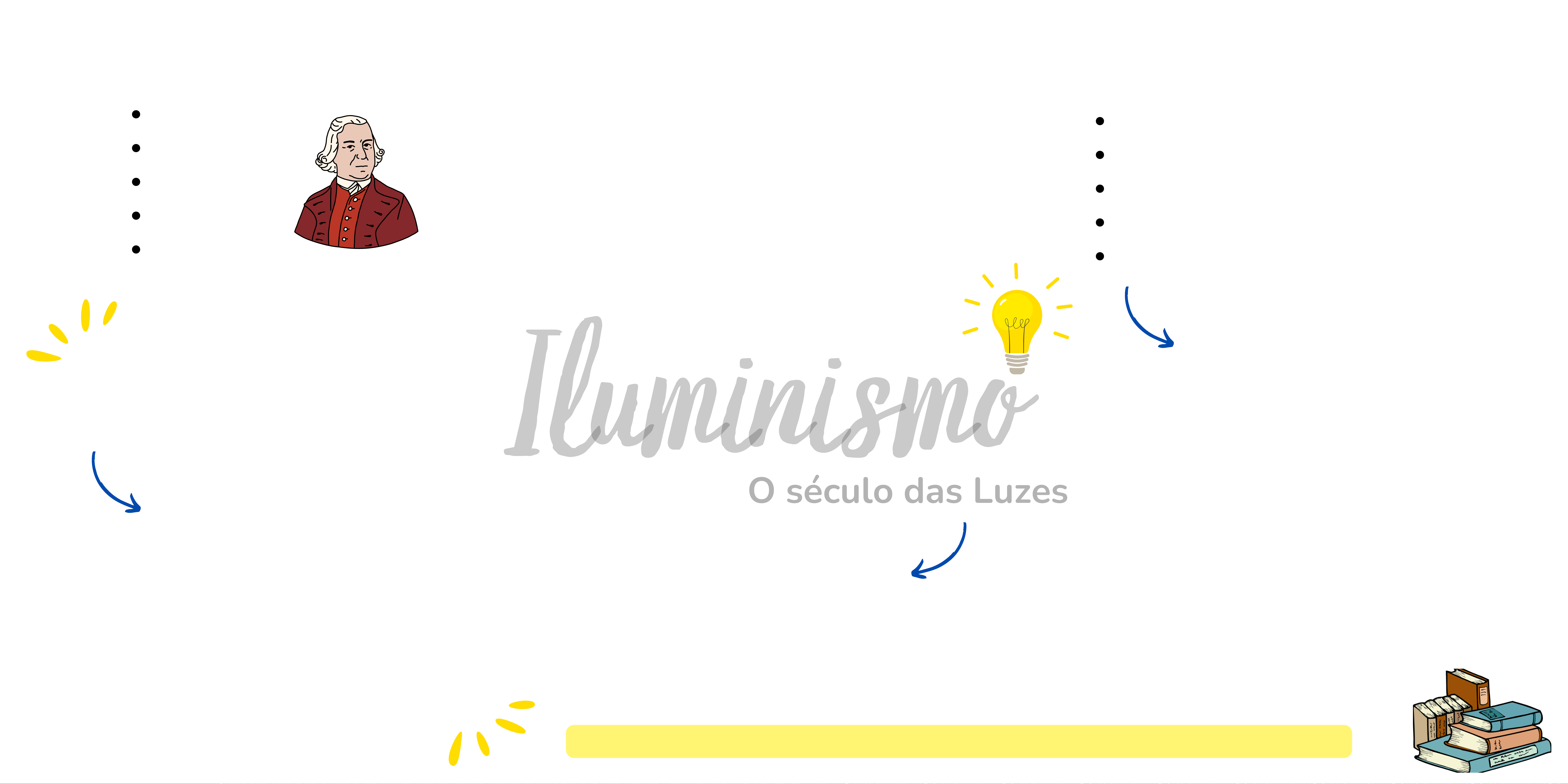 IluminismoIluminismo O Iluminismo ia contra os ensinamentos da Igreja, e buscava gerar mudanças políticas, econômicas e sociais. Por suas ideias contrárias ao modelo político e social vigente na época, os Iluministas foram perseguidos pela Igreja Católica. O século das LuzesO século das Luzes Em contraposição à “Idade das Trevas” (Idade Média) vivida anteriormente Movimento cultural que surgiu na Europa, durante o século XVII. Na época a Igreja Católica era a instituição mais poderosa, e não aceitava outras formas de pensamento. Protagonistas Voltaire Rousseau Montesquieu Locke Adam Smith Acreditavam na disseminação do conhecimento, como forma de enaltecer o uso da razão em detrimento da religião. Somente através da razão a humanidade poderia se desenvolvver O que foi? Principais ideias Valorização do pensamento racional; Defesa da liberdade de expressão; Crítica ao Absolutismo; Defesa do mercantilismo; Alinhamento com a burguesia; Enciclopédia Como parte do processo de disseminação do conhecimento, surgiram as primeiras Enciclopédias, que armazenavam todo o conhecimento produzido e defendido pelos Iluministas. Algumas das maiores ideias e teorias de conhecimento da História são frutos do Iluminismo! Licenciado para - Jéssica P ereira de F reitas - 12207974723 - P rotegido por E duzz.com