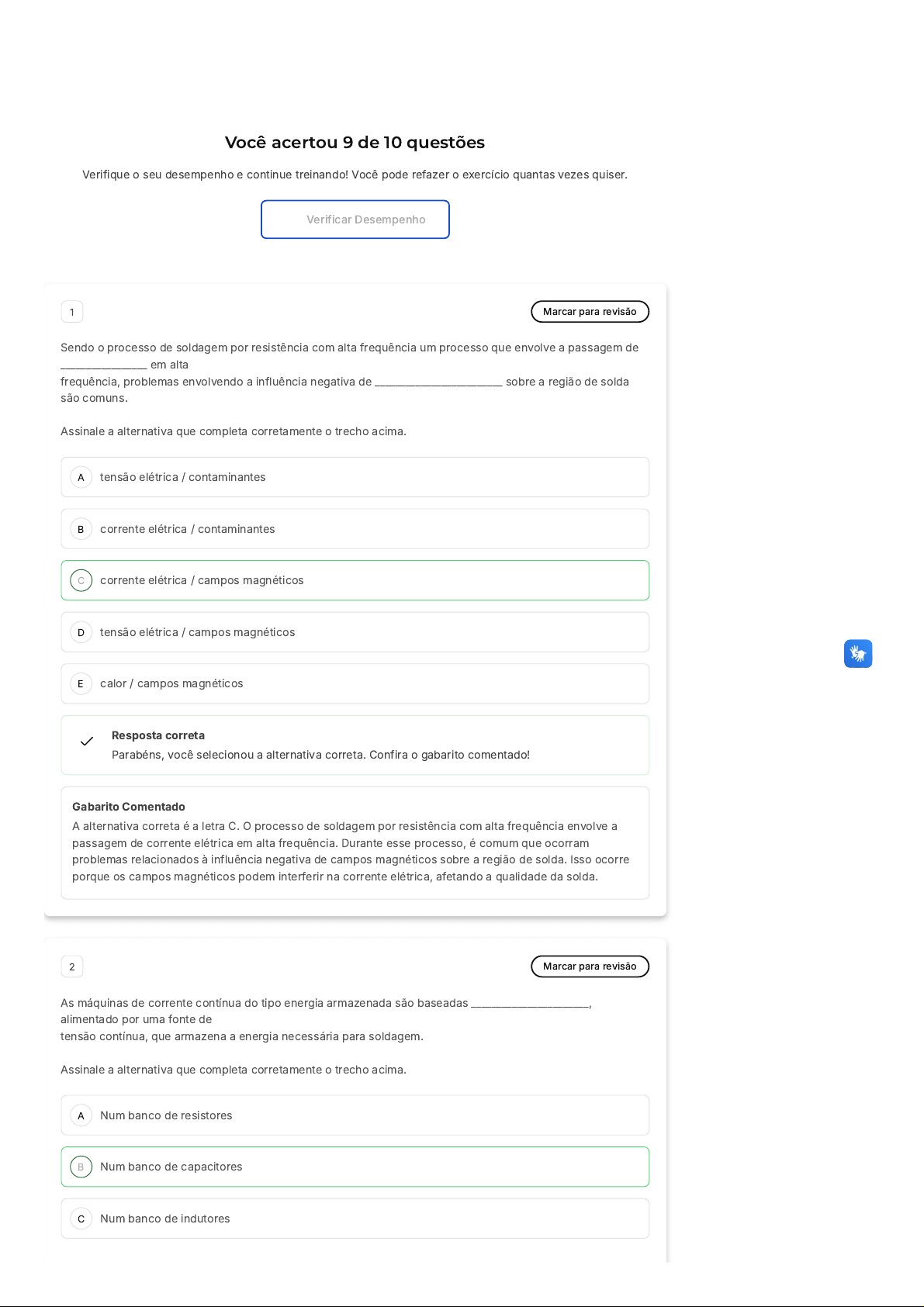 Verifique o seu desempenho e continue treinando! Você pode refazer o exercício quantas vezes quiser.