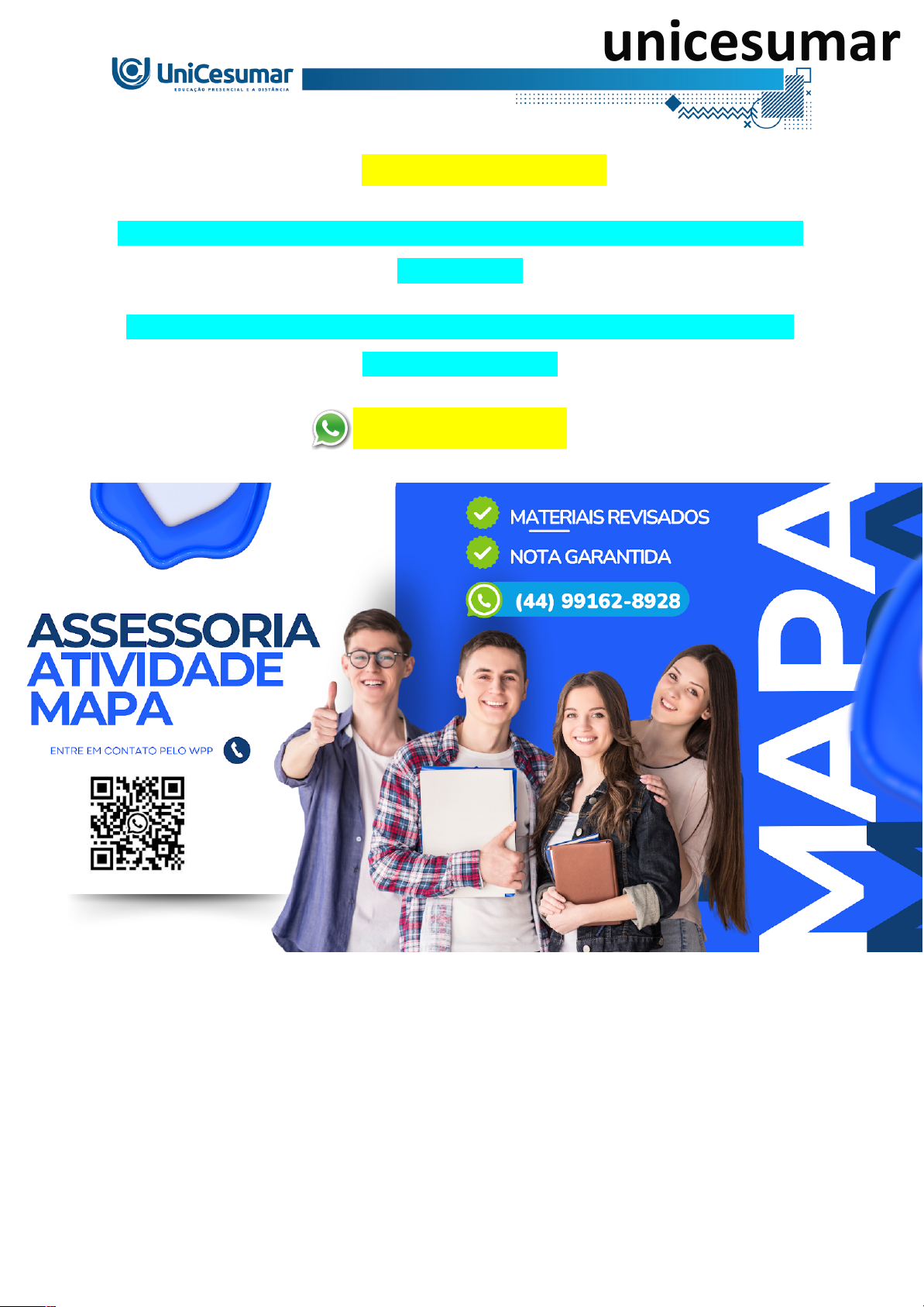 (44) 99162-8928 Está SEM TEMPO ou com DIFICULDADE de realizar o seu trabalho acadêmico? Entre em contato conosco agora mesmo! Iremos te ajudar nessa jornada acadêmica (44) 99162-8928 ATIVIDADE 1 - ADSIS - IMERSÃO PROFISSIONAL: PROJETO DE INTERFACE - 51_2026 Um wireframe é um diagrama visual que esboça a estrutura de uma tela de um site ou de aplicativo. Às vezes conhecido como protótipo de tela ou app, o wireframe demonstra como os elementos se relacionam entre si e como são estruturados. O Wireframing, ou seja, o ato de criar wireframes, é um processo que busca criar uma unicesumar visão geral de uma tela. Designers de User Experience (UX) geralmente o utilizam para mapear o design e o layout de seu trabalho sem entrar em muitos detalhes. É a primeira etapa do processo de design antes de entrar em mais detalhes sobre cores, fontes, imagens etc. Geralmente, os wireframes contêm os seguintes elementos: Estrutura da página. Um wireframe delineia a estrutura de uma página ou aplicativo. Ela ajuda os designers a descobrir onde certos elementos devem ficar e ter uma ideia de como será o design. Arquitetura da informação. Dentro da estrutura, os designers também precisam planejar onde os elementos da página ficarão. Os designers podem organizar onde esses elementos devem ir dentro da estrutura de uma página. Fluxo do usuário (User Flow). Os designers de UX precisam considerar como os usuários navegarão na página. É aqui que a criação de wireframe pode ajudar. A criação de um wireframe te força a considerar o conteúdo da página a partir da perspectiva do usuário. Como resultado, é provável que eles criem uma página ou aplicativo que seja de fácil utilização. Funcionalidade. Os desenvolvedores utilizam um wireframe para visualizar a funcionalidade de um aplicativo antes de passar para as fases de design técnico. Eles podem ver como querem que a página ou app funcione e que recursos precisam para fazer isso acontecer. unicesumar Fonte: https://miro.com/pt/wireframe/o-que-e-wireframe/. Acesso em: 9 fev. 2026. Pautando-se nas informações apresentadas, selecione um aplicativo instalado em seu celular e elabore o wireframe de duas telas, utilizando papel e caneta para representar a estrutura e os elementos principais da interface. O wireframe deve conter, no mínimo: a) Cabeçalho (logo, menu ou navegação principal). b) Área de conteúdo principal. c) Elementos de interação (botões, links, campos de busca, formulários etc.). d) Rodapé ou área de informações complementares. e) Indicação textual dos elementos (exemplo: “Menu”, “Banner”, “Botão”, “Lista de Produtos”). Importante: não utilizar cores, imagens detalhadas ou estilização visual. Use apenas formas simples (retângulos, linhas e textos curtos). O estudante deverá anexar um arquivo contendo: 1) O Nome do Aplicativo. 2) Um print com as telas escolhidas. 3) Uma foto legível do wireframe criado. IMPORTANTE: unicesumar 1. Acesse o link do vídeo que o professor da disciplina gravou com orientações para ajudá-lo nesse processo de criação e desenvolvimento. O acesso deverá ser realizado em: MATERIAL DA DISCIPLINA. 2. Responda à atividade seguindo como roteiro os tópicos elencados anteriormente. 3. A entrega deve ser feita exclusivamente por meio do formulário de entrega da atividade disponível no material da disciplina. Envie em formato doc, docx ou pdf. 4. Antes de enviar sua atividade, certifique-se de que respondeu a todas as perguntas e realize uma cuidadosa correção ortográfica. 5. Após o envio, não são permitas alterações ou modificações. Logo, você tem apenas uma chance de enviar o arquivo corretamente. Revise bem antes de enviar! 6. Lembre-se que evidências de cópias de materiais, incluindo de outros acadêmicos, sem devidas referências serão inquestionavelmente zeradas. As citações e referências, mesmo que do livro da disciplina, devem ser realizadas conforme normas da Instituição de Ensino. 7. Não são permitidas correções parciais no decorrer do módulo, ou seja, o famoso: “professor, veja se minha atividade está correta?”. Isso invalida seu processo avaliativo. Lembre-se que a interpretação da atividade também faz parte da avaliação. 8. Procure sanar suas dúvidas junto à mediação em tempo hábil sobre o conteúdo exigido na atividade, de modo que consiga realizar sua participação. 9. Atenção ao prazo de entrega, evite envio de atividade em cima do prazo. Você pode ter algum problema com internet, computador, software etc. e os prazos não serão flexibilizados, mesmo em caso de comprovação. Bons estudos! Em caso de dúvidas, encaminhar mensagem ao seu Professor Media unicesumar