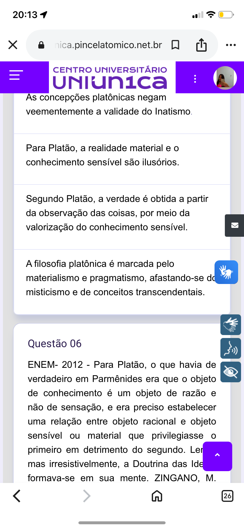 20:13 X nica.pincelatomico.net.br CENTRO UNIVERSITÁRIO ... As concepções platônicas negam veementemente a validade do Inatismo. Para Platão, a realidade material e o conhecimento sensível são ilusórios. Segundo Platão, a verdade é obtida a partir da observação das coisas, por meio da valorização do conhecimento sensível. A filosofia platônica é marcada pelo materialismo e pragmatismo, afastando-se do misticismo e de conceitos transcendentais. Questão 06 ENEM- 2012 Para Platão, o que havia de verdadeiro em Parmênides era que o objeto de conhecimento é um objeto de razão e não de sensação, e era preciso estabelecer uma relação entre objeto racional e objeto sensível ou material que privilegiasse o primeiro em detrimento do segundo. Ler mas irresistivelmente, a Doutrina das Ide formava-se em sua mente. ZINGANO, M. 26