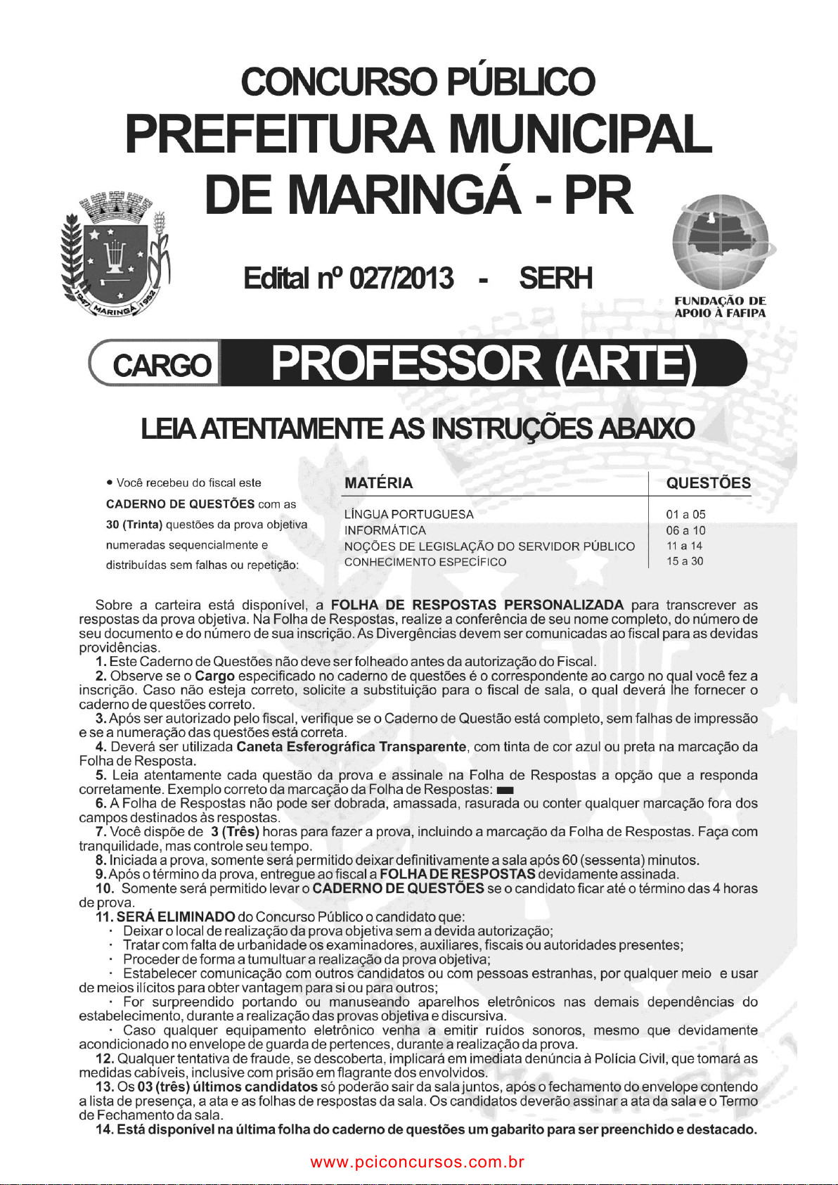 pcimarkpci MjgwNDo1YmM4OjA2MTA6NTIwMDo4NDFjOjE5NmI6NWYxODozODZm:RnJpLCAxOSBEZWMgMjAyNSAyMTozNzo1OCAtMDMwMA== www.pciconcursos.com.br www.pciconcursos.com.br pcimarkpci MjgwNDo1YmM4OjA2MTA6NTIwMDo4NDFjOjE5NmI6NWYxODozODZm:RnJpLCAxOSBEZWMgMjAyNSAyMTozNzo1OCAtMDMwMA== www.pciconcursos.com.br www.pciconcursos.com.br pcimarkpci MjgwNDo1YmM4OjA2MTA6NTIwMDo4NDFjOjE5NmI6NWYxODozODZm:RnJpLCAxOSBEZWMgMjAyNSAyMTozNzo1OCAtMDMwMA== www.pciconcursos.com.br Cargo: PROFESSOR ARTE Página - 3 - LÍNGUA PORTUGUESA Internet e educação Por Wilson Roberto Giustino É inegável a revolução que a internet proporciona para a educação, em especial para os mais jovens. Pesquisas e mais pesquisas a este respeito demonstram que o mundo virtual cada vez mais se sobrepõe às técnicas de ensino mais tradicionais. Se hoje parece improvável desvincular uma e outra coisa, é válida a tarefa de questionar os aspectos positivos e negativos da internet para a formação intelectual e profissional de nossos jovens. Comecemos pelo lado bom, aquele relacionado à facilidade que a internet proporciona quando se trata de fazer pesquisas, buscar informações e alcançar fontes de consulta que eram inacessíveis há pouco mais de 10 anos. O jovem de hoje tem um mundo inteiro ao alcance, e isso amplia o seu repertório e mesmo a capacidade de entender o mundo em que vive. Esta quebra de barreiras é tida por educadores como uma grande vitória, à medida que permite avançar além do que é aprendido nos bancos escolares. Mais do que um complemento à grade curricular, a rede mundial de computadores oferece um campo aberto para novos conhecimentos e experiências. A própria dinâmica entre alunos e professores é outra, tornando possível compartilhar todo o aprendizado por meios virtuais, seja por e-mail ou por sites que armazenam o conteúdo transmitido em sala de aula. A interatividade, como se vê, pode ser facilitadora do aprendizado. Mas há quem conteste as vantagens apontadas acima, em especial por uma suposta superficialidade comumente associada à internet. Esta corrente de pensamento ganhou um argumento de peso com a divulgação, pelo IBGE (Instituto Brasileiro de Geografia e Estatística), do Suplemento de Cultura da Pesquisa de Informações Básicas Municipais (Munic), que traça um perfil cultural das cidades brasileiras.Dos índices todos, salta aos olhos a seguinte informação: enquanto o número de municípios com acesso à internet cresceu 178% nos últimos sete anos, houve uma expressiva queda, de 15,5%, no número de cidades com livrarias. O que se pode depreender de tudo isso é que o maior acesso à internet não se traduz necessariamente em maior acesso à cultura. Muito disso se deve às múltiplas possibilidades oferecidas pela web, incluindo comunidades virtuais, meios de comunicação instantânea e sites que trazem conteúdo pouco instigante para a formação intelectual. Ou seja, ficar mais tempo diante do computador nem sempre é produtivo para a educação tida como formal. Da pesquisa do IBGE, é possível absorver ainda outro dado preocupante, o de que apenas 4,2% das cidades brasileiras têm uma secretaria municipal exclusiva para a área de cultura. De certa forma, isso se reflete diretamente na pouca capacitação profissional de nossos jovens, contribuindo para um cenário em que coexistem altos índices de desemprego e falta de mão de obra qualificada em setores específicos. Entre prós e contras, o que se espera é que a internet seja cada vez mais um instrumento a serviço da educação e da qualificação para o mercado de trabalho. Mais do que apenas facilitar o acesso, é preciso criar condições para que o jovem saiba como tirar o melhor proveito deste novo mundo que é cada vez mais hegemônico na educação do brasileiro. Disponível em: http://www.portaleducacao.com.br/pedagogia/artigos/3 489/internet-e-educacao. Questão 01 São informações do texto, EXCETO: (A) Com a internet é possível realizar pesquisas, buscar informações e alcançar fontes de consulta. (B) A interatividade, propiciada pela internet, pode facilitar o aprendizado. (C) A internet pode oferecer um campo aberto para novos conhecimentos e experiências. (D) A internet substituiu o ensino tradicional. Questão 02 Assinale a alternativa CORRETA: (A) O pronome “isso”, localizado no 4º parágrafo do texto, recupera as informações do 2º parágrafo, a respeito dos pontos positivos do uso da internet na educação. (B) No 4º parágrafo, a vírgula após “ou seja” é obrigatória, já que se trata de uma expressão explicativa. (C) Ainda no 4º parágrafo: o emprego do acento grave antes das palavras “internet” e “cultura” revelam um exemplo de conjugação verbal. (D) Em “conteúdo pouco instigante” (4º parágrafo), a palavra em destaque funciona como adjetivo. Questão 03 A palavra “hegemônico” (último parágrafo) pode ser substituída, sem alterar o sentido e a sintaxe da frase, por: (A) Predomínio. (B) Domínio. (C) Preponderante. (D) Supremacia. Questão 04 Releia a frase: “Da pesquisa do IBGE, é possível absorver ainda outro dado preocupante, o de que apenas 4,2% das cidades brasileiras têm uma secretaria municipal exclusiva para a área de cultura” (5º parágrafo). O verbo “ter” recebe acento gráfico: (A) Porque está concordando com o sujeito da oração, que também está no plural. (B) Porque se trata de um sujeito indeterminado “4,2%”. (C) Porque está na 1ª pessoa do plural. (D) Porque está na 3ª pessoa do singular. www.pciconcursos.com.br pcimarkpci MjgwNDo1YmM4OjA2MTA6NTIwMDo4NDFjOjE5NmI6NWYxODozODZm:RnJpLCAxOSBEZWMgMjAyNSAyMTozNzo1OCAtMDMwMA== www.pciconcursos.com.br Cargo: PROFESSOR ARTE Página - 4 - Questão 05 O “outro dado preocupante”, observado no início do 5º parágrafo, refere-se ao fato de que: (A) Nos últimos sete anos, houve uma expressiva queda no número de cidades com livrarias; por essa razão, um maior acesso à 
