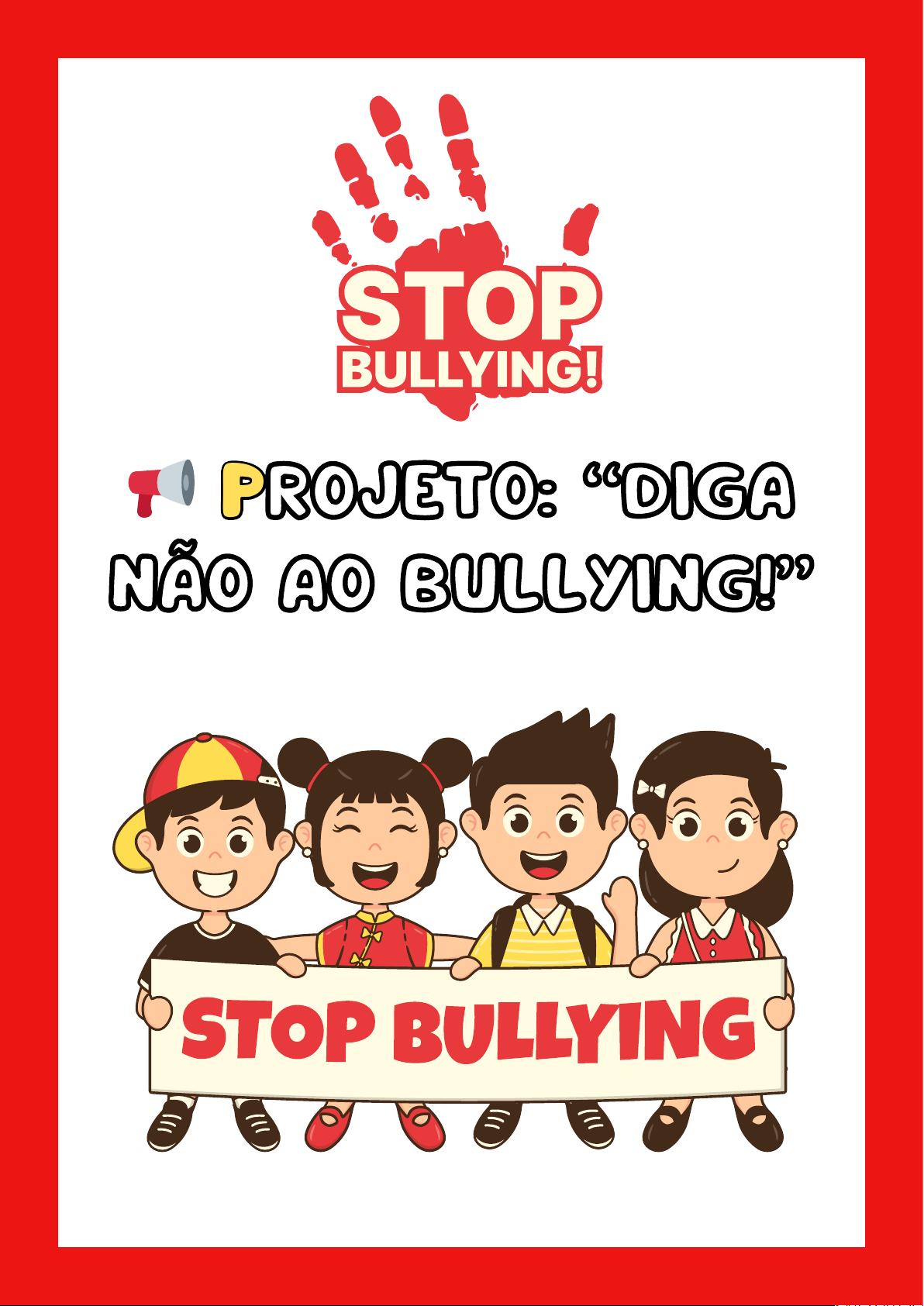 📢 PROJETO: “DIGA NÃO AO BULLYING!” 📢 PROJETO: “DIGA NÃO AO BULLYING!” 📆 Duração: 1 a 2 semanas 🎯 Público-alvo: Educação Infantil e Ensino Fundamental (1º ao 5º ano) 🎯 Objetivo geral: Sensibilizar as crianças sobre o respeito ao próximo, ensinando a importância da empatia e da convivência harmoniosa para prevenir o bullying na escola. 🔹 Justificativa O bullying é um problema sério que pode afetar a autoestima e o desempenho das crianças. Este projeto busca conscientizar os alunos sobre o impacto das palavras e ações, incentivando o respeito e a amizade através de atividades lúdicas e interativas. 🔹 Objetivos específicos ✅ Ensinar as crianças a identificar e diferenciar brincadeiras saudáveis de atitudes prejudiciais. ✅ Incentivar a empatia e o respeito ao próximo. ✅ Desenvolver a comunicação positiva e o trabalho em equipe. ✅ Criar um ambiente escolar mais acolhedor e seguro. 📌 DIA 1 – O QUE É BULLYING? 📌 Atividade 1: Contação de História – “O Monstro do Bullying” 📖 Como fazer: Ler a história (disponível acima) e discutir os sentimentos dos personagens. 📝 Perguntas para reflexão: Como você acha que Sofia se sentiu? O que Miguel fez para ajudar? Você já viu alguém triste por causa de palavras ruins? Como podemos combater o Monstro do Bullying? O que podemos fazer para sermos mais gentis? 📌 Atividade 2: Mural “Palavras que Ajudam” 🎨 Como fazer: Cada criança escreve ou desenha uma palavra positiva para colar no mural da sala. 📌 Atividade 3: Jogo das Emoções 🎭 Material: Cartas com rostinhos felizes, tristes, bravos e surpresos. 🎲 Como jogar: A criança sorteia uma emoção e diz como se sentiria se fosse vítima de bullying. 📌 Atividade 4: Debate “Isso é bullying?” 📝 Como fazer: O professor apresenta diferentes situações e as crianças dizem se é bullying ou uma brincadeira saudável. 📌 Atividade 5: Música da Amizade 🎶 Sugestão: Escolher uma música sobre respeito para cantar e dançar juntos. 📌 DIA 2 – A FORÇA DAS PALAVRAS 📌 Atividade 1: Experiência da Maçã 🍎 Material: Duas maçãs. 📝 Como fazer: Derrubar uma maçã no chão algumas vezes e deixá- la de lado. Depois, cortar ambas e comparar: por fora, iguais, mas por dentro, a maçã maltratada estará machucada. Explicar que as palavras também machucam por dentro. 📌 Atividade 2: Teatro “As Palavras têm Poder” 🎭 Como fazer: As crianças dramatizam situações de bullying e como resolvê-las com respeito. 📌 Atividade 3: Pulseira da Amizade 📿 Material: Fitas coloridas e miçangas. 🖐 Como fazer: Cada aluno faz uma pulseira para um colega como símbolo de amizade. 📌 Atividade 4: Varal da Gentileza 📌 Como fazer: Cada criança escreve um elogio para um colega e pendura no varal. 📌 Atividade 5: Construindo um Super-Herói do Respeito 🖍 Como fazer:Pintar um super-herói que combate o bullying e escrever suas características. 📌 DIA 3 – RESPEITANDO AS DIFERENÇAS 📌 Atividade 1: Livro Coletivo “Escola Sem Bullying” 📖 Como fazer: Cada aluno escreve ou desenha em uma folha ideias para acabar com o bullying e guarda no livro.( sempre que alguém praticar o bullying mostre o livro lembrando as idéias de cada um.) 📌 Atividade 2: Painel “Somos Todos Diferentes” 🎨 Material: Cartolina, tinta e recortes. 📌 Como fazer: Cada criança faz um autorretrato para compor um mural, mostrando a diversidade. 📌 Atividade 3: Jogo da Inclusão 🎲 Como jogar: As crianças realizam desafios simulando dificuldades (exemplo: amarrar o sapato com uma mão só), para refletir sobre empatia. 📌 Atividade 4: Contação de História “O Menino que Tinha Medo de Errar” 📖 Como fazer: Ler e discutir sobre aceitar as diferenças. 📌 Atividade 5: Medalhas do Respeito 🏅 Como fazer: Criar medalhas para os colegas que demonstrarem gentileza e empatia. 📌 DIA 4 – DENUNCIE O BULLYING! 📌 Atividade 1: Jogo de Mímica “O Que Fazer?” 🎭 Como jogar: Um aluno faz mímicas sobre situações de bullying e os outros dizem como reagir corretamente. 📌 Atividade 2: Caixa do Desabafo 📌 Como fazer: Deixar uma caixa onde os alunos podem escrever anonimamente situações que já viveram e discutir como resolvê-las. 📌 Atividade 3: Histórias em Quadrinhos 📖 Como fazer: Cada criança desenha um quadrinho com um final feliz para uma situação de bullying. 📌 Atividade 4: Construindo o “Escudo do Respeito” 🛡 Como fazer: De o escudo com palavras positivas para as crianças pintarem. 📌 Atividade 5: Palestra com Convidado Especial 🎤 Sugestão: Convidar um psicólogo ou professor para falar sobre bullying. 📌 DIA 5 – CELEBRAÇÃO DA AMIZADE 📌 Atividade 1: Gincana da União 🎲 Como jogar: Brincadeiras que exigem trabalho em equipe (corrida do saco, cabo de guerra, caça ao tesouro). 📌 Atividade 2: “Meu Compromisso Contra o Bullying” 📌 Como fazer: Cada aluno pinta sua mão e carimba no painel e logo em seguida escreve uma promessa de respeito e cola no mural. 📌 Atividade 3: Dança da Amizade 💃 Como fazer: Montar uma coreografia coletiva com uma música motivacional. 📌 Atividade 4: Produção de Cartazes Contra o Bullying 📌 Como fazer: Criar cartazes para espalhar pela escola. 📌 Atividade 5: Premiação da Amizade 🏆 Como fazer: Certificados simbólicos para alunos que se destacaram no respeito e gentileza. 🔹 RECURSOS DIDÁTICOS 📌 Painel “Diga Não ao Bullying” 📌 Fantoches 📌 Jogo de cartas “Isso é bullying?” 📌 Livro coletivo 📌 Caixa do Desabafo 🔹 AVALIAÇÃO 📌 Observação da participação das crianças 📌 Reflexões feitas em grupo 📌 Cartazes e produções escritas 📌 Conclusão Esse projeto ajuda a construir uma escola mais acolhedora e segura, promovendo respeito e empatia. Vamos juntos dizer NÃO ao bullying e SIM ao respeito! 💙✋😊