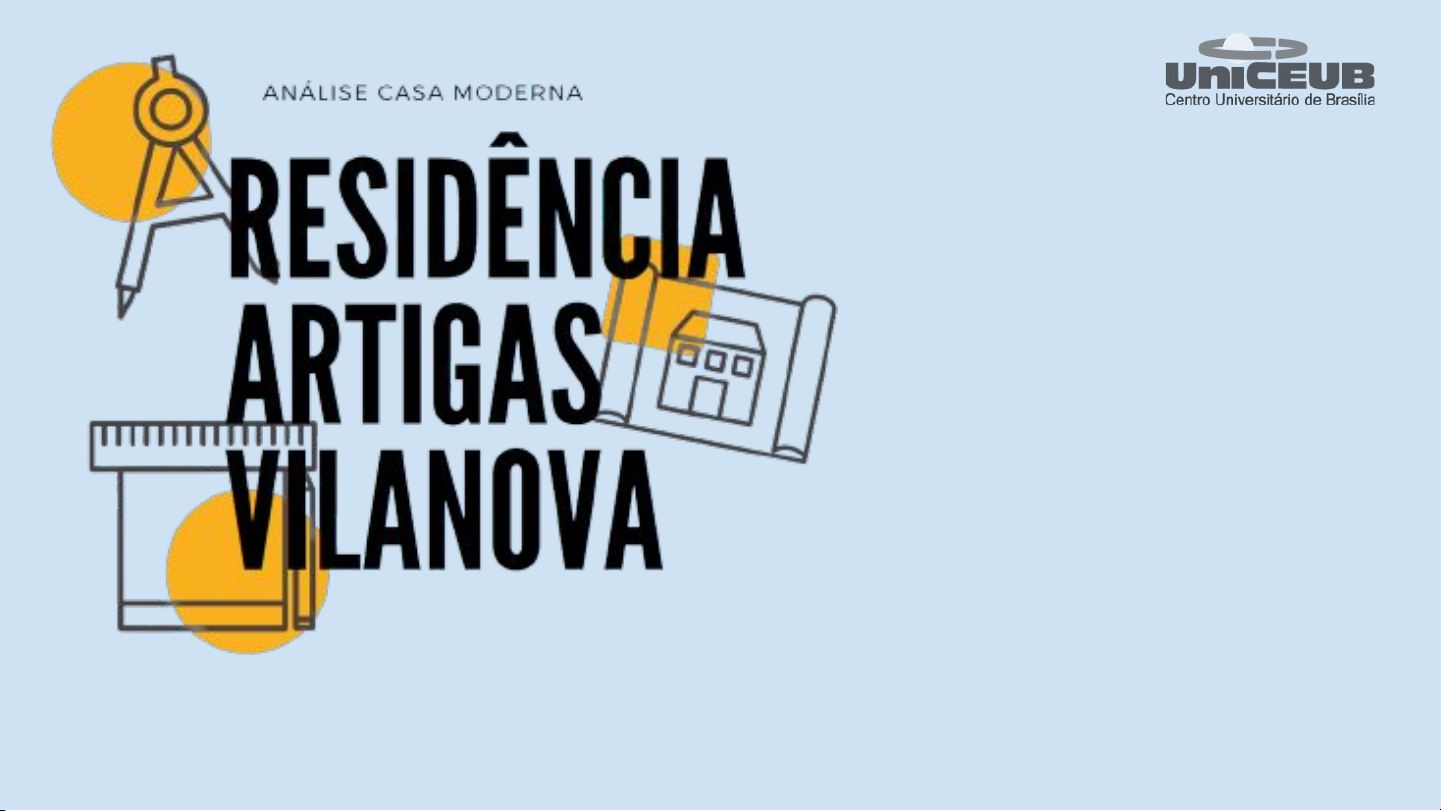 EVELYN RODRIGUES DE LIMA NETO RA:22008453 NATHALIA DE SOUZA CHAVES RA:22003880 PROFESSOR: MÁRIO EDUARDO PEREIRA DE ARAÚJO MATÉRIA: ESTÉTICA As obras da casa durou entre os anos de 1948 e 1950, a casa tem uma base muito forte, tendo em vista que foi Artigas Vilanova quem a projetou. Usando de elementos como concreto, ferro, vidro e tijolos aparente, a casa tem uma enorme influência e é nítido ver as influências dentro dela. Localizada na Rua Barão de Jaceguai. N° 1158 - Campo Belo - São Paulo, a casa se tornou um ponto turístico com café entregado, para alunos de arquitetura e amantes da área. Introdução Sobre a Obra ● Uso da Escola Paulista. ● Fez uso dos cinco pontos da Arquitetura Moderna de Le Corbusier juntamente com o conceito orgânico de Frank Lloyd Wright. ● Muito do que Artigas acreditava, foi usado na casa. ● Teve atrasos na obra, por conta das reuniões que eram feitas nos escombros. ● Tem uma planta assimétrica dentro de um grande retângulo. ● O uso de cores além de valorizar a obra mostra reflete a personalidade do arquiteto. Mesmo com o uso das “regras” da Arquitetura Moderna, Artigas aplicou elas de uma forma que não fugisse da sua zona de conforto. Sobre a Obra Reflexão Crítica Características: - Política (entrada para funcionários, quartos para empregadas domésticas); - O paralelo em arquitetura (cinco pontos da nova arquitetura); - Características do proprietário (apesar de volumoso, simples); - Rompimento do período colonial; Característica de suas obras: - Formas geométricas dos triângulos e retângulos; - Uso dos grandes vãos abertos e do concreto armado e aparente - Valorização da integração entre os ambientes e há uma continuação do ambiente externo; - Plano de necessidades. Reflexão Crítica