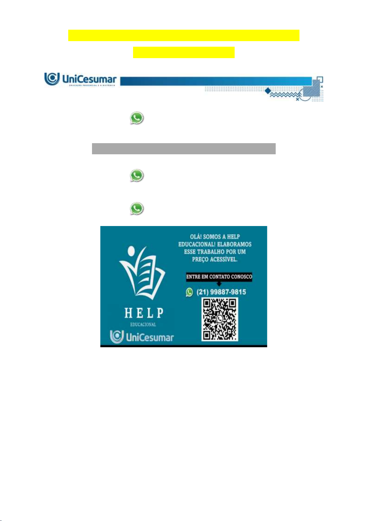 MAPA - BEDU - PSICOLOGIA DO ESPORTE E DO EXERCÍCIO - 51_2026 (21) 99887-9815 ASSESSORIA NOS SEUS TRABALHOS (21) 99887-9815 (21) 99887-9815 A Organização Mundial da Saúde define saúde não apenas como ausência de doença, mas como um estado de completo bem-estar físico, mental e social. Nesse contexto, a prática regular de atividade física e esportiva surge como um pilar fundamental para a Promoção da Saúde. Estudos demonstram que, além dos benefícios físicos, o exercício influencia positivamente diversas variáveis psicológicas, como a melhora do autoconceito e da autoestima, a redução de sintomas de ansiedade e depressão, e o fomento do bem-estar psicológico geral, inclusive o desenvolvimento da resiliência. Esses benefícios, contudo, não são automáticos e dependem da regularidade, da adequação da prática às diferentes fases da vida (infância, vida adulta, terceira idade) MAPA - BEDU - PSICOLOGIA DO ESPORTE E DO EXERCÍCIO - 51_2026 e, idealmente, da orientação profissional. OLIVEIRA, L. P. Psicologia do Esporte e do Exercício. Florianópolis, SC: Arqué, 2024. Elabore uma análise crítica sobre como a prática regular de atividade física e esportiva atua como ferramenta de Promoção da Saúde, com foco especial nos seus impactos sobre o bem-estar psicológico. Discuta os mecanismos pelos quais esses benefícios ocorrem (ex: melhora da autoimagem, efeitos fisiológicos no humor, interação social) e como eles se manifestam em diferentes populações (crianças, adultos, idosos). Você deverá gravar um vídeo (curto – máx. 5 min), e poderá utilizar mais recursos conforme sua preferência (apresentação interativa tipo Prezi, apresentação, PowerPoint comentada, infográfico detalhado em Canva, etc.) para realizar a atividade. Sua análise deve: Relacionar o conceito de Promoção da Saúde com os benefícios biopsicossociais da atividade física regular. Discutir os principais benefícios psicológicos (ex: autoconceito, autoestima, redução de ansiedade/depressão, bem-estar, resiliência) associados à prática. Analisar a importância da regularidade, intensidade e tipo de exercício na obtenção desses benefícios psicológicos. Considerar como as necessidades e os benefícios podem variar entre diferentes faixas etárias (infância/adolescência, adultos, idosos). Incluir referências teóricas (pelo menos o livro-base da disciplina) para sustentar seus argumentos. Lembre-se de começar seu vídeo falando seu nome e RA. Anexe o link do vídeo da sua atividade ao final da submissão. Orientações: - Grave seu vídeo da atividade MAPA de forma que permita a análise solicitada (não ultrapasse 5 min). - O vídeo deverá estar cadastrado no YOUTUBE como “NÃO LISTADO”. - Certifique-se que sua produção contempla todos os conteúdos elencados no enunciado. - Para auxiliar no desenvolvimento da sua análise, faça uso de seu livro didático (especialmente Unidade V) e do material de apoio disponibilizado no Material da Disciplina. MAPA - BEDU - PSICOLOGIA DO ESPORTE E DO EXERCÍCIO - 51_2026 - O link do vídeo deverá ser postado no campo “Resposta” da atividade MAPA, em seu respectivo STUDEO. Envie apenas um vídeo. - Preste atenção ao postar o link do vídeo. Portanto, confira antes de incluí-lo e lembre-se de finalizar a atividade. ATENÇÃO: vídeos das atividades de anos anteriores serão considerados plágios e, automaticamente, zerados. Plágio é crime! Outros tipos de atividades diferentes do que foi pedido no enunciado também serão zerados. Bom trabalho! 122345678 OLÁ! SOMOS A HELP EDUCACIONAL! ELABORAMOS ESSE TRABALHO POR UM PREÇO ACESSÍVEL. ENTRE EM CONTATO CONOSCO (21) 99887-9815