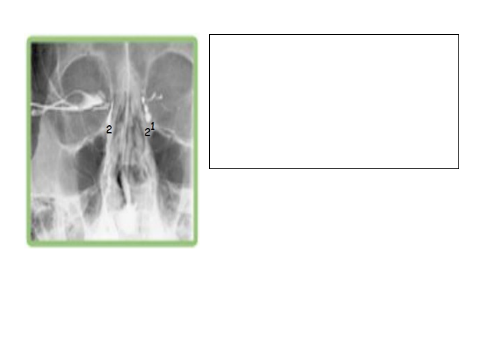IMAGEM 1 NOME DO EXAME: Dacriocistografia MEIO DE CONTRASTE: Iodado + soro fisiológico, via ducto lacrimal POSICIONAMENTO: AP localizada das órbitas AP devido os ductos lacrimais serem visualizados magnificados PATOLOGIA: Estenose no ducto lacrimal esquerdo, devido a obstrução do ducto lacrimal/falha do preenchimento de contraste ANATOMIA RADIOLÓGICA: - Ductos lacrimais INÍCIO E TÉRMINO DO EXAME: Ductos lacrimais IMAGEM 2 NOME DO EXAME: Dacriocistografia MEIO DE CONTRASTE: Iodado + soro fisiológico, via ducto lacrimal POSICIONAMENTO: AP localizada da órbita direita AP devido o ducto lacrimal ser visualizado magnificado PATOLOGIA: Litíase no ducto lacrimal esquerdo, devido a calcificação ANATOMIA RADIOLÓGICA: - Ducto lacrimal direito INÍCIO E TÉRMINO DO EXAME: Ducto lacrimal direito. IMAGEM 3 NOME DO EXAME: Dacriocistografia MEIO DE CONTRASTE: Iodado + soro fisiológico, via ducto lacrimal POSICIONAMENTO: AP localizada das órbitas AP devido os ductos lacrimais serem visualizados magnificados PATOLOGIA: Estenose nos ductos lacrimais, devido o estreitamento do lado esquerdo e devido a falha de preenchimento de contraste do lado direito. ANATOMIA RADIOLÓGICA: - Ductos lacrimais INÍCIO E TÉRMINO DO EXAME: Ductos lacrimais IMAGEM 4 NOME DO EXAME: Histerossalpingografia MEIO DE CONTRASTE: Iodado + soro fisiológico, via uterina POSICIONAMENTO: AP oblíqua direita localizada da pelve, devido o forame obturado direito ser visualizado fechado/sobreposto PATOLOGIA: Estenose na tuba uterina direita, devido a falha do preenchimento de contraste ANATOMIA RADIOLÓGICA: - Colo do útero - Corpo do útero - Fundo do útero - Tuba uterina esquerda - Ovário esquerdo INÍCIO E TÉRMINO DO EXAME: Início: Colo do útero Término: Ovário esquerdo. IMAGEM 5 NOME DO EXAME: Histerossalpingografia MEIO DE CONTRASTE: Iodado + soro fisiológico, via uterina POSICIONAMENTO: AP oblíqua esquerda localizada da pelve, devido o forame obturado esquerdo ser visualizado fechado/sobreposto PATOLOGIA: Estenose nas tubas uterinas, devido a falha do preenchimento de contraste ANATOMIA RADIOLÓGICA: - Colo do útero - Corpo do útero - Fundo do útero - Tuba uterina esquerda INÍCIO E TÉRMINO DO EXAME: Início: Colo do útero Término: Tuba uterina esquerda. IMAGEM 6 NOME DO EXAME: Histerossalpingografia MEIO DE CONTRASTE: Iodado + soro fisiológico, via uterina POSICIONAMENTO: AP localizada da pelve, devido as tubas uterinas serem visualidades inferiormente PATOLOGIA: Ovários policísticos devido a calcificação ANATOMIA RADIOLÓGICA: - Colo do útero - Corpo do útero - Fundo do útero - Tubas uterinas - Ovários INÍCIO E TÉRMINO DO EXAME: Início: Colo do útero Término: Ovários. image1.png image2.png image3.png image4.png image5.png image6.png