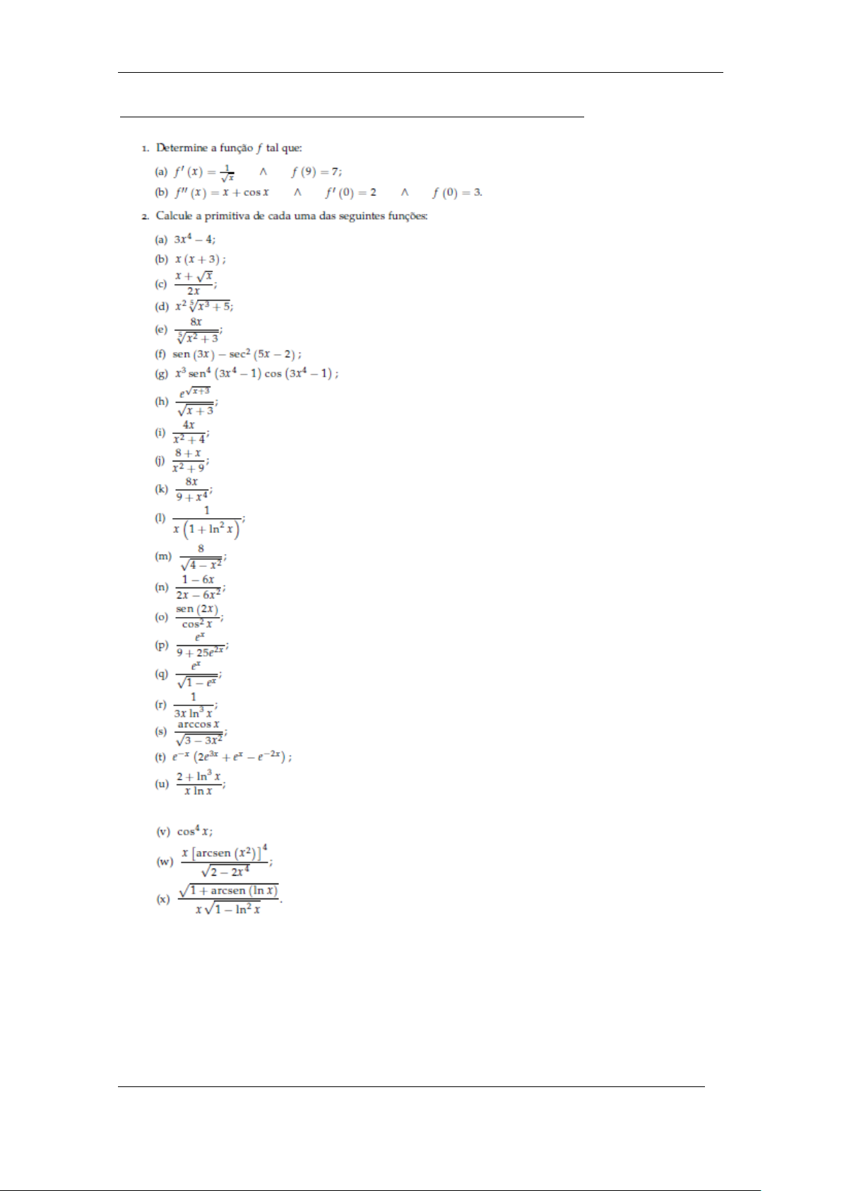 ISCEE – Polo da Praia - Listas de exercícios de Primitivas P á g i n a 1 | 6 Lista 1 – Exercícios Proposto – Imediata/quase – (usar tabela) ISCEE – Polo da Praia - Listas de exercícios de Primitivas P á g i n a 2 | 6 Solução de Exercícios Lista 1 ISCEE – Polo da Praia - Listas de exercícios de Primitivas P á g i n a 3 | 6 Lista 2 – Primitivas por partes Soluções da Lista 2 ISCEE – Polo da Praia - Listas de exercícios de Primitivas P á g i n a 4 | 6 Outros exercícios Primitivas por partes Solução Lista 3 – Primitivas por decomposição ou frações parciais ISCEE – Polo da Praia - Listas de exercícios de Primitivas P á g i n a 5 | 6 Solução da Lista 3 Outros exercícios de Primitivas por decomposição Lista 4 – Primitiva por substituição ISCEE – Polo da Praia - Listas de exercícios de Primitivas P á g i n a 6 | 6 Soluções da Lista 4 Outros exercícios Primitivas por substituição