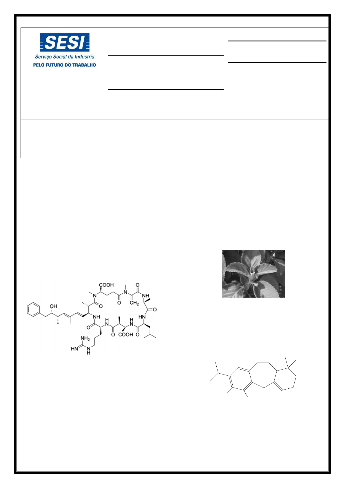 Página 1 de 5 Escola Sesi Campinas LISTA DE EXERCÍCIOS COMPONENTE CURRICULAR: Química Professor(a): Márcio 3° Bimestre Ano: 3 ª Turma: Data,_____/_____/2019 Aluno(a): Lista de Exercícios – Funções Orgânicas 01 - (UNIFOR CE) Uma questão que vem sendo amplamente estudada e discutida no campo do abastecimento de água são as cianobactérias e as cianotoxinas. Cianotoxinas são toxinas produzidas por algumas espécies de cianobactérias em água doce ou salgada e podem ter efeitos hepatotóxicos (microcistina), neurotóxicos (anatoxina-a, e saxitoxina), citotóxicos (cilindrospermopsina) e dermatóxicos (lingbiatoxina). Abaixo apresentase a estrutura molecular de uma microcistina. Assinale a alternativa que identifica os grupos funcionais presentes na molécula de microcistina. a) Cetona, Éter, Amina e Éster. b) Álcool, Éter, Amina e Cetona. c) Tiol, Ácido Carboxílico, Éster e Amida. d) Álcool, Ácido Carboxílico, Amina e Cetona. e) Álcool, Ácido Carboxílico, Amina e Amida. 02 - (UFSCAR SP) O chá de folhas de boldo do Brasil, também chamado de boldo nacional, é usado em todos os estados do Brasil como medicação para tratamento dos males do fígado e de problemas da digestão. A fórmula estrutural representada a seguir é da substância química chamada barbatusol, um dos princípios ativos encontrados nas folhas de boldo nacional. HO OH De acordo com a fórmula estrutural, o barbatusol apresenta grupo funcional característico de Página 2 de 5 a) fenóis. b) éteres. c) álcoois. d) ésteres. e) aldeídos. 03 - (IME RJ) A eritromicina é uma substância antibacteriana do grupo dos macrolídeos muito utilizada no tratamento de diversas infecções. Dada a estrutura da eritromicina abaixo, assinale a alternativa que corresponde às funções orgânicas presentes. a) Álcool, nitrila, amida, ácido carboxílico. b) Álcool, cetona, éter, aldeído, amina. c) Amina, éter, éster, ácido carboxílico, álcool. d) Éter, éster, cetona, amina, álcool. e) Aldeído, éster, cetona, amida, éter. 04 - (EsPCEX) O composto denominado comercialmente por Aspartame é comumente utilizado como adoçante artificial, na sua versão enantiomérica denominada S,S-aspartamo. A nomenclatura oficial do Aspartame especificada pela União Internacional de Química Pura e Aplicada (IUPAC) é ácido 3-amino-4- [(1-benzil-2-metóxi-2-oxoetil)amino]-4-oxobutanóico e sua estrutura química de função mista pode ser vista abaixo. O CH3 O N H O NH2OH O Estrutura do aspartame A fórmula molecular e as funções orgânicas que podem ser reconhecidas na estrutura do Aspartame são: a) C14H16N2O4; álcool; ácido carboxílico; amida; éter. b) C12H18N3O5; amina; álcool; cetona; éster. c) C14H18N2O5; amina; ácido carboxílico; amida; éster. d) C13H18N2O4; amida; ácido carboxílico; aldeído; éter. e) C14H16N3O5; nitrocomposto; aldeído; amida; cetona. 05 - (ENEM) Uma forma de organização de um sistema biológico é a presença de sinais diversos utilizados pelos indivíduos para se comunicarem. No caso das abelhas da espécie Apis mellifera, os sinais utilizados podem ser feromônios. Para saírem e voltarem de suas colmeias, usam um feromônio que indica a trilha percorrida por elas (Composto A). Quando pressentem o perigo, expelem um feromônio de alarme (Composto B), que serve de sinal para um combate coletivo. O que diferencia cada um desses sinais utilizados pelas abelhas são as estruturas e funções orgânicas dos feromônios. CH2OH Composto A CH3COO(CH2)CH CH3 CH3 Composto B Página 3 de 5 QUADROS, A. L. Os feromônios e o ensino de química. Química Nova na Escola , n. 7, maio 1998 (adaptado). As funções orgânicas que caracterizam os feromônios de trilha e de alarme são, respectivamente, a) álcool e éster. b) aldeído e cetona. c) éter e hidrocarboneto. d) enol e ácido carboxílico. e) ácido carboxílico e amida. 06 - (Unievangélica GO) Leia o texto a seguir. Acreditem: é tudo natural Advogada paulistana de 51 anos torna-se a representante do Brasil em uma associação internacional de “fisiculturistas naturais”, que rejeita o uso de anabolizantes. Uma exceção raríssima no meio. Veja. Ed. 2360. Ano 47. 12 fev. 2014. p. 15. Os esteróides anabolizantes são drogas relacionadas ao hormônio masculino testosterona. São todos derivados do colesterol. A testosterona tem como funções orgânicas a) a cetona e o fenol; sua fórmula molecular é igual a C18 H30 O, a massa molecular é 262 g/mol, apresenta duas ligações do tipo pi e as demais são ligações sigma. b) a cetona e o éter; sua fórmula molecular é igual a C20H28O2, a massa molecular é 300 g/mol, apresenta duas ligações do tipo sigma e as demais são ligações pi. c) o álcool e a cetona; sua fórmula molecular é igual a C19H28O2, a massa molecular é 288 g/mol, duas ligações são do tipo pi e as demais do tipo sigma. d) o álcool e o aldeído; sua fórmula molecular é igual a C19 H28 O2 , a massa molecular é 288 g/mol, todas a ligações presentes são do tipo sigma. 07 - (UNIUBE MG) Antibiótico é o nome genérico dado a uma substância que tem a capacidade de interagir com microrganismos que causam infecções no organismo. Os antibióticos interferem com os microrganismos, matando-os ou inibindo seu metabolismo e/ou sua reprodução, permitindo ao sistema imunológico combatê-los com maior eficácia. As tetraciclinas são um grupo de antibióticos usados no tratamento das infecções bacterianas. A terramicina, posteriormente denominada oxitetraciclina, é um antibiótico pertencente à classe das tetraciclinas, produzido pelo fungo Streptomyces rimosus, muito utilizado contra infecções. A fórmula estrutural desse composto está representada a seguir: OH O OH O NH2 O OH CH3HO N CH3H3C OH Terramicina (antibiótico) As principais funções orgânicas presentes no antibiótico terramicina e a fórmula molecular desse composto são: Página 4 de 5 a) Aldeído, álcool, amina, ami