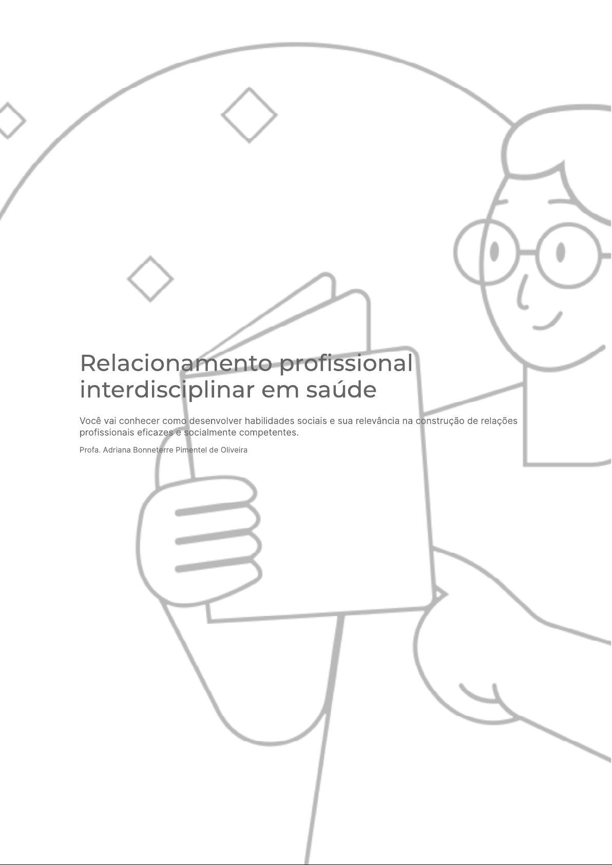 Relacionamento profissional interdisciplinar em saúde Você vai conhecer como desenvolver habilidades sociais e sua relevância na construção de relações profissionais eficazes e socialmente competentes. Profa. Adriana Bonneterre Pimentel de Oliveira1. Itens iniciais Propósito Compreender conceito de habilidades sociais e sua função nas relações interpessoais que possam promover a construção de estratégias, as quais conduzam à excelência nos relacionamentos com gestores, pares e clientes. Objetivos Reconhecer os conceitos gerais referentes às habilidades sociais. Identificar os padrões do trabalho em equipe. Reconhecer as diferenças entre a multi e a interdisciplinaridade na área de saúde. Introdução Abordaremos desenvolvimento das habilidades sociais, um assunto complexo que envolve questões humanas e de relacionamentos. Porém, daremos ênfase às relações profissionais para entendermos como a competência social pode aumentar a produtividade. Apresentaremos também como trabalhar em equipe, destacando de que forma pessoas com diferentes perspectivas podem ser produtivas. Estudaremos os desafios da multi e da transdisciplinaridade, explorando as suas diferenças e a complexidade dessa interface de saberes, principalmente os relacionamentos interprofissionais em saúde.1. Habilidades sociais processo de desenvolvimento humano Acontece a partir de três dimensões: Dimensão física: refere-se ao nosso corpo. Dimensão cognitiva: relaciona-se à nossa capacidade de aprendizagem. Dimensão psicossocial: diz respeito ao nosso comportamento e ao nosso estado emocional e à nossa capacidade de nos relacionarmos. Quando nascemos, cada um de nós vive em um contexto de vida diferente, e isso influencia o nosso desenvolvimento. A infância marca o início do desenvolvimento e é um momento de grande importância no ciclo de vida. Nossas primeiras experiências possuem grande força, que impacta as próximas fases do nosso ciclo de vida, ou seja, a adolescência, a fase adulta e a velhice. Exemplo Imagine uma criança que viveu sua infância em um contexto de guerra. Ela terá uma visão de mundo diferente daquela que nunca esteve em uma situação como essa. Nesse caso, estamos falando de uma influência histórica, de um tempo, e isso nos ajuda a entender as diferentes formas de percepção de cada indivíduo. Analise outra situação: existem crianças que vivem em lares acolhedores, ao passo que outras não tiveram essa oportunidade. Suas percepções com relação à estrutura familiar serão diferentes. Essas informações são importantes, pois nos ajudam a compreender como construímos nossa realidade psíquica e nossas habilidades sociais. Por que pensamos diferente um dos outros? Nossa visão de mundo organiza-se a partir dos estímulos captados por nossos sentidos: visão, olfato, paladar, tato e audição. Eles conectam nosso mundo interior ao exterior e são algo semelhante para todos durante processo sensoperceptivo. Vejamos como é composto processo sensoperceptivo!Estímulo Processo fisiológico comum a todos, por exemplo, o meio ambiente. Sentidos Processo fisiológico comum a todos, envolvendo a visão, o olfato, o tato, o paladar e a audição. Funções cognitivas Processos de significação individual, como a atenção, o pensamento, a percepção, a linguagem, a emoção, a motivação, a memória e a cognição. Significação Processo de significação individual que ocorre na realidade psíquica de cada indivíduo, tornando-nos únicos em nossa própria experiência. Quando as informações apreendidas são processadas pelas funções cognitivas, cada um cria sua realidade interna, tendo uma percepção de si, do outro e do mundo. Expressamos nossos pensamentos e nossas emoções de forma única e selecionamos e memorizamos fatos diferentes da mesma experiência de acordo com aquilo a que damos mais atenção. Até quando falamos de gêmeos idênticos podemos perceber que as formas de aprendizagem diferenciam-se. Esse processamento ocorre em um piscar de olhos. Nosso desenvolvimento biopsicossocial é influenciado pelo nosso temperamento (biológico), isto é, por características inatas, que são potencializadas, ou não, pelo meio em que estamos inseridos. meio é composto por estruturas como a família, a escola, a cultura, as regras e os valores de uma sociedade. Fatores associados ao desenvolvimento Veja, neste vídeo, os fatores que influenciam nossa concepção de mundo e nossa realidade psíquica ao longo de nosso desenvolvimento. Conteúdo interativo Acesse a versão digital para assistir ao vídeo. Atividade conceitual Os pais de Maria tinham um relacionamento afetivo e respeitoso, valorizando a comunicação aberta, apoio mútuo e a resolução pacífica de conflitos. Ela sempre observou esses comportamentos. Em sua comunidade, que celebrava a diversidade, ela interagia com crianças de diferentes etnias, culturas e realidades socioeconômicas. Ela se comunicava de forma eficaz, construtiva e empática. Essa base se manteve durante a adolescência, e Maria continuou a desenvolver suas habilidades sociais. No entanto, nem todas as crianças têm mesmo privilégio.Considere outra criança. João foi criado em um ambiente familiar disfuncional, marcado por conflitos constantes e falta de apoio emocional. Sua comunidade era muito fechada, com pouco contato com a diversidade e outras culturas. Sua visão de mundo e sua capacidade de interagir com pessoas diferentes eram limitadas. Atualmente, João tem grande dificuldade de conviver com pessoas em geral, especialmente com aquelas que têm perspectivas e costumes diversos. Ele tende a ser muito agressivo e reativo, sem conseguir se adaptar às demandas do seu dia a dia. exemplo de Maria destaca como as experiências da infância, influenciadas pelo ambiente cultural, familiar e social, moldam a visão de mundo e as habilidades sociais ao longo da vida. ambiente em que uma criança cresce des