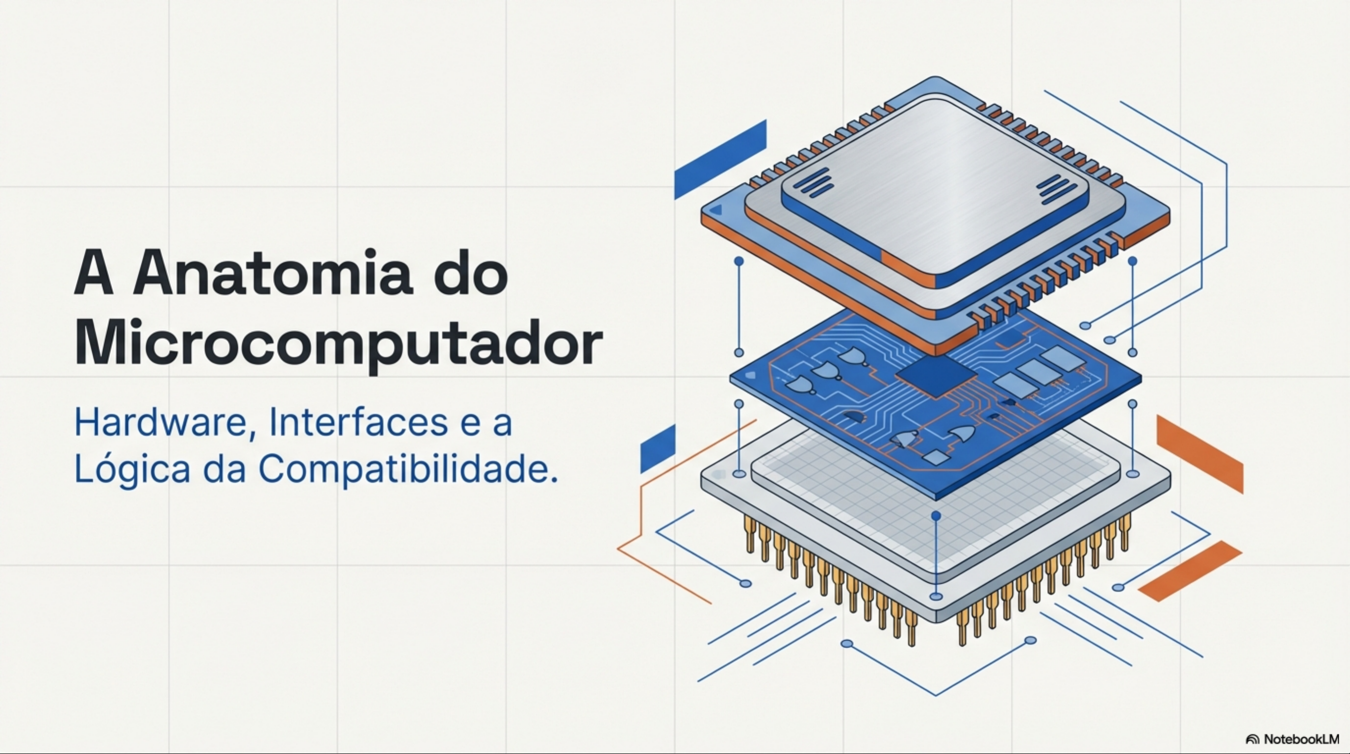 A Anatomia do Microcomputador Hardware, Interfaces e a Lógica da Compatibilidade.A Linguagem da Máquina: Bits e Bytes Toda informação digital é traduzida em pulsos Kilobyte (KB) = 1.024 Bytes elétricos. Para dimensionar componentes, diferenciamos a unidade mínima da unidade estruturada. Megabyte (MB) = 1.024 KB Gigabyte (GB) = 1.024 MB 1 bit (0 ou 1) Terabyte (TB) = 1.024 GB 1 Byte (8 bits) = 1 Caractere NotebookLMFluxo de Dados: Largura de Banda e Frequência desempenho de um sistema não depende apenas do espaço disponível, mas de quão rápido e em que volume os dados podem viajar através das interfaces. Frequência (Hertz - Hz) Largura de Banda (Bandwidth - bps) Ciclos por segundo. Mede Capacidade máxima do canal 0 ritmo de processamento. em um instante. Taxa de Transferência (Bps) 0 tráfego real consolidado (Bytes por segundo). NotebookLMCoração Lógico do Sistema A CPU (Unidade Central de Processamento) não trabalha isolada. Ela coordena cálculos e distribuição de tarefas através de pulsos elétricos rigorosamente cronometrados. Clock medido em GHz (Bilhões de ciclos/segundo) Memória (Trabalho) ULA UC (Unidade (Unidade Lógica e de Controle) Aritmética) Fonte de Alimentação (Energia) Armazenamento (Dados) NotebookLMA Pirâmide da Hierarquia de Memória Sistemas equilibram alto custo de memórias rápidas com a necessidade de grande volume de armazenamento. Quanto mais perto da CPU, mais volátil e veloz. CPU Dentro da CPU. Altíssima Registradores velocidade, custo altíssimo. Velocidade e Custo e Cache Volátil e rápida. Área de Memória RAM trabalho do Sistema Operacional. Capacidade de Armazenamento Não-volátil (permanente). Armazenamento (SSD/HD) Maior capacidade, acesso mais lento. NotebookLMBarramentos: A Infraestrutura de Transporte processador precisa se comunicar com 0 mundo exterior. Os barramentos são canais físicos e lógicos por onde trafegam os dados, endereços e controles. Vias Expressas: Barramento Interno (Alta Largura de Banda) Memória CPU RAM Vias Locais: Barramentos de Expansão Placa de (PCle, SATA, USB) Vídeo A largura (bits) e a frequência Aluramento (Hz) do barramento ditam 0 limite de tráfego do sistema. Rede Armazenamento NotebookLMInterfaces de Mídia: A Transição Digital A evolução dos monitores e dispositivos de som exigiu a substituição de sinais elétricos oscilantes por pacotes de dados binários de alta densidade. Sinal VGA Analógico Apenas Vídeo Legado / Baixa Resolução Áudio P2 Sinal Apenas Áudio Entrada ou Analógico Saída Dedicada Áudio + Vídeo HDMI 100% Digital Alta Definição Integrados (Banda Larga) NotebookLMPadrão Universal: Evolução do USB Universal Serial Bus (USB) eliminou a necessidade de múltiplas portas distintas, padronizando energia e tráfego de dados para periféricos modernos. USB 2.0 USB 3.0+ USB-C 480 Mbps 5 Gbps a 20 Gbps Até 40 Gbps Conexão simétrica e reversível Alta potência elétrica (Power Delivery) Suporte a múltiplos protocolos (Vídeo/Dados) NotebookLMConectividade Sem Fio: Cortando os Cabos A mobilidade requer sacrifício da estabilidade do cabo físico por ondas eletromagnéticas. Tecnologias diferentes atendem a propósitos operacionais distintos. Wi-Fi Largura de Banda (Transferência de Dados) Longo alcance, alta banda. Backbone de redes SOHO (Small Office/Home Office). Bluetooth Curto alcance, banda baixa. Ideal para pareamento de periféricos. Alcance do Sinal (Metros) Ambos dependem da camada física (antenas) e da modulação de rádio frequência. NotebookLMCompatibilidade: A Balança do Sistema A estabilidade de um microcomputador depende da harmonia absoluta entre peso do Software e a capacidade de sustentação do Hardware. Gargalo de Desempenho Ocorre quando software exige mais recursos estruturais do que a arquitetura dos componentes físicos pode oferecer. SSD CPU Carga de Processamento Arquitetura 64 bits Capacidade do Hardware Físico Requisitos do Sistema (S.O. / Apps) NotebookLMA Mágica do Plug and Play Um dispositivo não funciona apenas por ter encaixe físico. 0 sistema operacional precisa identificá-lo e instruí-lo antes da operação. 01 02 03 04 Conexão Física Identificação Busca do Driver Pronto para Uso 0 periférico é inserido barramento detecta Sistema Operacional dispositivo é na interface (Ex: porta a variação elétrica e procura no banco de ativado, alimentado e USB). lê a ID (identidade) do dados "tradutor" alocado no painel de hardware. correspondente à ID. controle. NotebookLMDrivers: Os Tradutores do Sistema Periféricos e Sistemas Operacionais falam idiomas diferentes. Driver é microcódigo responsável por interpretar comandos genéricos em instruções elétricas específicas. Sistema Driver Hardware Operacional (Tradutor) Físico Emite um comando Executa instruções gráfico padronizado elétricas precisas e genérico. Recebe comando (machine-code). e traduz para a arquitetura exata Movendo motor de tinta Imprimir página! do hardware. para coordenada Y. NotebookLMManutenção e Sustentabilidade A estabilidade a longo prazo exige diagnósticos metódicos e responsabilidade ambiental no ciclo de vida dos componentes. Inspecionar a conexão física e a integridade da rede elétrica. Verificar painel de diagnósticos da placa-mãe (POST). Atualizar Drivers e Firmwares diretamente no site do fabricante. Analisar histórico de recorrência de TI Verde: 0 descarte adequado de equipamentos e a eficiência energética erros (logs do sistema). são pilares do compliance moderno. NotebookLMMatriz Mestra de Conectividade mapeamento estrutural de como os dados entram no sistema, por onde trafegam, e as unidades críticas de medição. Dispositivo Físico Interface Ideal Unidade Crítica Natureza do Tráfego Monitor de Alta HDMI / DisplayPort Gbps (Banda) Digital (Áudio e Vídeo) Resolução Teclado e Mouse USB 2.0 / Bluetooth Mbps / Curto Alcance Sinal de Controle Armazenamento USB-C 3.0+ Bps (Taxa de Dados Puros 