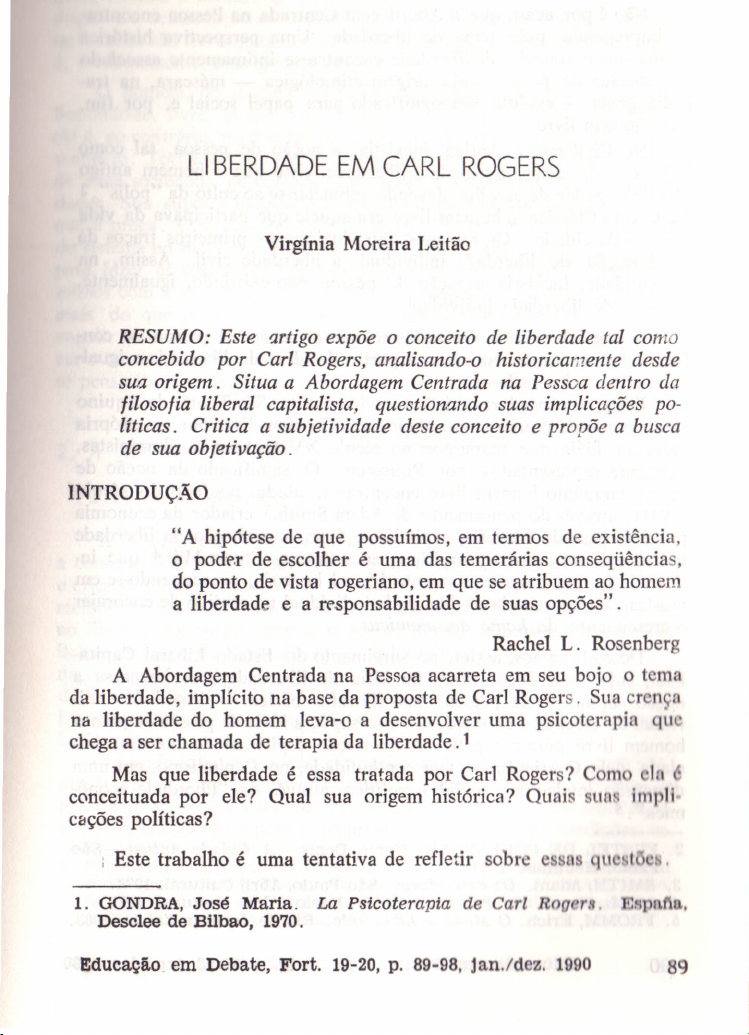 da liberdade, implícito na base da proposta de Carl Rogers. Sua cren CI