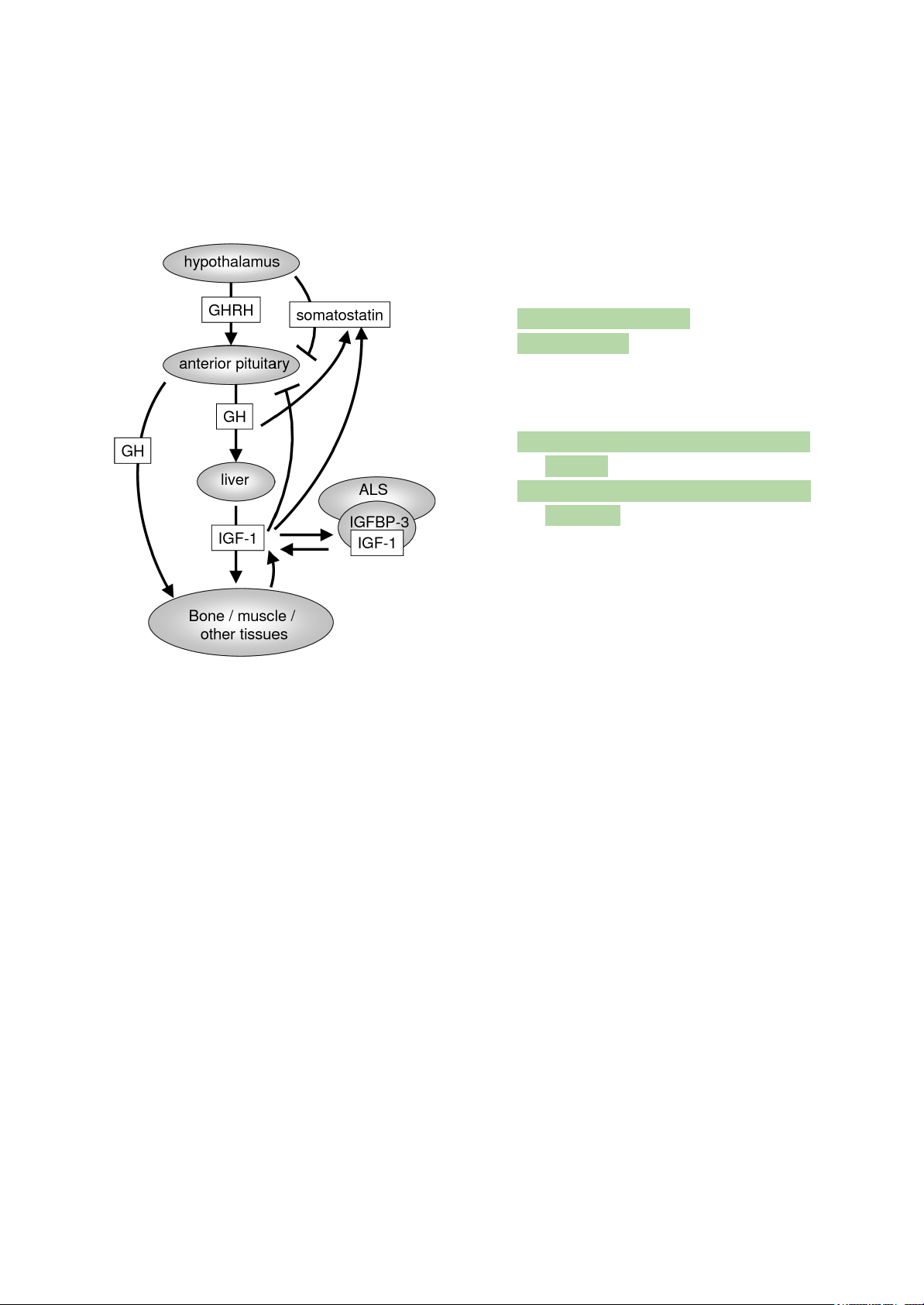 Acromegalia e Gigantismo https://blog.csdn.net/2501_91949183/article/details/147969453 Hormônios 1. GHRH e Somatostatina (Hipotálamo) 2. GH (Hipófise anterior) 3. IGF-1 (Fígado) obs: A Somatostatina é inibitória sob a secreção de GH - Faz-se necessário um equilíbrio entre entre GHRH e a Somatostatina. Efeitos: GH: efeito predominante Aumenta a síntese proteica ● + Captação de aminoácidos; ● - degradação proteica. Usa gordura como fonte de energia: ● + A.G no sangue; ● + Lipólise. Efeito diabetogênico ● Diminui a captação periférica de glicose; ● Aumenta a gliconeogênese hepática. Por isso, o excesso de GH pode levar a diabetes! Induz a produção de IGF-1 pelo fígado Condições: ACROMEGALIA É causada pelo excesso de GH e IGF-1 após o fechamento das placas epifisárias - não há crescimento em altura, mas ocorre crescimento em espessura e de partes moles. GIGANTISMO Excesso de GH antes do fechamento das placas epifisárias - crescimento linear aumentado (nesse caso, o GH/IGF-1 agem principalmente nas cartilagens de crescimento). Causa Principal - 98%: Adenoma Hipofisário Secretor de GH. - Em 20-25% são mistos: secretam GH e Prolactina 10%: Pode ser de produção ectópica - por tumores carcinoides, linfomas e CA ou pelo aumento da produção de GHRH pelo hipotálamo. Raramente: Associado a síndromes genéticas OBS:Geralmente são Macroadenomas - Causam sintomas de compressão na abertura do quadro - cefaleia, hemianopsia bilateral (perda da visão). CLÍNICA https://neurocirurgiao.net.br/acromegalia/ - Sobrancelha proeminente; - Alargamento do nariz e orelhas; - Aumento do queixo; - Hipertrofia de parótida; - Aumento de mãos e pés; - Aumento do espessamento interdental; - Macroglossia; - Hiperidrose (excesso de suor); - Acantose Nigricans; - Acne. COMO É FEITO O DIAGNÓSTICO? Quais são as indicações: 1. Clínica típica de acromegalia; 2. Adenoma Hipofisário; 3. Múltiplas condições associadas: - Resistência à Insulina; - Dislipidemia; - Cardiomegalia; - Hipertensão Arterial; - Dificuldade Respiratória; - Neurológicas por compressão de nervos… SBEM 2011: IGF-1 Aumentado para idade + GH>1ug/L no TOTG GH basal (pouco específico, já que depende de picos) > 4 ng/mL e/ou IGF-1 elevado para a idade - Indicar investigação adicional (TOTG). obs: Se o paciente tiver a clínica indicativa, pode-se solicitar também! - GH 0,4: Não exclui, investigar mais… Por si só, não é um valor de GH alto - apenas não exclui a possibilidade, já que o GH 25 Kg/m² Normal se GH 90%; ● Controle Humoral 60%; ● Resposta demorada; ● Necessário manter tratamento medicamentoso; ● Efeitos colaterais como Hipopituitarismo e alterações visuais. MARCADOR DE CONTROLE O IGF-1 é o principal marcador devido a sua estabilidade: - Reflete a produção média de GH; - Tem meia-vida longa; - É estável ao longo do dia. Porque não a medida de GH? O uso do GH basal perdeu força nas diretrizes atuais. Antes, considerava-se GH