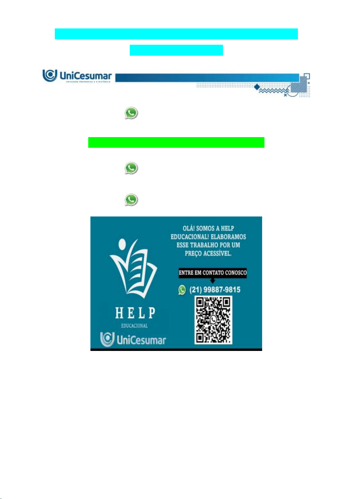MAPA - AGRON - ESTATÍSTICA E EXPERIMENTAÇÃO AGRICOLA -51_2026 (21) 99887-9815 ASSESSORIA NOS SEUS TRABALHOS (21) 99887-9815 (21) 99887-9815 A Análise de Variância (ANOVA) é uma ferramenta estatística fundamental na experimentação agronômica, pois permite avaliar se as diferenças observadas entre tratamentos são estatisticamente significativas ou decorrentes da variabilidade experimental. Para compreender o funcionamento da ANOVA, é essencial dominar todas as etapas do cálculo, desde a organização dos dados até a interpretação do teste F. MAPA - AGRON - ESTATÍSTICA E EXPERIMENTAÇÃO AGRICOLA -51_2026 Objetivo da atividade: - Executar o cálculo manual da Análise de Variância (ANOVA); - Compreender o significado estatístico de cada componente da ANOVA; - Interpretar o teste F aplicado a experimentos agronômicos. Descrição do experimento: - Cultura: Soja (Glycine max L.); - Delineamento experimental: Delineamento Inteiramente Casualizado (DIC); - Fator avaliado: Dose de inoculação (mL.ha); - Número de tratamentos: 5; - Número de repetições: 3; - Variável resposta: produtividade da soja (sc.ha). Tabela de dados: MAPA - AGRON - ESTATÍSTICA E EXPERIMENTAÇÃO AGRICOLA -51_2026 MAPA - AGRON - ESTATÍSTICA E EXPERIMENTAÇÃO AGRICOLA -51_2026 Tratamentos Dose de inoculante (mL.ha) Produtividade da soja (sc.ha) Repetição 1 Repetição 2 Repetição 3 T1 0 47 48 46 T2 50 50 51 49 T3 100 53 52 54 T4 150 56 55 57 T5 200 58 57 59 Agora, baseado nos dados da Tabela acima, calcule: 1) Média Produtiva: - Calcular a média produtiva de cada tratamento; - Calcular a média geral do experimento; MAPA - AGRON - ESTATÍSTICA E EXPERIMENTAÇÃO AGRICOLA -51_2026 2) Graus de liberdade (GL): - Graus de liberdade do Tratamento (GLTrat); - Graus de liberdade do resíduo (GLRes); - Graus de liberdade total (GLTotal); 3) Soma dos Quadrados (SQ): - Soma de Quadrados Total (SQTotal); - Soma de Quadrados dos Tratamentos (SQTrat); - Soma de Quadrados do Resíduo (SQRes); 4) Quadrados médios (QM): - Quadrado médio do Tratamento (QMTrat); - Quadrado médio do Resíduo (QMRes); 5) Teste F: - Calcular o F calculado (Fcalc); MAPA - AGRON - ESTATÍSTICA E EXPERIMENTAÇÃO AGRICOLA -51_2026 - Comparar com o F tabelado, considere Ftabelado = 3,478 (α = 0,05); - Concluir se há ou não diferença significativa entre os tratamentos. Forma de entrega da atividade: - Entrega deve ser realizada utilizando o formulário padrão MAPA; - Utilize a tabela destinada à entrega dos resultados disponível nessa atividade, preenchendo corretamente todos os campos referentes aos cálculos realizados; - É proibido o uso de softwares estatísticos para realização da atividade; - Todos os cálculos devem ser apresentados através de fotos inseridas ao final do Formulário Padrão MAPA; - Resultados sem apresentação do cálculo serão desconsiderados; - Não se esqueça de calcular e responder o item “1) Médias”, que não vai ser preenchido na Tabela; - A comparação do Teste F e a conclusão se há ou não efeito significativo também deve ser respondido fora Tabela. Tabela de Entrega dos Resultados (insira os valores corretamente nos campos correspondentes). MAPA - AGRON - ESTATÍSTICA E EXPERIMENTAÇÃO AGRICOLA -51_2026 Fonte GL SQ QM Fcalc Tratamentos (Trat) Resíduo (Res) - MAPA - AGRON - ESTATÍSTICA E EXPERIMENTAÇÃO AGRICOLA -51_2026 Total - - TENÇÃO: - Esta atividade deve ser realizada individualmente. - A forma de entrega é em ANEXO diretamente na ferramenta da atividade MAPA. - É permitido anexar apenas um (1) arquivo no sistema. - Baixe o referido arquivo no ícone de Material da Disciplina, responda neste mesmo arquivo e salve-o em seu computador, colocando o nome da disciplina e a data para não errar o arquivo no momento de anexar. O arquivo facilita a organização da resposta, não deixe de utilizá-lo. - A Unicesumar não se responsabiliza pelo envio de arquivos errados, onde não haverá possibilidade de trocar o arquivo após clicar em FINALIZAR, nem mesmo o envio por outras ferramentas, portanto, faça a devida conferência de seu arquivo anexado, antes de clicar na ferramenta para finalizar a atividade Mapa. - Seu arquivo contendo a resposta deverá ser anexado diretamente no campo do mapa, em seu Studeo, dentro do prazo estabelecido. Consulte o prazo de participação no cabeçalho desta atividade e também no calendário da disciplina. - Todas as fontes utilizadas para a elaboração de suas respostas devem ser devidamente referenciadas ao final do arquivo de resposta. Siga as regras das normas da Associação Brasileira de Normas Técnicas (ABNT) NBR 10520 para apresentação das citações no texto, e NBR 6023 para a apresentação das referências (fontes consultadas para realizar a atividade). - Lembre-se que a cópia de trechos, textos e imagens disponíveis na internet, em livros, no material didático ou em outras fontes é considerada plágio caso não tenha MAPA - AGRON - ESTATÍSTICA E EXPERIMENTAÇÃO AGRICOLA -51_2026 as devidas fontes e referências. Estude e pesquise pelo assunto a fim de enriquecer sua argumentação teórica sobre o tema. Um bom trabalho na confecção de seu MAPA. Bons estudos! 1223456789 OLÁ! SOMOS A HELP EDUCACIONAL! ELABORAMOS ESSE TRABALHO POR UM PREÇO ACESSÍVEL. ENTRE EM CONTATO CONOSCO (21) 99887-9815