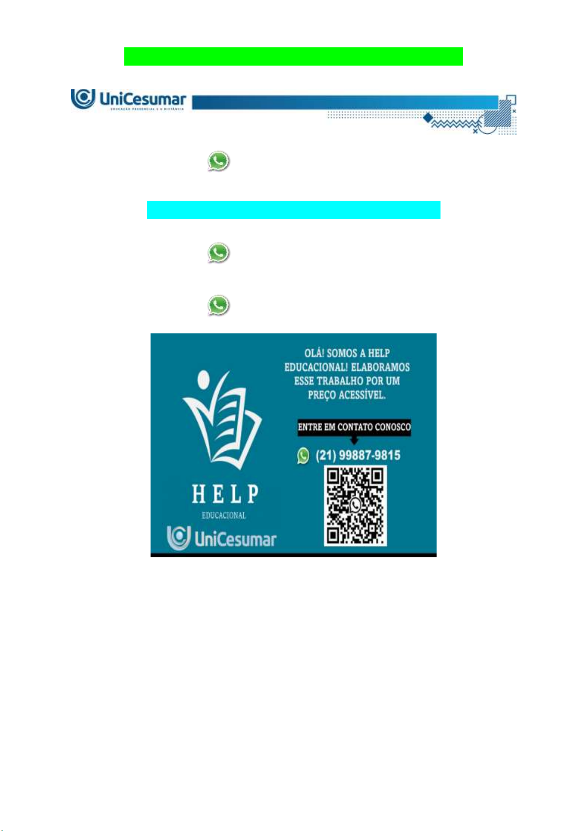 MAPA - ELETRÔNICA ANALÓGICA - 51_2026 (21) 99887-9815 ASSESSORIA NOS SEUS TRABALHOS (21) 99887-9815 (21) 99887-9815 A Modulação por largura de pulso (PWM) é uma técnica digital que controla um sinal ligando-o e desligando-o repetidamente em um padrão. A quantidade de tempo em que o sinal permanece ligado e desligado é chamada de ciclo de trabalho (duty cycle). A PWM é usada para criar sinais analógicos a partir de sinais digitais. Funcionamento da PWM: Um sinal digital é ligado e desligado, sendo a duração do tempo “ligado” variável. O ciclo de trabalho é a razão entre o tempo ligado e o tempo desligado e determina a tensão média do sinal. MAPA - ELETRÔNICA ANALÓGICA - 51_2026 Aplicações da PWM: A PWM pode ser utilizada para controlar a velocidade do eixo de motores CC, que são usados em muitas aplicações, como pequenos brinquedos, modelos e robôs, na variação da intensidade luminosa, em efeitos sonoros, criando sons que ficam cada vez mais altos e mais baixos. Alguns parâmetros da PWM: Os dois parâmetros principais de um sinal PWM são a frequência e o ciclo de trabalho. Os ciclos de trabalho são frequentemente expressos como porcentagens, assim, podendo variar entre 0 e 100% do período do sinal. Os microcontroladores possuem funções integradas que podem ser utilizadas para gerar um sinal PWM, entretanto, há circuitos integrados dedicados que são projetados exclusivamente para fornecer um sinal PWM para o controle de potência, a exemplo dos conversores chaveados em alta frequência, como é o caso das famílias UC384x, UC3854, UC3524, UC3525, entre outros. Vamos analisar o caso do UC3524, que tem grande difusão e uso popular em projetos de fontes de alimentação chaveadas. A Figura 1 mostra o diagrama de blocos do UC3524. Figura 1 – Diagrama de blocos do UC3524. MAPA - ELETRÔNICA ANALÓGICA - 51_2026 Fonte: Texas Instruments Incorporated (2002, p. 1). O UC3524 é um circuito de controle regulador de tensão com modulação por largura de pulso de frequência fixa. O regulador opera em uma frequência programada por um resistor de temporização (RT) e um capacitor de temporização (CT). O RT estabelece uma corrente de carga constante para o CT. Isso resulta em uma rampa de tensão linear no CT, que é alimentada ao comparador, fornecendo controle linear da largura de pulso de saída pelo amplificador de erro. O UC3524 contém um regulador de 5 V integrado que serve como referência, além de alimentar o circuito de controle interno, sendo também útil no fornecimento de funções de suporte externo. Essa tensão de referência é reduzida externamente por um divisor de resistor para fornecer uma referência dentro da faixa de modo comum do amplificador de erro, ou uma referência externa pode ser utilizada. A saída da fonte de alimentação é detectada por uma segunda rede divisora de resistores para gerar um sinal de realimentação para o amplificador de erro. A tensão de saída do amplificador é então comparada à rampa de tensão linear no CT. O pulso modulado resultante do comparador de alto ganho é então direcionado para o transistor de passagem de saída apropriado (Q1 ou Q2) pelo flip-flop de direcionamento de pulso, que é alternado de forma sincronizada pela saída do oscilador. O pulso de saída do oscilador também serve como um pulso de apagamento para garantir que ambas as saídas nunca sejam ligadas simultaneamente durante os tempos de transição. A saída do amplificador de erro compartilha uma entrada comum para o comparador com o circuito de limitação e desligamento de corrente e pode ser sobreposta por sinais de qualquer uma dessas entradas. Esse ponto comum também está disponível externamente e pode ser empregado para controlar o ganho ou compensar o amplificador de erro ou para fornecer controle adicional ao regulador. Fonte: TEXAS INSTRUMENTS INCORPORATED. UC1524, UC2524, UC3524 - Advanced Regulating Pulse Width Modulators. Dallas: Texas Instruments, 2002. MAPA - ELETRÔNICA ANALÓGICA - 51_2026 Atividade MAPA Com base no conhecimento da PWM e do exemplo dado, analise o circuito a seguir dado na Figura 2: Figura 2 − PWM com NE555. Na Figura 2 temos um timer NE555 atuando como gerador de PWM. 1) (1,0 ponto). O estudante deverá montar o circuito e simulá-lo no ambiente LTSpice conforme apresentado e obter as formas de onda dos pontos identificados: - Pulso_de_trigger. - MODULAÇÃO. - V_C1. - Vout. Observação: o circuito montado pelo estudante deve ser anexado na resposta dessa questão. 2) O estudante deverá realizar o agendamento de prática no seu polo de apoio presencial e: a) (0,5 ponto). Realizar o experimento utilizando a maleta de eletrônica analógica com os recursos disponíveis nela, podendo variar os valores de resistor e capacitor para valores próximos caso necessário, obtendo cada forma de onda de acordo com os MAPA - ELETRÔNICA ANALÓGICA - 51_2026 itens da questão 1. Para essa etapa da atividade, o estudante ou sua equipe formada por até cinco estudantes deverá realizar o experimento e registrá-lo por meio de foto digital (pode utilizar smartphone). A foto deverá ser anexada nesta questão. Observação: mesmo que a atividade seja realizada em equipe, cada estudante deverá entregar o seu próprio arquivo MAPA de forma individual. Dicas: - Para gerar os sinais, o estudante deve utilizar o gerador de funções AFG1022 com dois canais de saída, sendo um para a MODULAÇÃO e o outro para o Pulso_de_trigger. - Utilizar o osciloscópio digital para capturar as formas de onda do circuito. b) (1,0 ponto). Uma vez montado o circuito, o estudante deverá apresentar as formas de onda dos mesmos pontos da questão 1 (Pulso_de_trigger, MODULAÇÃO, V_C1 e Vout), só que agora a partir do circuito físico. 3. (1,0 ponto). O estudante deverá explicar o que significa cada sinal obtido na questão 2 e sua relação na PWM. 122345678 OLÁ! SOMOS A HELP EDUCACIONAL! ELABORAMOS ESSE TRABALHO