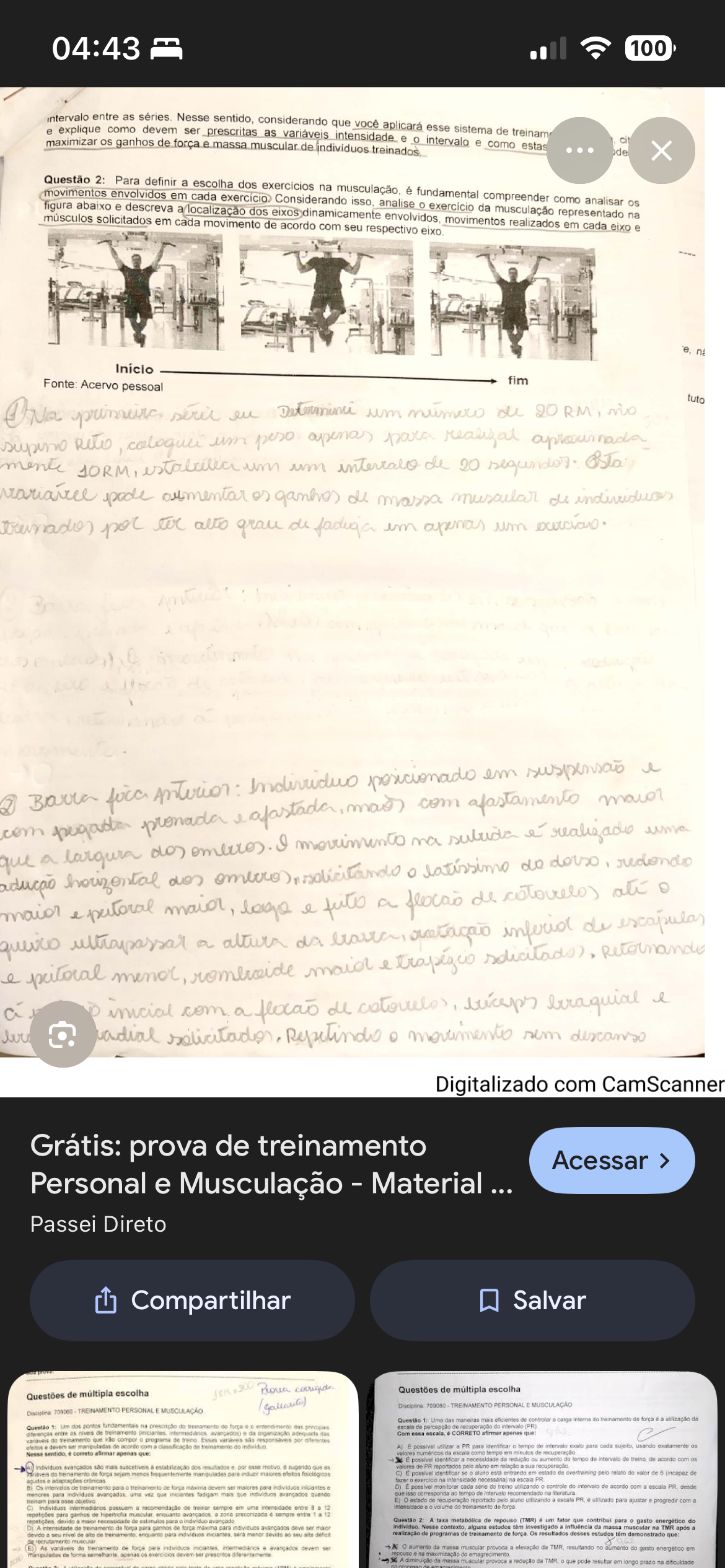 04:43 100 intervalo entre as Nesse considerando que você aplicará esse sistema e explique como devem ser prescritas as variáveis intensidade e intervalo e como de treinam estas maximizar ganhos de força e massa muscular de individuos de movimentos figura abaixo e descreva exercício. Considerando analise exercício da musculação analisar Questão 2: envolvidos Para definir em a cada escolha dos exercícios na é fundamental compreender como músculos solicitados em cada movimento dos de acordo com seu respectivo envolvidos movimentos realizados representado em cada eixo na e e Início Acervo pessoal fim tuto um de 20 RM, no Reto um pero apenas para mente 10RM, um um de 20 pode or massa por ter alto grau fadiga im um 2 Barra pronada afastada realizado Anterior com em com dos I ma que a do ati maior maior, lago a de ultrapassar a da inferior de menor, maid l a inicial a flocao dl braquial l sem Digitalizado com CamScanner Grátis: prova de treinamento Acessar > Personal e Musculação Material Passei Direto Compartilhar Salvar Questões de múltipla escolha Questões de múltipla escolha 709060 TREINAMENTO PERSONAL MUSCULAÇÃO Disciplina 709060 TREINAMENTO PERSONAL MUSCULAÇÃO Questão Uma das maneiras mais eficientes de controlar interna do treinamento de força da Questão dos fundamentais na do percepção intervalo (PR) entre de treinamento organização Com essa escala CORRETO afirmar apenas que do que compor programa de treino Essas devem ser com do A) É utilizar PR para identificar tempo de exato para cada sujeito, usando exatamente Nesse sentido, correto afirmar apenas valores numéricos escala como tempo minutos de recuperação da ou aumento tempo de de de acordo mais suscetives dos resultador esse valores reportados aluno relação do força sejem frequentemente maores identificar aluno está entrando estado de pelo relato do valor de (incapaz de adaptações fazer intensidade necessária escala PR B) força devem individuos D) monitorar cada série treino controle do acordo com escala PR desde para uma que mais individuos avançados corresponda tempo intervalo recomendado para esse estado recuperação reportado pelo aluno utilizando escala PR para ajustar progredir com recomendação de treinar em uma intensidade entre 12 intensidade volume de forca para ganhos de muscular entre 12 devido maior Questão A taxa metabólica de repouso (TMR) é um fator que contribui para gasto energético do intensidade força para para avançados Nesse contexto alguns estudos investigado da muscular na TMR após devido seu nive de de enquanto para menor devido realização de programas de treinamento de Os resultados desses estudos têm demonstrado que muscular treinamento de para individuos avançados aumento da massa muscular provoca elevação da TMR resultando no aumento do gasto em de exercicios ser maximização do emagrecimento diminuição massa muscular redução da TMR que pode resultar em longo prazo na dificuldade