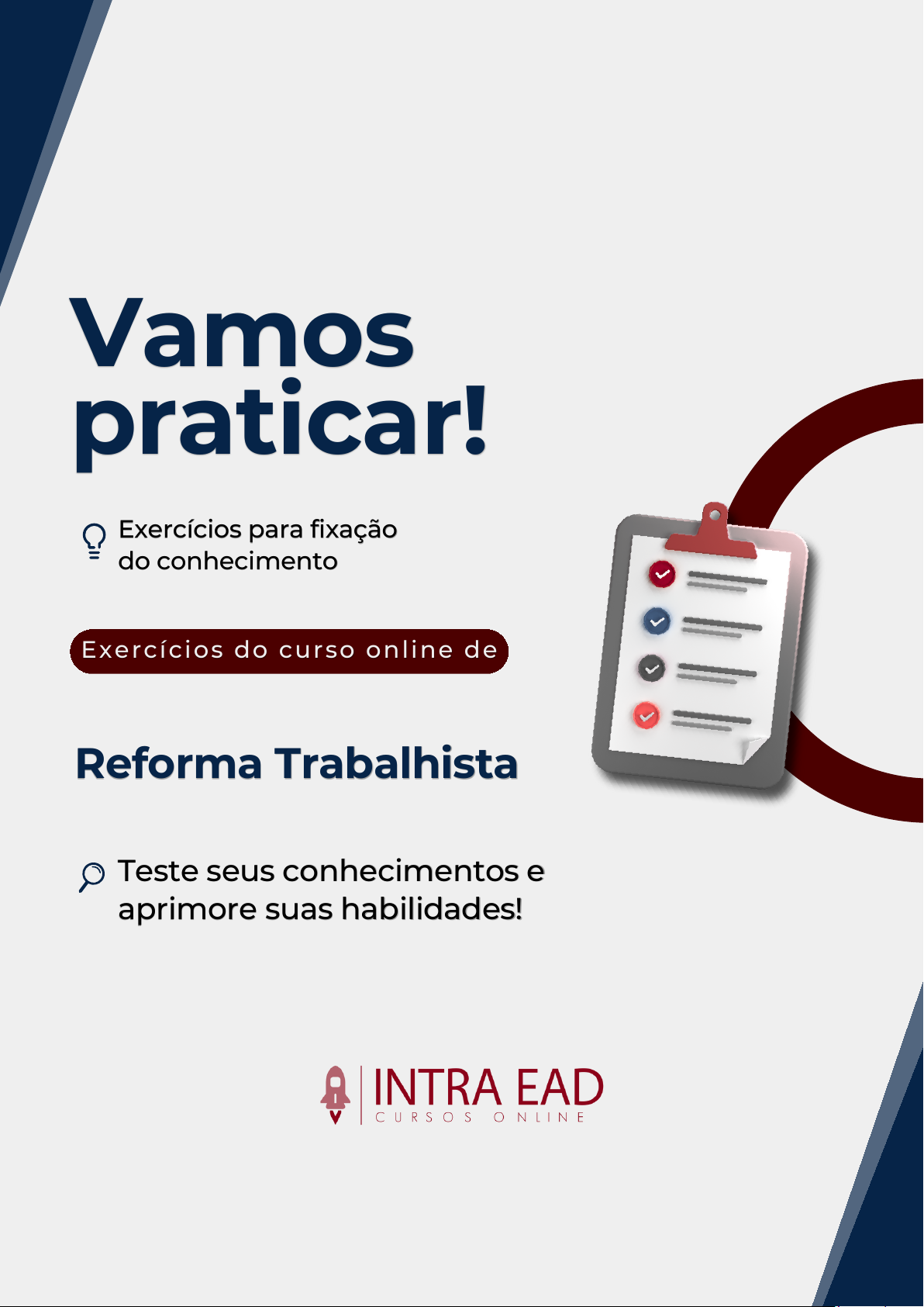 Exercícios do curso online de Vamos praticar! Reforma Trabalhista Exercícios para fixação do conhecimento Teste seus conhecimentos e aprimore suas habilidades! Exercício Questão 1 Com a Reforma Trabalhista, qual foi a regra adotada sobre o tempo de deslocamento entre a residência e o local de trabalho (inclusive quando há transporte fornecido pelo empregador)? A) Passou a ser computado como jornada sempre que o local for de difícil acesso. B) Passou a ser computado como jornada somente se houver transporte fornecido pelo empregador. C) Deixou de ser computado na jornada, por não ser tempo à disposição do empregador. D) Manteve-se o entendimento da Súmula 90 do TST, sem alteração legal. Questão 2 Segundo a Reforma Trabalhista, o trabalho em regime de tempo parcial pode ocorrer: A) Em até 25 horas semanais, sem horas extras em qualquer hipótese. B) Em até 30 horas semanais sem horas suplementares, ou em até 26 horas semanais com possibilidade de até 6 horas suplementares. C) Em até 44 horas semanais, desde que com salário proporcional. D) Em até 36 horas semanais, obrigatoriamente com banco de horas. Exercício Questão 3 Um empregado trabalha 8 horas por dia, mas usufrui apenas 30 minutos de intervalo para refeição. Após a Reforma Trabalhista, a empresa deverá pagar: A) Uma hora inteira, com acréscimo de 50%, porque a supressão parcial gera pagamento do período total. B) Apenas os 30 minutos suprimidos, com acréscimo de 50%, com natureza indenizatória. C) Duas horas, com acréscimo de 50%, como penalidade pelo descumprimento. D) Nada, porque o intervalo passou a ser livremente negociável sem limites. Questão 4 Na extinção do contrato por acordo entre as partes, conforme descrito na apostila, é correto afirmar que: A) O empregado pode sacar 100% do FGTS e tem direito ao seguro-desemprego. B) O aviso-prévio indenizado e a multa do FGTS são pagos integralmente, como na dispensa sem justa causa. C) O empregado recebe metade do aviso-prévio (se indenizado) e metade da indenização sobre o FGTS; pode movimentar até 80% do FGTS, mas não tem seguro- desemprego. D) O acordo só é válido se homologado pelo sindicato, independentemente do tempo de contrato. Exercício Questão 5 Sobre a jornada 12x36 após a Reforma Trabalhista, assinale a alternativa correta: A) Só pode ser pactuada por acordo coletivo ou convenção coletiva, sendo inválido acordo individual escrito. B) O trabalho em feriados na escala 12x36 deve ser sempre pago em dobro, conforme a Súmula 444 do TST, sem exceções. C) Pode ser pactuada por acordo individual escrito, convenção coletiva ou acordo coletivo; e a remuneração mensal pactuada abrange o descanso semanal e feriados, considerados compensados. D) Permite que empregados contratados para 8 horas alternem livremente entre 8 horas e 12 horas, sem ajuste formal. Correção Comentada: Questão 1 Com a Reforma Trabalhista, qual foi a regra adotada sobre o tempo de deslocamento entre a residência e o local de trabalho (inclusive quando há transporte fornecido pelo empregador)? A) Passou a ser computado como jornada sempre que o local for de difícil acesso. B) Passou a ser computado como jornada somente se houver transporte fornecido pelo empregador. C) Deixou de ser computado na jornada, por não ser tempo à disposição do empregador. D) Manteve-se o entendimento da Súmula 90 do TST, sem alteração legal. Gabarito: C) Deixou de ser computado na jornada, por não ser tempo à disposição do empregador. Análise: A) Incorreta. Essa era a lógica tradicional (especialmente quando local era de difícil acesso e havia transporte), mas a reforma alterou a regra legal. B) Incorreta. A reforma não condicionou o cômputo à existência de transporte fornecido; ao contrário, afastou o cômputo inclusive nessa hipótese. C) Correta. A nova redação indica que o tempo de percurso não integra a jornada, por não ser tempo à disposição do empregador. D) Incorreta. A apostila explica que a reforma contraria/afasta a lógica aplicada antes (inclusive a referência à Súmula 90), ao estabelecer regra legal diferente. É hora de conferir suas respostas, entender os detalhes e aprender ainda mais! 🚀 Correção Comentada: Questão 2 Segundo a Reforma Trabalhista, o trabalho em regime de tempo parcial pode ocorrer: A) Em até 25 horas semanais, sem horas extras em qualquer hipótese. B) Em até 30 horas semanais sem horas suplementares, ou em até 26 horas semanais com possibilidade de até 6 horas suplementares. C) Em até 44 horas semanais, desde que com salário proporcional. D) Em até 36 horas semanais, obrigatoriamente com banco de horas. Gabarito: B) Em até 30 horas semanais sem horas suplementares, ou em até 26 horas semanais com possibilidade de até 6 horas suplementares. Análise: A) Incorreta. A reforma ampliou as formas do regime parcial, não ficando restrito a 25 horas e passando a prever hipótese com horas suplementares. B) Correta. É exatamente a estrutura trazida na apostila: até 30h sem suplementares ou até 26h com até 6 suplementares. C) Incorreta. 44 horas é a jornada “cheia” tradicional, não “tempo parcial”. D) Incorreta. A reforma não criou “36 horas” como limite do parcial, nem condicionou o parcial obrigatoriamente a banco de horas. É hora de conferir suas respostas, entender os detalhes e aprender ainda mais! 🚀 Correção Comentada: Questão 3 Um empregado trabalha 8 horas por dia, mas usufrui apenas 30 minutos de intervalo para refeição. Após a Reforma Trabalhista, a empresa deverá pagar: A) Uma hora inteira, com acréscimo de 50%, porque a supressão parcial gera pagamento do período total. B) Apenas os 30 minutos suprimidos, com acréscimo de 50%, com natureza indenizatória. C) Duas horas, com acréscimo de 50%, como penalidade pelo descumprimento. D) Nada, porque o intervalo passou a ser livremente negociável sem limites. Gabarito: B) Apenas os 30 minutos suprimidos, 