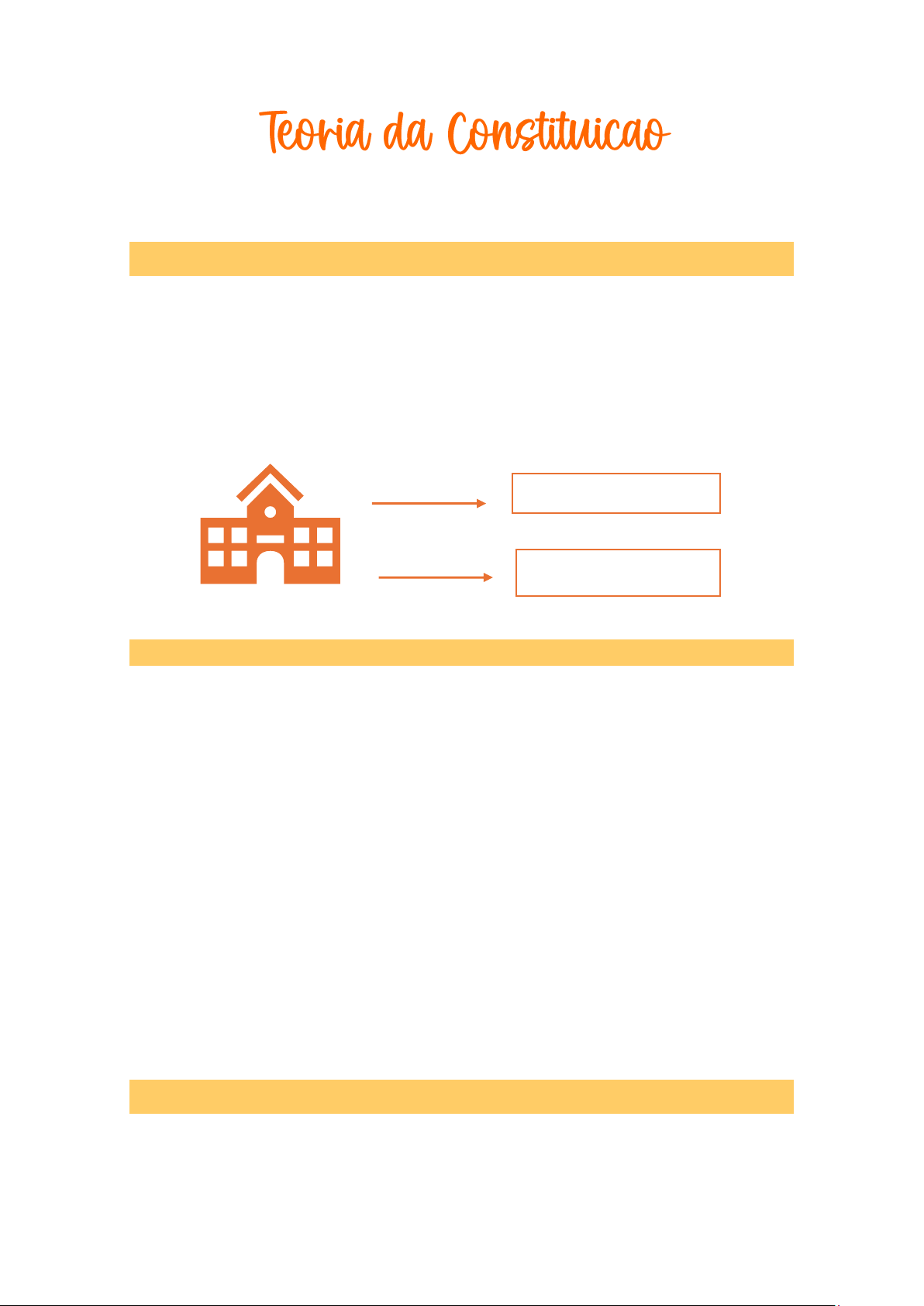 Teoria da Constituição @natali.studies Introdução A Teoria da Constituição é o ramo do Direito público que estuda o conceito, a origem, a estrutura e a validade das normas constitucionais. Ela funciona como o “alicerce” de todo o ordenamento jurídico, pois a constituição é a norma de validade de todas as outras leis. Conceitos de Constituição Diferentes pensadores definiram a Constituição sob prismas distintos. Os 3 principais são: • Sentido sociológico (Ferdinand LaSalle): A constituição é a “soma dos fatores reais do poder”. Se a folha de papel não refletir as forças sociais, ela é apenas uma “folha de papel” sem força. • Sentido político (Carl Schmitt): A Constituição é uma “decisão política fundamental”. Ele diferencia a Constituição de Leis Constitucionais. • Sentido Jurídico (Hans Kelsen): A Constituição é uma norma jurídica pura, no topo da pirâmide. Kelsen propõe o sentido Lógico- jurídico e o jurídico positivo. Classificação das Constituições As Constituições podem ser classificadas de diversas formas. A nossa CF/88, por exemplo, é: Outras Leis Constituição • Promulgada: Fruto de uma Assembleia Constituinte; • Escrita: Codificada em um texto único; • Rígida: Exige um processo árduo para alteração; • Analítica: Trata de muitos temas; • Dogmática: Reflete os valores e dogmas de um momento político; Elementos das Constituições José Afonso da Silva divide o conteúdo constitucional em cinco grupos de elementos: • Orgânicos: Regulam a estrutura do Estado e dos Poderes; • Limitativos: Direitos e garantias fundamentais; • Socioideológicos: Normas que revelam o caráter social ou liberal; • Estabilização Constitucional: Mecanismos para proteger a Constituição; • Formas de Aplicabilidade: Regras de Aplicação; O Poder Constituinte A teoria também estuda quem tem a força para criar ou alterar a norma suprema: • Poder Constituinte Originário: Criar uma Constituição. É inicial, Limitado, autônomo e incondicionado; • Poder Constituinte Derivado: Tem a função de alterar ou decorar/explicar a Constituição. É limitado e condicionado pelo Poder Originário. Aplicabilidade das Normas Constitucionais De acordo com a clássica doutrina de José Afonso da Silva, as normas podem ter: • Eficácia Plena: Produzem efeitos imediatos e integrais; • Eficácia contida: Produzem efeitos imediatos, mas podem ser restringidas por lei futura; • Eficácia Limitada: Dependem de uma lei posterior para produzir seus efeitos principais;