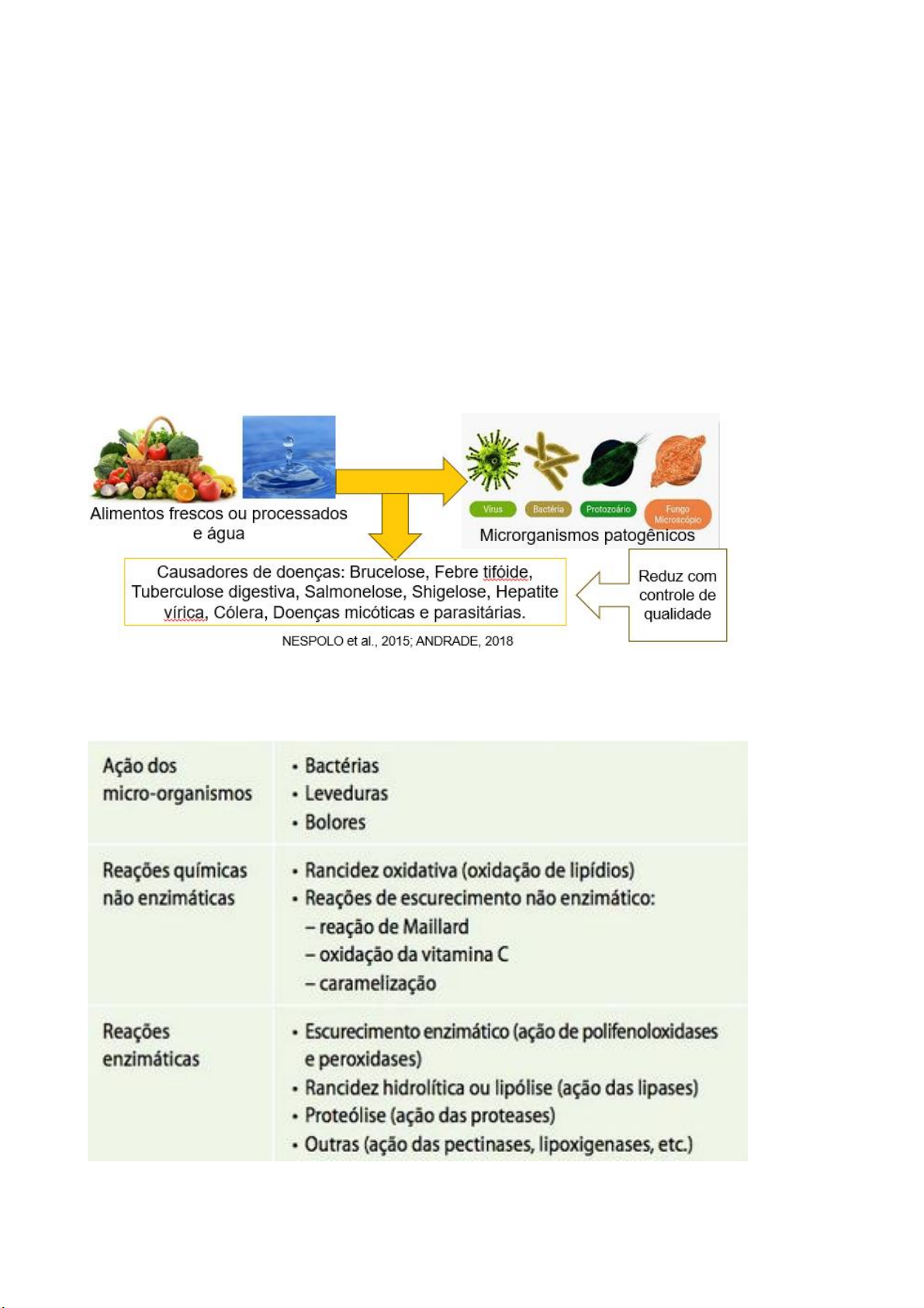DISCIPLINA: TECNOLOGIA DE ALIMENTOS Aula 2: CONTROLE DE QUALIDADE E CONSERVAÇÃO DE ALIMENTOS Prof.ª Drª CELMA DE OLIVEIRA BARBOSA CONTROLE DE QUALIDADE • Principal objetivo: Oferecer aos consumidores produtos de origem animal e vegetal com normas de específicas de Segurança Sanitária. • Aumentar vida de prateleira REAÇÕES DE DETERIORAÇÃO NESPOLO et al., 2015 A deterioração de alimentos é um processo complexo que pode ser causado por fatores físicos, químicos ou biológicos. Os alimentos deteriorados podem apresentar alterações de odor, cor, textura, sabor e aspecto. Fatores que causam a deterioração • Microrganismos: Bactérias, fungos e leveduras podem deteriorar os alimentos. • Oxidação: A troca de elétrons entre compostos químicos pode levar à Rancificação dos alimentos. • Condições ambientais: A temperatura entre 5 ºC e 65 ºC favorece a proliferação de microrganismos. FATORES QUE INFLUENCIAM NA DETERIORAÇÃO DOS ALIMENTOS COMO É REALIZADO O CONTROLE DE QUALIDADE? • Implementando métodos de produção. • Monitorando os processos. • Realizando ações para prevenir a contaminação. • Analisando a presença e a quantidade de bactérias. • Verificando se os alimentos estão de acordo com os critérios estipulados pelos órgãos reguladores. CONSERVAÇÃO DE ALIMENTOS A relevância da tecnologia de alimentos está no desenvolvimento de métodos e processos que possam reduzir as perdas, aumentando o aproveitamento de subprodutos, e, também aumentar a disponibilidade de alimentos, aumentando sua “vida de prateleira” sem abrir mão da qualidade. Conservação é a arte que consiste em manter o alimento o mais estável possível, mesmo em condições nas quais isso não seria viável. A conservação de alimentos envolve três características: físicas, químicas e biológicas (FOOD INGREDIENTS BRAZIL, 2012). CONSERVAÇÃO A FRIO • Mais utilizados para a conservação dos alimentos. • Inibe ou retarda a multiplicação dos microrganismos. • Retardar as reações químicas e enzimáticas. Refrigeração • Abaixamento temporário da temperatura do alimento entre -1,5° C a 10°C até aplicação de outro método de conservação. • Prolonga a vida útil por um período limitado. MOs que crescem a 3º C, são eles: • Listeria monocytogenes, Aeromonas hydrophila, Clostridium botulinum, Yersinia enterocolitica, Vibrio parahaemolyticus, Algumas cepas de Escherichia coli e Bacillus cereus. Congelamento • Diminuição do nível da temperatura para valores de -40º C a -10ºC, e para que haja um perfeito congelamento, é recomendado que 80% da água livre seja transformada em gelo. • Efeito: Reduz Aw e temperatura. Indesejável: Formação de cristais grandes de gelo. • Quanto mais rápido o congelamento, menor será́ o tamanho dos cristais. CONSERVAÇÃO PELO CALOR • O emprego das altas temperaturas na conservação de alimentos está fundamentado no caráter biocida que o calor tem sobre os micro-organismos. 1) Pasteurização • Temperaturas inferiores a 100ºC, destrói Microrganismos patogênicos não- esporulados. • Tipos: ✓ Lenta: Baixa temperatura/longo tempo (LTLT) → 62°C a 65°C por 30 min, resfriado depois a 4ºC. ✓ Rápida: Alta temperatura/tempo curto (HTST) → 72°C a 75°C por 15 seg. • Alimentos: leite, ovos, sucos, bebidas alcoólicas, molhos, sopas e outros. 2) Esterilização • Produtos embalados são colocados em autoclaves em temperaturas acima de 100ºC (110 a 125º C). • Pode esterilizar produto antes de embalar, temperatura de 130 a 150º C, poucos segundos. • Destrói Microrganismos e esporos. • Alimentos: Leite UHT (embalagem longa vida do tipo caixinha), suco de caixinha, ervilha ou milho em conserva. 3) Branqueamento • Imersão do alimento em água fervente por poucos segundos, seguido de resfriamento. • Entre 80 e 100ºC aproximadamente. • Inativar enzimas deteriorantes no produto antes de realizar outro tratamento. • Alimentos: Vegetais desidratados e vegetais congelados. 4) Tindalização: • Alimento é acondicionado em um recipiente fechado. • Temperaturas entre 60 e 90ºC, durante alguns minutos por várias vezes, e depois períodos de resfriamento, intercalados. • Número de aquecimentos pode variar de 3 a 12. 5) Secagem: • Secagem natural: Realizada em regiões com temperaturas médias de 35 °C a 40 °C, maior qualidade, quando a umidade reduzida de 50% a 70% ao sol. • Secagem artificial: Equipamentos específicos - Ar quente com uma velocidade de 0,5 m/s a 3 m/s e baixa umidade. 6) Apertização: • Processo térmico aplicado a alimentos convenientemente acondicionados em embalagens herméticas (vácuo), submetido um tempo à alta temperatura até destruição dos Microrganismos. Usado em enlatados, sucos, sopas, geleias, entre outros. CONSERVAÇÃO PELO CONTROLE DE OXIGÊNIO E ÁGUA DESIDRATAÇÃO • Remoção controlada da água, reduzindo Aw e Microrganismos. • Objetivos: Redução de alterações químicas, facilidade de transporte e distribuição, Redução de custos com embalagens e praticidade. LIOFILIZAÇÃO • É uma técnica de redução do conteúdo de água que faz uso de baixas temperaturas, sendo bastante utilizada a alimentos termossensíveis. Perdas mínimas de nutrientes. • Nessa técnica, o alimento é inicialmente congelado (congelamento rápido, de preferência) e, em seguida, este terá o seu conteúdo de água removido por meio da aplicação de vácuo e da sublimação que ocorre durante o processo. CONSERVAÇÃO POR FERMENTAÇÃO • É um conjunto de trocas ou decomposição química produzida pela atividade de microrganismos vivos em um substrato orgânico. • Para se produzir um alimento fermentado deve ser levado em conta o tipo de microrganismos, o substrato (alimento), pH, temperatura. • São exemplos de alimentos fermentados: queijos, bebidas lácteas, vinho, cerveja, molhos a base de soja, salame, pipe