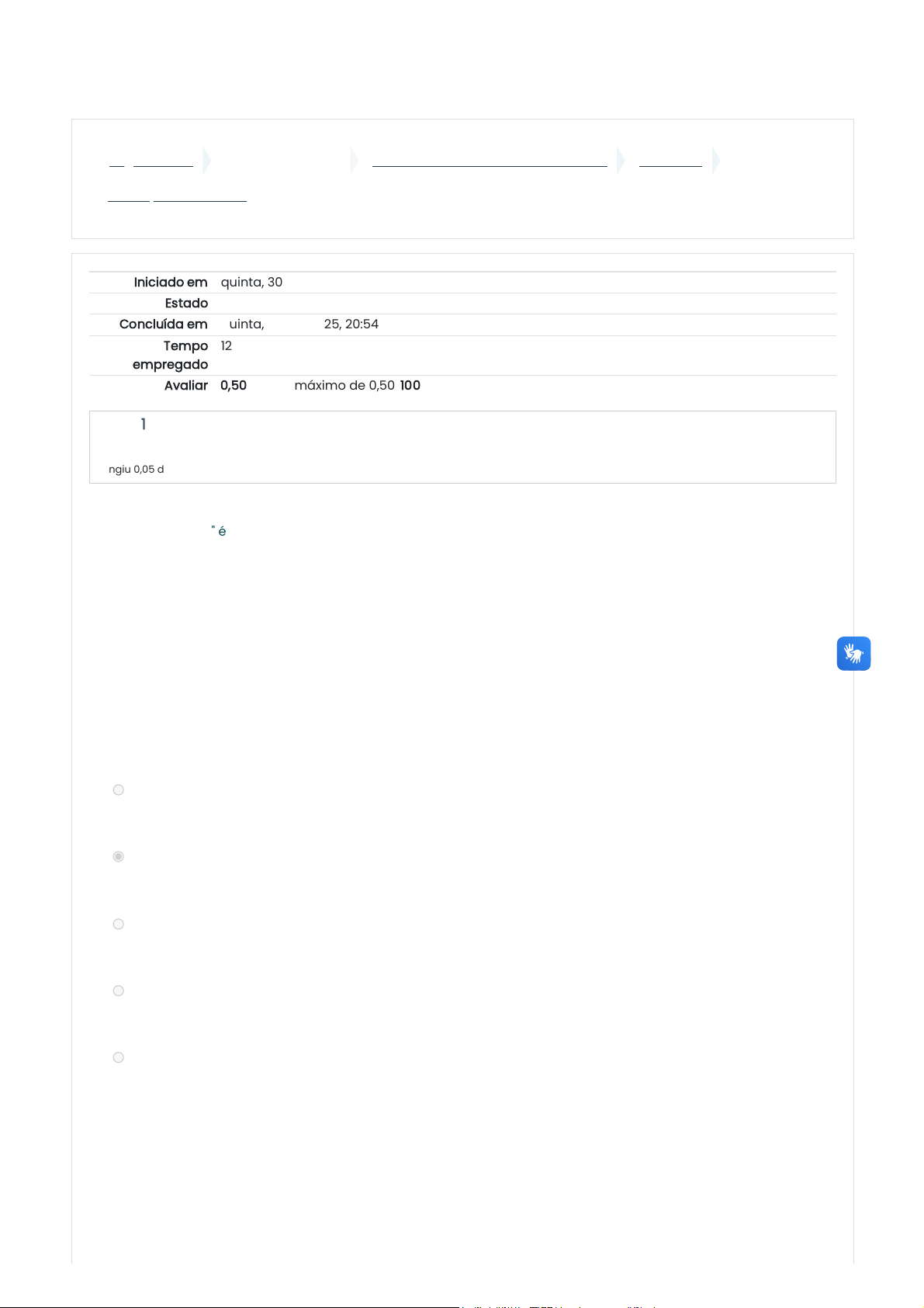 Página inicial Minhas disciplinas 2025/1 - AVICULTURA E SUINOCULTURA UNIDADE II Avaliação - Unidade II Iniciado em quinta, 30 jan 2025, 20:42 Estado Finalizada Concluída em quinta, 30 jan 2025, 20:54 Tempo empregado 12 minutos 26 segundos Avaliar 0,50 de um máximo de 0,50(100%) Questão 1 Completo Atingiu 0,05 de 0,05 O termo "oviduto" é utilizado no estudo da anatomia das aves para se referir ao sistema genital tubular completo da fêmea. O oviduto é responsável por várias funções essenciais relacionadas à reprodução, incluindo a formação e o transporte dos ovos. É uma estrutura complexa e crucial para o processo de reprodução das aves. Analise as sentenças e assinale verdadeiro (V) ou falso (F) para as características do istmo: ( ) Apresenta um baixo número de músculos lisos, sendo que seus filamentos desempenham a função de envolver o ovo durante o momento em que ele é liberado do ovário. ( ) Região espiralada desempenha o papel de secretar o albúmen. ( ) A porção final do trato digestivo corresponde ao rudimento do oviduto direito. ( ) A região menos espiralada é responsável pela deposição das fibras de queratina, que formam as membranas da casca. a. V, V, F, V. b. F, F, F, V. c. F, V, F, F. d. F, F, V, F. e. V, F, F, V. A resposta correta é: F, F, F, V. https://ambienteonline.uninga.br/ https://ambienteonline.uninga.br/course/view.php?id=31111 https://ambienteonline.uninga.br/course/view.php?id=31111§ion=3 https://ambienteonline.uninga.br/mod/quiz/view.php?id=868017 Questão 2 Completo Atingiu 0,05 de 0,05 Qual é a densidade máxima de aves por metro quadrado no sistema de criação em aviários com fileiras verticais multinível? a. 7 aves/m². b. 11 aves/m². c. 15 aves/m². d. 14 aves/m². e. 9 aves/m². A resposta correta é: 11 aves/m². Questão 3 Completo Atingiu 0,05 de 0,05 Qual é a primeira seção do oviduto das aves onde ocorre a produção da chalaza e a fertilização do óvulo? a. Magno. b. Útero. c. Infundíbulo. d. Istmo. e. Vagina. A resposta correta é: Infundíbulo. Questão 4 Completo Atingiu 0,05 de 0,05 Quais são as características físicas que devem ser observadas para avaliar a qualidade da clara do ovo de galinha? a. Cor amarela brilhante e sem sangue. b. Firmeza e uniformidade. c. Redondeza, elevação e simetria. d. Clareza, espessura e ausência de sangue ou manchas. e. Ausência de rachaduras ou manchas. A resposta correta é: Clareza, espessura e ausência de sangue ou manchas. Questão 5 Completo Atingiu 0,05 de 0,05 A qualidade física dos ovos é um fator crucial para atrair os consumidores e envolve diversos aspectos, os quais estão associados a três elementos principais: a clara, que constitui cerca de 60% do ovo; a gema, representando aproximadamente 30%; e a casca, correspondendo a cerca de 10% do ovo. Analise as sentenças e assinale verdadeiro (V) ou falso (F). ( ) A qualidade física dos ovos está relacionada à clara, à gema e à casca. ( ) A legislação brasileira estabelece padrões mínimos para ovos, classificados em categorias "A" e "B". ( ) Os ovos da categoria "B" são destinados ao consumo humano. ( ) A idade da galinha não afeta a qualidade dos ovos. a. F, F, V, F. b. V, V, F, F. c. F, V, F, V. d. V, F, V, F. e. V, V, F, V. A resposta correta é: V, V, F, F. Questão 6 Completo Atingiu 0,05 de 0,05 Qual é a função da clara (albumina) no ovo de galinha? a. Fornecer cálcio para a formação da casca. b. Proteger o conteúdo interno contra a entrada de microrganismos. c. Proteger o embrião contra choques mecânicos e variações de temperatura. d. Fornecer nutrientes para o desenvolvimento do embrião. e. Determinar a frescura do ovo. A resposta correta é: Fornecer nutrientes para o desenvolvimento do embrião. Questão 7 Completo Atingiu 0,05 de 0,05 Qual é a função do istmo no sistema reprodutivo tubular das aves? a. Secreção de fibras de queratina. b. Liberação do ovo. c. Desembocar na cloaca. d. Formação da casca do ovo. e. Produção de albúmen. A resposta correta é: Formação da casca do ovo. Questão 8 Completo Atingiu 0,05 de 0,05 Qual é a função do segmento denominado "magno" no oviduto das aves? a. Envolver o ovo no momento de sua liberação do ovário. b. Deposição de fibras de queratina para formação das membranas da casca. c. Conclusão da formação do ovo e produção da casca. d. Secreção do albúmen e. Liberação do ovo do ovário. A resposta correta é: Secreção do albúmen https://ambienteonline.uninga.br/mod/page/view.php?id=868031 Questão 9 Completo Atingiu 0,05 de 0,05 Qual hormônio é responsável pela estimulação da síntese de progesterona no folículo ovariano maduro e pela indução da ruptura folicular e liberação do óvulo? a. LH. b. GnRH. c. FSH. d. Prolactina. e. VIP. A resposta correta é: LH. Questão 10 Completo Atingiu 0,05 de 0,05 Qual é a estrutura do sistema reprodutivo tubular das aves, incluindo seus segmentos distintos? a. Ovário, magno, istmo, útero, vagina, cloaca. b. Ovário, infundíbulo, vagina, útero, cloaca. c. Ovário, oviduto, útero, cloaca. d. Ovário, infundíbulo, magno, istmo, útero, vagina. e. Ovário, infundíbulo, magno, útero, cloaca. A resposta correta é: Ovário, infundíbulo, magno, istmo, útero, vagina. Atividade anterior ◄ Slides Videoaula 03 Seguir para... Próxima atividade Videoaula 01 ► Manter contato UNINGÁ https://www.uninga.br Mobile : 0800 800 5009 Baixar o aplicativo móvel. https://ambienteonline.uninga.br/mod/resource/view.php?id=868016&forceview=1 https://ambienteonline.uninga.br/mod/page/view.php?id=868018&forceview=1 https://www.uninga.br/ tel:Mobile : 0800 800 5009 https://www.facebook.com/uninga.edu.br/ https://www.youtube.com/channel/UCFfrZpSpL4DflIFl78P2TSQ https://www.instagram.com/uningaoficial/?hl=pt https://api.whatsapp.com/send?phone=44%2099710-2250 https://download.moodle.org/mobile?version=2020061502.11&lang=pt_br&iosappid=633359593&androidappid=com.m