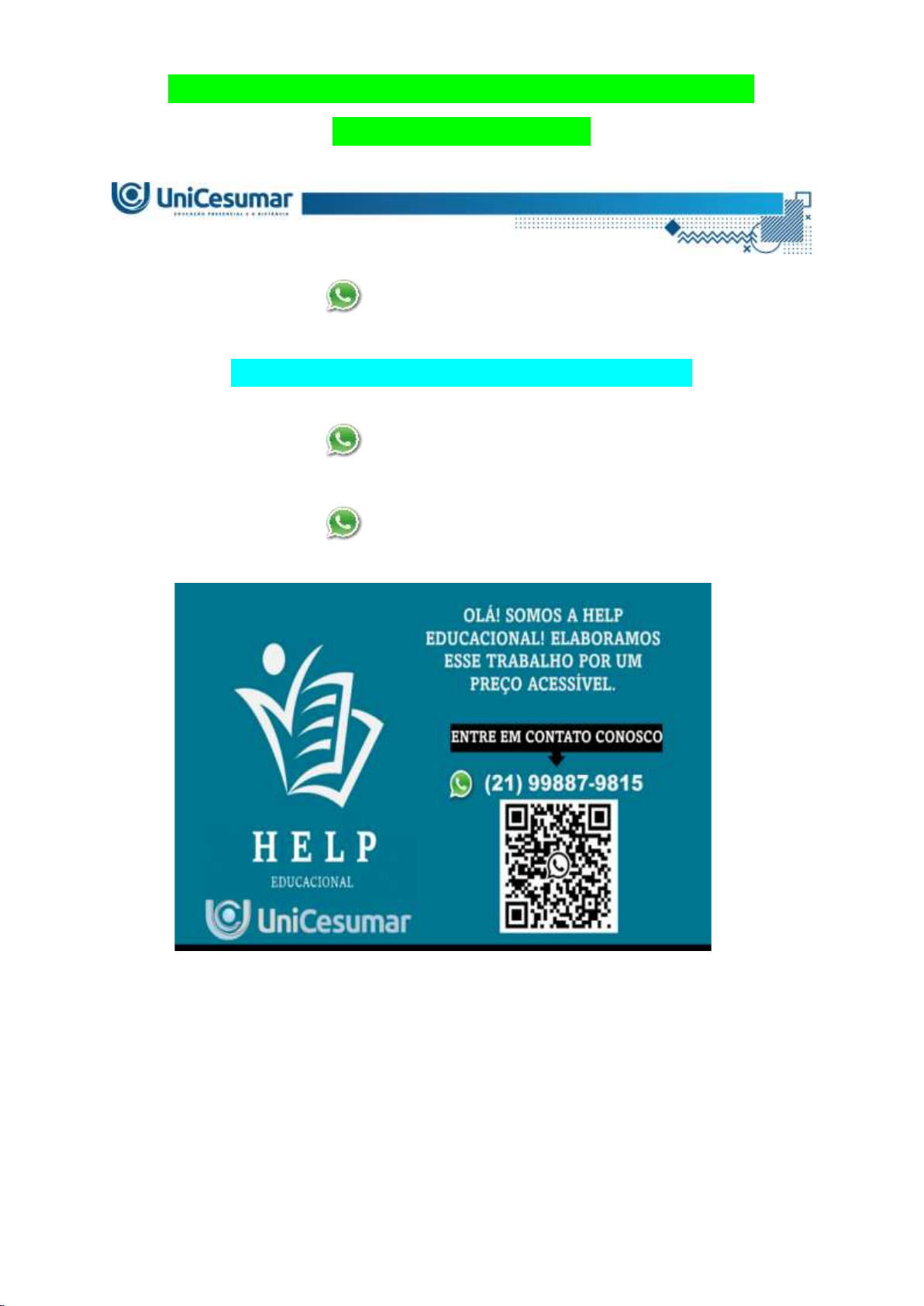 ATIVIDADE 1 - ENF - GESTÃO DO PROCESSO DE TRABALHO - 51_2026 (21) 99887-9815 ASSESSORIA NOS SEUS TRABALHOS (21) 99887-9815 (21) 99887-9815 Olá Estudante, A Atividade de Estudo 1 de Gestão do Processo de Trabalho tem por objetivo discutir sobre atuação do Enfermeiro em práticas colaborativas. Segundo Santos et.al (2020), a articulação entre diferentes saberes, práticas e ciências humanas contribuem para assistência à saúde efetiva, considerando que cada área profissional identifica e atende a necessidades distintas do mesmo ATIVIDADE 1 - ENF - GESTÃO DO PROCESSO DE TRABALHO - 51_2026 paciente ao atuar de forma singular, contudo nas práticas colaborativas estes cohecimentos se complementam com foco em alcançar objetivos comuns. SANTOS, G.L.A. Prática colaborativa interprofissional e assistência em enfermagem. Esc. Anna. Nery. 2020, v. 24, n.3. Disponível em: https://doi.org/10.1590/2177-9465- EAN-2019-0277. Acesso em: 05 de Fevereiro, 2026. Diante do exposto, é possível destacar o papel estratégico do Enfermeiro na integralidade do cuidado prestado ao paciente, tanto em contribur às demais áreas atuantes na equipe multiprofissional, bem como em ser o principal elo entre os diferentes membros da equipe. Haja vista a importância desta competência, em especial, alicerçada nos pilares de educação interprofissional, cuidado centrado no usuário e transdisciplinaridade no cuidado em saúde, CITE E JUSTIFIQUE três ações (uma ação para cada pilar mencionado) que podem ser adotadas pelo Supervisor de Enfermagem para engajamento do seu time de Enfermeiros para as práticas colaborativas. ORIENTAÇÕES IMPORTANTES: - Sua resposta deve ser redigida em formato de texto. - Assista ao vídeo explicativo disponibilizado no fórum da disciplina. - Faça a leitura do livro da disciplina, em especial sobre o tema abordado na atividade e assista às aulas conceituais. - Procure responder com suas próprias palavras, mas caso utilize alguma fonte externa, não se esqueça de citar as referências corretamente. - A resposta da Atividade de Estudo 1 deve ser digitada diretamente na caixa de texto dentro do ambiente da plataforma – não é necessário anexar arquivo ou formulário. Além disso, não é preciso incluir seu nome ou RA, pois o sistema já associará sua resposta ao seu usuário. - ATENÇÃO: ao clicar em "Finalizar", sua atividade será enviada e não poderá ser editada ou respondida novamente. - Caso tenha dúvidas sobre a atividade, envie uma mensagem no "Fale com o Mediador". 123451234456789 ATIVIDADE 1 - ENF - GESTÃO DO PROCESSO DE TRABALHO - 51_2026 OLÁ! SOMOS A HELP EDUCACIONAL! ELABORAMOS ESSE TRABALHO POR UM PREÇO ACESSÍVEL. ENTRE EM CONTATO CONOSCO (21) 99887-9815