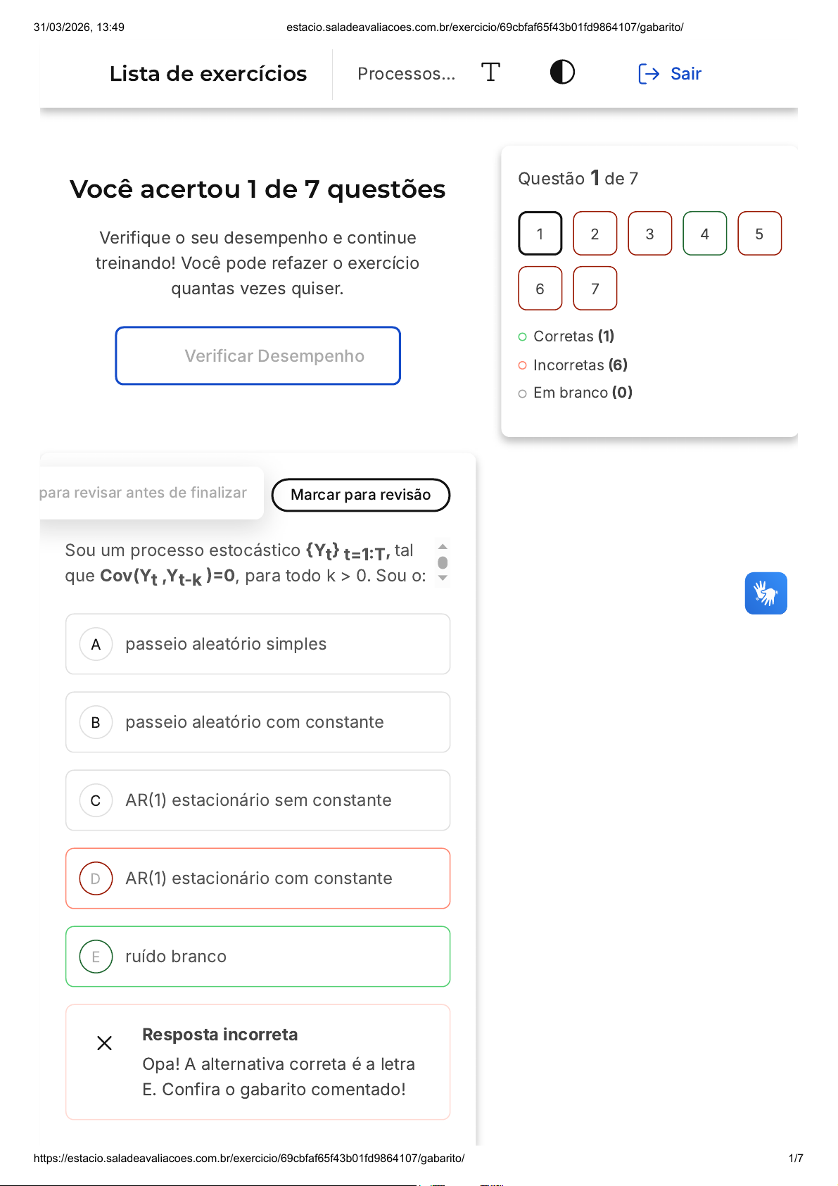Você acertou 1 de 7 questões