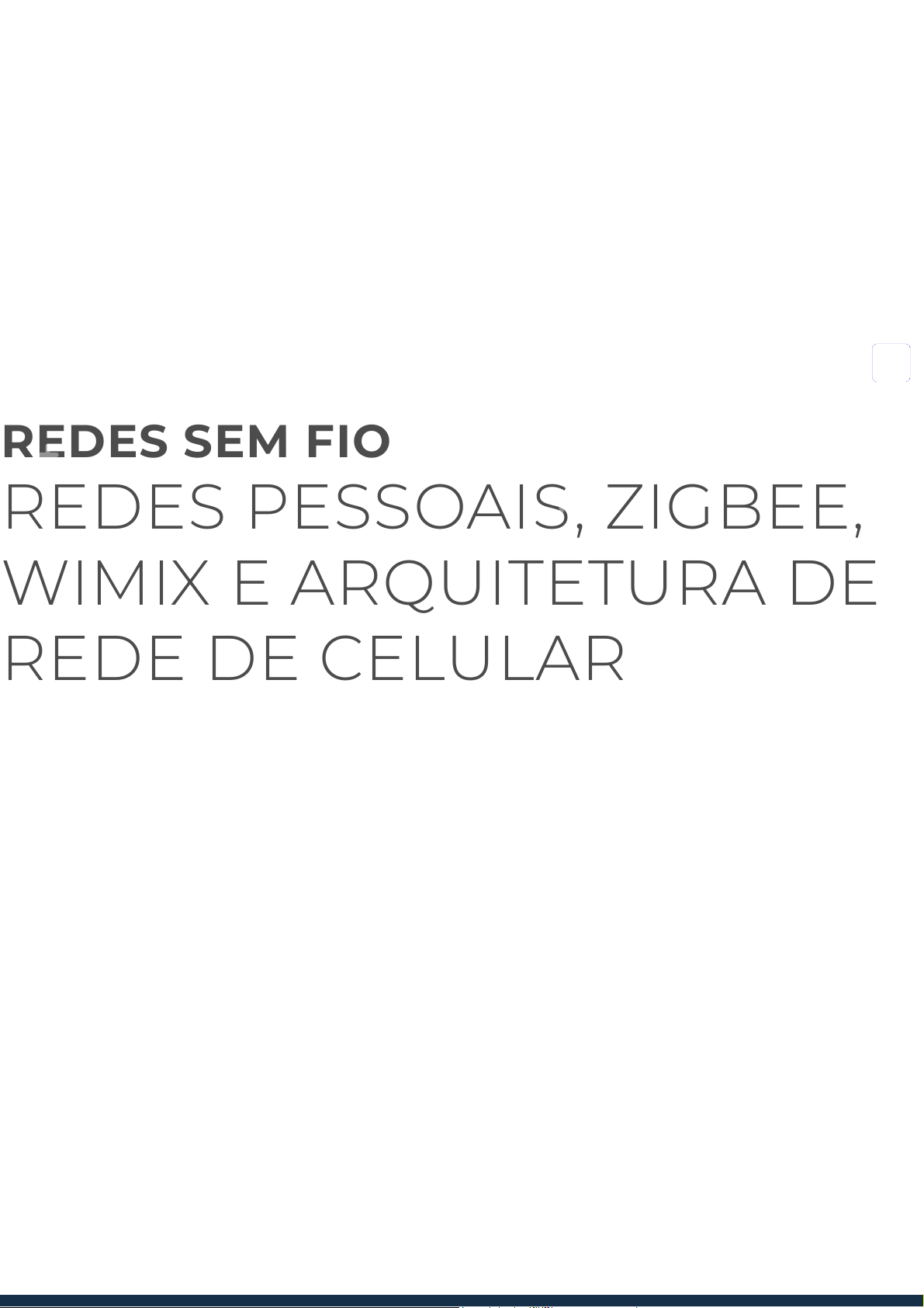 REDES SEM FIOREDES SEM FIO REDES PESSOAIS, ZIGBEE,REDES PESSOAIS, ZIGBEE, WIMIX E ARQUITETURA DEWIMIX E ARQUITETURA DE REDE DE CELULARREDE DE CELULAR Autor: Me. Ubiratan Roberte Cardoso Passos Revisor : Rogér io de Campos I N I C I A R introduçãoIntrodução Com a expansão das redes sem fio, diversos novos serviços específicos para redes de curta e longa distância surgem, e os principais representantes desses grupos são as tecnologias Bluetooth, ZigBee, WiMAX e também a telefonia celular. Ao longo do material, serão estudados conceitos relacionados a redes sem fio pessoais, tais como Bluetooth e ZigBee, redes sem fio metropolitanas, WiMAX e redes de telefonia celular 2g, 3g, 4g e 5g. Alguns detalhes relacionados à arquitetura, tecnologias utilizadas, protocolos e segurança nas redes Bluetooth, ZigBee, WiMAX e de telefonia celular serão o foco no decorrer do estudo. Entende-se que o conteúdo deste estudo é extenso e complexo, mas, com esforço e dedicação, o aprendizado será alcançado. Criado em 1994 pelo Special Iterest Group (formado pelas empresas Ericsson, IBM, Intel, Nokia e Toshiba), objetivando principalmente permitir a conexão sem fio entre dispositivos computacionais, o padrão Bluetooth – que recebeu esse nome em homenagem a Harald Blaatand II (940-981) – logo ganhou popularidade e passou a ser utilizado em redes LANs sem fio. Por ser um padrão muito útil, o Bluetooth acaba criando uma competição de mercado com o 802.11. O maior problema observado é a interferência elétrica existente entre cada um dos dois padrões. Independentemente dos revés, em 1999 o consórcio do Bluetooth emitiu uma especificação de 1500 páginas. Pouco tempo depois o IEEE adotou essa documentação, modificou-a e a inseriu no padrão 802.15. Arquitetura Bluetooth Todo sistema Bluetooth tem como unidade básica uma piconet . Uma piconet é um nó, denominado “mestre”, que pode conter até sete outros nós, denominados “escravos” que são ativos, e que podem estar situados a uma distância de até 10 metros do mestre. Existe a possibilidade da existência de diversos piconets em um mesmo ambiente (desde que grande o suficiente), sendo possível até mesmo que esses piconets se conectem através de um nó de ponto, como pode ser observado na Figura 3.1. Essa coleção de piconets interconectadas é denominada scatternet . BluetoothBluetooth Uma piconet pode, além dos sete escravos, manter até 255 nós estacionados (inativos) na rede. Esses nós são dispositivos comutados pelo mestre para um estado de baixa energia, o que ajuda na economia de energia. Quando um dispositivo está em estado de estacionado, ele não pode fazer nada além de responder a um sinal de ativação ou de baliza do mestre. A arquitetura baseada na estrutura mestre/escravo deve-se à facilidade que essa estrutura oferece para criação de chips Bluetooth, que podem ser desenvolvidos por menos de US$ 5.0. Contudo, os “escravos” são “não inteligentes”, realizando somente o que é determinado pelo “mestre”. Toda piconet possui em seu núcleo um sistema TDM centralizado. Ainda nesse núcleo, está um clock que é controlado pelo “mestre”. A partir dele, o “mestre” é capaz de definir qual dispositivo terá prioridade para se comunicar a cada slot de tempo. Não existe outra forma de comunicação que não seja entre mestre e escravo, e nunca haverá comunicação mestre para mestre ou escravo para escravo. Figura 3.1 - Scatternet Fonte: Tanenbaum e Wetherall (2003, p. 244). Aplicações do Bluetooth A maior parte dos protocolos de rede são capazes de fornecer somente canais entre aquelas entidades que se comunicam, ficando sob a responsabilidade do projetista da aplicação a descoberta da utilidade de cada um desses canais. A especificação Bluetooth, por sua vez, determina aplicações específicas para as quais são admitidas diferentes pilhas de protocolos. Essa abordagem, no entanto, gera o inconveniente da complexidade. Algumas aplicações do Bluetooth são: saibamaisSaiba mais “As principais diferenças entre o Bluetooth e outros tipos de redes são que as redes Bluetooth são formadas basicamente de dispositivos com baixa capacidade e pouca energia, as conexões entre dois dispositivos possuem diversos estados, com o objetivo de economizar energia e gerenciar a formação de outras piconets ; formação espontânea de piconets , possibilitando modificações constantes em sua topologia. Além disso, toda conexão entre nós passa por um procedimento de identificação e sincronização que necessita de uma temporização para ocorra efetivamente”. ACESSAR https://www.sistemamid.com/panel/uploads/biblioteca/1/619/640/641/3805.pdf A Pilha de Protocolos do Bluetooth Os protocolos do padrão Bluetooth são livremente agrupados em camadas. Essa estrutura em camadas em nada se assemelha ao modelo OSI, ao modelo TCP/IP, ao modelo IEEE 802 ou qualquer outro. A arquitetura básica de protocolos Bluetooth adaptada pelo comitê 802 pode ser observada na Figura 3.2. A camada mais inferior do protocolo é a camada de física de rádio. Essa camada é análoga à camada física dos modelos OSI e também IEEE 802. Essa camada é responsável pela transmissão e modulação dos sinais de rádio. A camada de banda base, por sua vez, é análoga à subcamada MAC, entretanto essa camada inclui também alguns elementos da camada física. Outra responsabilidade dessa camada está na definição da forma como o “mestre” irá controlar e agrupar os slots de tempo em quadros. Com um grupo de protocolos intrarrelacionados, cabe ao gerenciador de enlaces estabelecer canais lógicos entre os dispositivos, além de gerenciar a energia, cuidar da autenticação e garantir a qualidade do serviço. Ao L2CAP ou protocolo de adaptação de controle de enlace lógico, cabe realizar o isolamento entre as camadas superiores e os detalhes de transmissão. Acesso genérico: trata-se da base sob