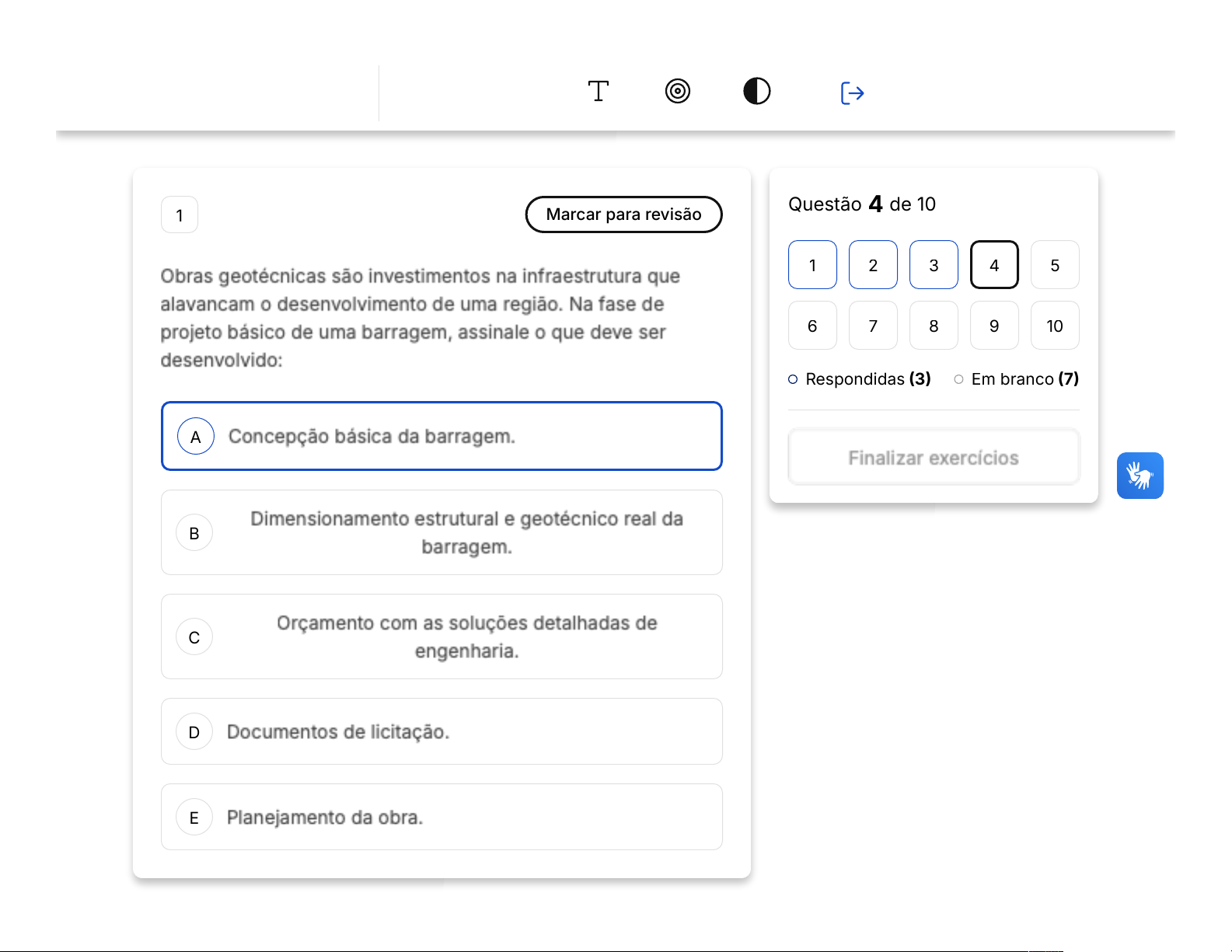 A B C D E 1 Marcar para revisão Questão 4 de 10 Respondidas (3) Em branco (7) 1 2 3 4 5 6 7 8 9 10 Lista de exercícios Obras… Sair e finalizar depois Firefox https://estacio.saladeavaliacoes.com.br/exercicio/69cee0cd5f43b01fd9dad255/ 1 of 11 02/04/26, 18:39 A B C D E 2 Marcar para revisão 3 Marcar para revisão Firefox https://estacio.saladeavaliacoes.com.br/exercicio/69cee0cd5f43b01fd9dad255/ 2 of 11 02/04/26, 18:39 A B C D E 4 Marcar para revisão Firefox https://estacio.saladeavaliacoes.com.br/exercicio/69cee0cd5f43b01fd9dad255/ 3 of 11 02/04/26, 18:39 A B C D E 5 Marcar para revisão Firefox https://estacio.saladeavaliacoes.com.br/exercicio/69cee0cd5f43b01fd9dad255/ 4 of 11 02/04/26, 18:39 A B C D E 6 Marcar para revisão Firefox https://estacio.saladeavaliacoes.com.br/exercicio/69cee0cd5f43b01fd9dad255/ 5 of 11 02/04/26, 18:39 A B C D E 7 Marcar para revisão Firefox https://estacio.saladeavaliacoes.com.br/exercicio/69cee0cd5f43b01fd9dad255/ 6 of 11 02/04/26, 18:39 A B C D E Firefox https://estacio.saladeavaliacoes.com.br/exercicio/69cee0cd5f43b01fd9dad255/ 7 of 11 02/04/26, 18:39 A B C D E 8 Marcar para revisão Firefox https://estacio.saladeavaliacoes.com.br/exercicio/69cee0cd5f43b01fd9dad255/ 8 of 11 02/04/26, 18:39 A B C D E 9 Marcar para revisão Firefox https://estacio.saladeavaliacoes.com.br/exercicio/69cee0cd5f43b01fd9dad255/ 9 of 11 02/04/26, 18:39 A B C D E 10 Marcar para revisão Firefox https://estacio.saladeavaliacoes.com.br/exercicio/69cee0cd5f43b01fd9dad255/ 10 of 11 02/04/26, 18:39 Firefox https://estacio.saladeavaliacoes.com.br/exercicio/69cee0cd5f43b01fd9dad255/ 11 of 11 02/04/26, 18:39
