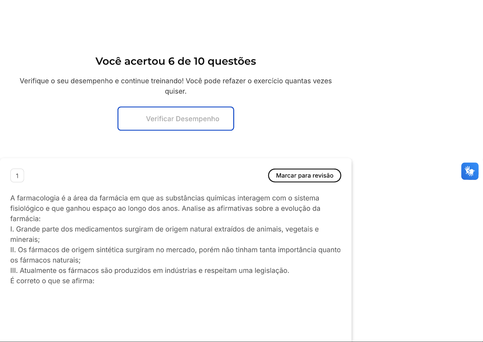 Você acertou 6 de 10 questões Verifique o seu desempenho e continue treinando! Você pode refazer exercício quantas vezes quiser. Verificar Desempenho 1 Marcar para revisão A farmacologia é a área da farmácia em que as substâncias químicas interagem com sistema fisiológico e que ganhou espaço ao longo dos anos. Analise as afirmativas sobre a evolução da farmácia: I. Grande parte dos medicamentos surgiram de origem natural extraídos de animais, vegetais e minerais; II. Os fármacos de origem sintética surgiram no mercado, porém não tinham tanta importância quanto os fármacos naturais; III. Atualmente os fármacos são produzidos em indústrias e respeitam uma legislação. É correto que se afirma:A e II, apenas. I, apenas. c III, apenas. D I e III, apenas. E I, e III, apenas. Lista de exercícios Introdução À Farmacologia T Sair Gabarito Comentado Questão 2 de 10 Grande parte dos medicamentos surgiram de origem natural extraídos de animais, vegetais e minerais e que atualmente os fármacos são produzidos em indústrias e respeitam uma legislação. Os fármacos de origem sintética, que surgiram no século tiveram grande 1 2 3 4 5 importância e proporcionaram aos pacientes uma possibilidade de cura para doenças ditas fatais e, frequentemente, de natureza infecciosa, como tuberculose, varíola e gripe espanhola. 6 7 8 9 10 Portanto, eles tiveram e ainda têm uma importância significativa na farmacologia. Corretas (6) Incorretas (4) Em branco (0)2 Marcar para revisão Medicamentos que apresentam formatos e cores diferentes, assim como a validade do produto, mas que apresentam a mesma eficácia e segurança, princípio ativo, concentração, via de administração e posologia iguais, são conhecidos como: A Medicamentos Similares. B Medicamentos Genéricos. c Medicamentos Inovadores. D Medicamentos de Referência. E Medicamentos Biossimilares. X Resposta incorreta Opa! A alternativa correta é a letra Confira gabarito comentado! Gabarito Comentado Os medicamentos similares são aqueles que contêm mesmo princípio ativo, a mesma concentração, a mesma forma farmacêutica, a mesma via de administração, a mesma posologia e a mesma indicação terapêutica dos medicamentos de referência. No entanto, eles podem diferir em aspectos como tamanho, forma do produto, prazo de validade, embalagem, rotulagem,excipientes e veículo. Esses medicamentos são sempre identificados pelo nome comercial (marca). É importante ressaltar que todos os medicamentos, independentemente de sua classificação, devem passar por testes de eficácia e segurança. No caso dos medicamentos tarjados, os estudos de biodisponibilidade relativa e bioequivalência são obrigatórios. 3 Marcar para revisão Todos os fármacos novos precisam ter seus princípios ativos registrados no DCB e no DCI, sobre esses órgãos analise as afirmativas: I. DCB (Denominação Comum Brasileira) surgiu em 1970, sendo responsável pela aprovação da denominação dos fármacos em âmbito nacional. II. DCB não sofre atualizações nacionais, que dificulta processo de alguns novos fármacos no mercado. III. DCI (Denominação Comum Internacional) é responsável pela denominação em âmbito internacional, uniformizando as informações. É correto que se afirma: A le II, apenas. I, apenas. c III, apenas.D le III, apenas. E I, e III, apenas. Resposta correta Parabéns, você selecionou a alternativa correta. Confira gabarito comentado! Gabarito Comentado DCB (Denominação Comum Brasileira) realmente surgiu em 1970 e é responsável pela aprovação da denominação dos fármacos em âmbito nacional. DCI (Denominação Comum Internacional) é responsável pela denominação em âmbito internacional, uniformizando as informações. DCB sofre constantes atualizações para ajudar a uniformizar as nomenclaturas dos fármacos, facilitando assim processo de inserção de novos fármacos no mercado. 4 Marcar para revisão Adaptado de: CONSULPLAN Órgão: Prefeitura de Venda Nova do Imigrante ES 2016. A Farmacologia, no seu sentido mais amplo, é a ciência que estuda as drogas (do grego, pharmakos, droga; elogos, estudo), ou seja, é a ciência que estuda como os medicamentos interagem com os organismos vivos. Essa ciência utiliza-se de conceitos e nomenclaturas próprias. Sobre alguns dos conceitos da Farmacologia, é INCORRETO afirmar que:Farmacocinética é a análise quantitativa dos processos de absorção e destino dos fármacos no organismo. Farmacoterapêutica é uso de fármacos ou medicamentos no diagnóstico, na prevenção e no tratamento de doenças. Farmacodinâmica é ocupada pelas reações adversas de fármacos e estuda a absorção e a distribuição dos medicamentos. Efeito indesejável é um efeito que não desejamos, mas é produzido pelo mesmo D medicamento. Frequentemente, são inevitáveis e pouco graves, mas, às vezes, podem ser muito graves. Toxicologia: a toxicologia analisa os efeitos das diversas substâncias químicas sobre os E organismos vivos, seja humano, seja animal, seja ambiente, observando seus danos e benefícios a curto e longo prazos. Resposta correta Parabéns, você selecionou a alternativa correta. Confira gabarito comentado! Gabarito Comentado A definição de Farmacodinâmica não é precisa. A Farmacodinâmica estuda efeito dos fármacos sobre organismo, ou seja, como os medicamentos agem no corpo, e não se ocupa das reações adversas dos fármacos nem estuda a absorção e a distribuição dos medicamentos.Esses aspectos são, na verdade, estudados pela Farmacocinética, que analisa caminho que medicamento faz no organismo, desde a sua absorção até a sua eliminação. 5 Marcar para revisão Adaptado de: FUNDEP (Gestão de Concursos) - Órgão: Prefeitura de Pará de Minas MG 2018. Sobre pesquisa clínica, analise as características a seguir. I. Ensaio randomizado e controlado. II. Participação no ensaio de 50 mil indivíduos, sexo masculino e feminino, de 18 a