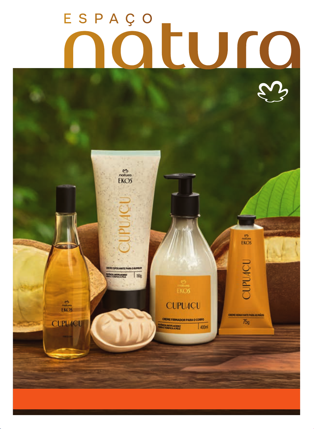 n a tu ra .c o m .b r c ic lo 0 5 /2 0 2 6 V 3 – C e n tro -O e s te , E s p írito S a n to , M in a s G e ra is e R io d e Ja n e iro natura. com.br ciclo 05 2026 E S P A Ç O nova linha natura ekos cupuaçu Potência antiflacidez para uma pele mais firme e tonificada. faz bem estar bem Neste Dia das Mães, deixe o amor florescer. Escolha presentes Natura. CAPA_EN_Ciclo05-26_V3.indd 1CAPA_EN_Ciclo05-26_V3.indd 1 26/12/25 10:0826/12/25 10:08 PDF X4 ISO 155337_EN_Ciclo05-26_V3_CAPA.pdf - 183 x 250.0 mm - pag. 1 BLACK YELLOW MAGENTA CYAN Agencia: | Cliente: Processado por arizona.flow em Fri Dec 26 10:14:03 2025 Giovanna Galvão lançamento natura ekos cupuaçu 2CAPA_EN_Ciclo05-26_V1V2V3.indd 22CAPA_EN_Ciclo05-26_V1V2V3.indd 2 22/12/25 20:1122/12/25 20:11 PDF X4 ISO 155337_EN_Ciclo05-26_V1V2V3_2CAPA.pdf - 183.0 x 250.0 mm - pag. 2 BLACK YELLOW MAGENTA CYAN Agencia: | Cliente: Processado por arizona.flow em Mon Dec 22 20:24:28 2025 Melhora visível de firmeza, estrias e celulite em 2 semanas1 A manteiga natural de cupuaçu da Amazônia é potência antiflacidez que deixa a pele mais firme, resistente e hidratada. AFIRMAM QUE DEIXA A PELE MAIS FIRME E TONIFICADA2 MAIS HIDRATAÇÃO FIRMADORA3 faz bem estar bem 1 . R e s u lt a d o s c o m p ro v a d o s a p ó s 1 5 d ia s d e u s o d o C re m e D e s o d o ra n t e H id ra t a n t e p a ra o C o rp o E k o s C u p u a ç u p a ra fi rm e z a /e s t ri a s p o r e s t u d o c lí n ic o e p a ra c e lu li t e p o r p e s q u is a c o m 1 2 0 c o n s u m id o ra s . 2 . E s t u d o r e a li z a d o c o m 1 2 0 c o n s u m id o re s a p ó s 1 4 d ia s d e u s o d o p ro d u t o . 3 . Q u a n d o c o m p a ra d o a u m h id ra t a n t e c o m u m . 2CAPA_EN_Ciclo05-26_V1V2V3.indd 32CAPA_EN_Ciclo05-26_V1V2V3.indd 3 22/12/25 20:1222/12/25 20:12 PDF X4 ISO 155337_EN_Ciclo05-26_V1V2V3_P003.pdf - 183.0 x 250.0 mm - pag. 3 BLACK YELLOW MAGENTA CYAN Agencia: | Cliente: Processado por arizona.flow em Mon Dec 22 20:24:08 2025 ESPAÇO NATURA É UMA PUBLICAÇÃO DA NATURA COSMÉTICOS S.A., COM SEDE NA AVENIDA ALEXANDRE COLARES, 1.188, CEP 05106-000, JAGUARA, SÃO PAULO – SP, BRASIL, EDITADA E PRODUZIDA PELA ARIZONA, COM PRÉ-IMPRESSÃO NA ARIZONA E IMPRESSÃO E DISTRIBUIÇÃO NA PLURAL EDITORA E GRÁFICA LTDA. DIRIGIDA A CONSULTORAS E CONSULTORES DE BELEZA, CONSUMIDORES E DEMAIS PÚBLICOS DE RELACIONAMENTO DA NATURA. OS VALORES DESTE MATERIAL SÃO APENAS INDICAÇÕES QUE OFERECEMOS ÀS CONSULTORAS E AOS CONSULTORES DE BELEZA NATURA, QUE SÃO ABSOLUTAMENTE LIVRES PARA REVENDER OS PRODUTOS PELOS VALORES QUE MELHOR LHES ATENDAM. AS CORES DOS PRODUTOS PODEM VARIAR NA IMPRESSÃO. ESCREVA PARA ESPACONATURA@NATURA.NET. Natura Cosméticos S.A. é a titular de todos os direitos autorais patrimoniais sobre todo o conteúdo da revista Espaço Natura. São vedadas sua reprodução por qualquer meio ou forma e sua divulgação em qualquer mídia ou meio sem autorização prévia, expressa e por escrito. A Natura, consciente das questões sociais e ambientais, utiliza na impressão deste material papéis certificados FSC® (Forest Stewardship Council). A Certificação FSC® é uma garantia de que a matéria-prima advém de uma floresta manejada de forma ecologicamente correta, socialmente justa e economicamente viável. Impresso na Plural Indústria Gráfica Ltda. – Certificada na Cadeia de Custódia – FSC®. Snac – Serviço Natura de Atendimento ao Consumidor Tel.: 0800-115566 www.natura.com.br Espaço Natura Bem-vindo(a) ao Veja tudo o que você encontra aqui 6 Dia das Mães Natura 42 Perfumaria 44 Perfumaria Feminina 70 Perfumaria Feminina e Masculina 72 Perfumaria Masculina 88 Desodorantes Corporais 90 Rosto e Maquiagem 92 Chronos Derma 100 Una 112 Faces 120 Cuidados diários 122 Ekos 136 Tododia 152 Lumina 162 Desodorantes 166 Erva Doce 168 Solar 170 Sève 172 Infantis 172 Mamãe e Bebê 176 Naturé 178 Crer Para Ver 180 Presentes M e c â n ic a p ro m o c io n a l É P ra P re s e n te : O v a lo r d e R $ 4 ,0 0 d a S a c o la d e P re s e n te M ín i c o m L a ç o é ú n ic o e v a le t a n to p a ra o c o n s u m id o r fi n a l q u a n to p a ra a s C o n s u lt o ra s d e B e le z a N a tu ra . V a le s o m e n te n a c o m p ra d e u m it e m d a r e v is ta E s p a ç o N a t u ra . E n q u a n to d u ra re m o s e s to q u e s . O v a lo r d e R $ 5 ,0 0 d a S a c o la d e P re s e n te P c o m L a ç o é ú n ic o e v a le t a n to p a ra o c o n s u m id o r fi n a l q u a n to p a ra a s C o n s u lt o ra s d e B e le z a N a tu ra . V a le s o m e n te n a c o m p ra d e u m it e m d a r e v is ta E s p a ç o N a t u ra . E n q u a n to d u ra re m o s e s to q u e s . Sacolas de presente Sacola de presente míni com laço C 15 x L 7 x A 17 cm (161146) 01 pt R$ 4,90 Sacola de presente P com laço C 22 x L 9 x A 25 cm (161148) 01 pt R$ 5,90 Sacola de presente M com laço C 35 x L 12 x A 32 cm (167994) 01 pt R$ 8,90 Sacola de presente G com laço C 44 x L 16 x A 38 cm (161145) 01 pt R$ 10,90 Ganhou Natura de presente e quer trocar? Acesse www.natura.com.br/ajuda-e-contato/ trocar-produto e veja como é fácil! 4 V1V2V3 SUMARIO_EN_Ciclo05-26_V1V2V3.indd 4SUMARIO_EN_Ciclo05-26_V1V2V3.indd 4 26/12/2025 12:3626/12/2025 12:36 PDF X4 ISO 155337_EN_Ciclo05-26_V1V2V3_P004.pdf - 183.0 x 250.0 mm - pag. 4 BLACK YELLOW MAGENTA CYAN Agencia: | Cliente: Processado por arizona.flow em Fri Dec 26 12:38:39 2025 Todos os produtos promocionados desta revista obedecem aos critérios: Regiões: Centro-Oeste, Espírito Santo, Minas Gerais e Rio de Janeiro. Validade: ciclo 05/2026 ou enquanto durarem os estoques. Você sabia? Diversos produtos da Natura possuem ingredientes da biodiversidade brasileira em suas fórmulas e foram desenvolvidos a partir de acesso ao Conhecimento Tradicional Associado. Saiba mais sobre essa parceria com as comunidades em www.natura. com.br/conhecimento-tradicional-associado As embalagens exclusivas de Dia das Mães transformam 