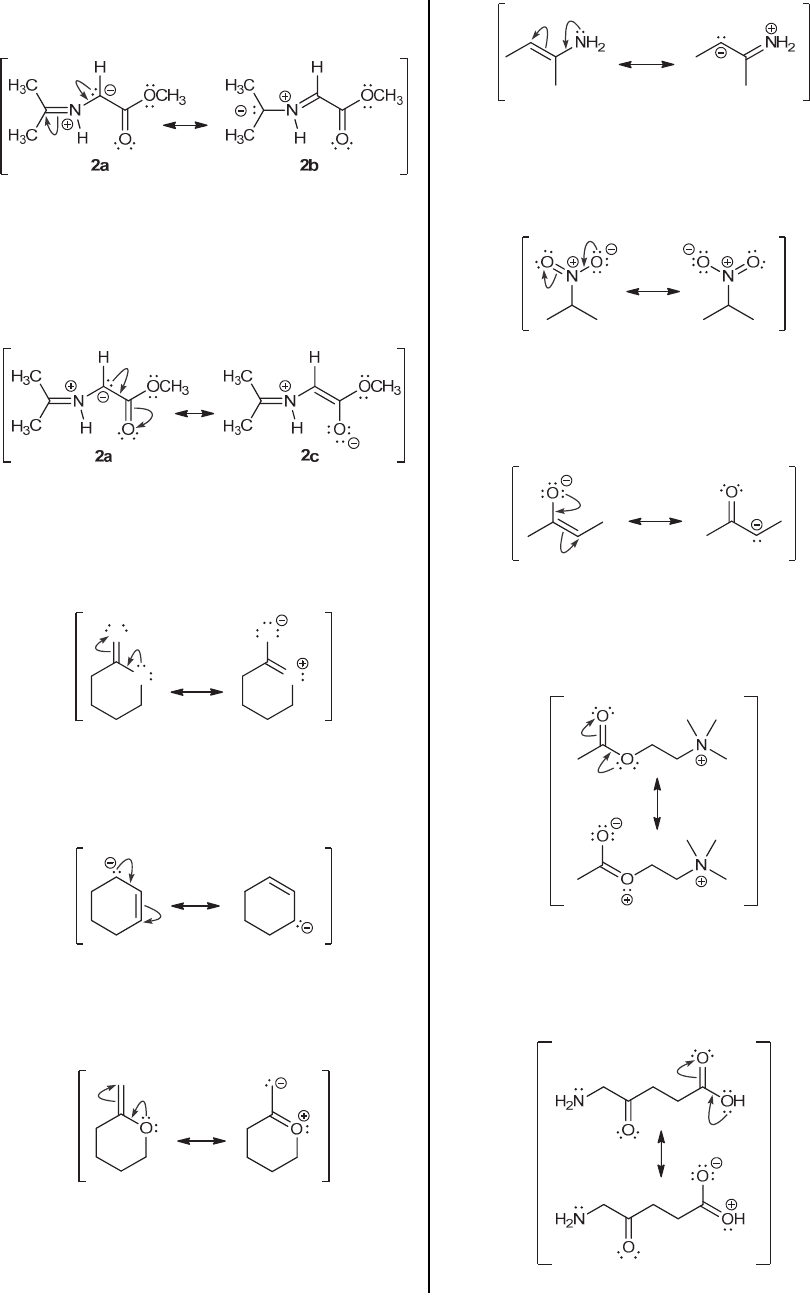 38 CHAPTER 2 the original carbon-nitrogen bond can become a lone pair on a different carbon atom. (b) Two curved arrows are required to convert resonance structure 2a to resonance structure 2c. One arrow shows that the lone pair on carbon can become a carbon-carbon bond while the other arrow shows that the electrons in the carbon-oxygen bond can become a third lone pair on oxygen. 2.18. (a) This pattern (lone pair next to a bond) has two curved arrows. The first curved arrow is drawn showing a lone pair becoming a bond, while the second curved arrow shows a bond becoming a lone pair: O O O O (b) This pattern (lone pair next to a bond) has two curved arrows. The first curved arrow is drawn showing a lone pair becoming a bond, while the second curved arrow shows a bond becoming a lone pair: (c) This pattern (lone pair next to a bond) has two curved arrows. The first curved arrow is drawn showing a lone pair becoming a bond, while the second curved arrow shows a bond becoming a lone pair: (d) This pattern (lone pair next to a bond) has two curved arrows. The first curved arrow is drawn showing a lone pair becoming a bond, while the second curved arrow shows a bond becoming a lone pair: (e) This pattern (lone pair next to a bond) has two curved arrows. The first curved arrow is drawn showing a lone pair becoming a bond, while the second curved arrow shows a bond becoming a lone pair: (f) This pattern (lone pair next to a bond) has two curved arrows. The first curved arrow is drawn showing a lone pair becoming a bond, while the second curved arrow shows a bond becoming a lone pair: (g) This pattern (lone pair next to a bond) has two curved arrows. The first curved arrow is drawn showing a lone pair becoming a bond, while the second curved arrow shows a bond becoming a lone pair: (h) This pattern (lone pair next to a bond) has two curved arrows. The first curved arrow is drawn showing a lone pair becoming a bond, while the second curved arrow shows a bond becoming a lone pair: www.MyEbookNiche.eCrater.com