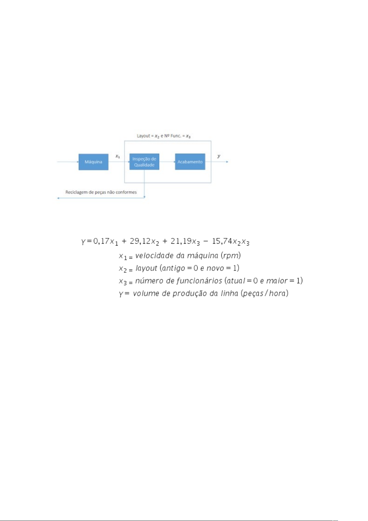 Uma fábrica de autopeças possuía duas linhas de produção idênticas para seu principal produto. Os gestores precisavam aumentar a capacidade de produção dessas linhas para atender a um novo contrato de fornecimento com uma grande montadora que passaria a vigorar em 6 meses. Eles precisavam decidir entre a alternativa de investir em duas máquinas novas, uma para cada linha de produção, ou se seria suficiente otimizar a produção fazendo um retrofitting das máquinas existentes, um novo layout para o fluxo da produção e um maior número de funcionários dedicados a cada linha. Eles também queriam ter maior flexibilidade em controlar a taxa de produção. Fonte: Elaborada pelo autor Os gestores pediram a uma jovem engenheira de produção, recém-contratada, para ajudá-los na análise dessas alternativas. Essa jovem engenheira, após alguns testes, desenvolveu o seguinte modelo: em que Com base no modelo descrito, responda às seguintes perguntas: 1) Quais foram as variáveis estudadas? R: Foram estudadas 3 (três) variáveis, Velocidade da máquina, layout e números de funcionários. 2) Qual o tipo de cada variável, quantitativa ou qualitativa? Se quantitativa, qual sua unidade de medida? Se qualitativa, que níveis ou classes podem assumir? R: X1, variável velocidade da máquina é uma variável quantitativa com unidade de medida de rotação por minutos ou (rpm); X2, layout é uma variável qualitativa de dois níveis ou duas classes (antiga e nova); X3, números de funcionários é uma variável quantitativa porem está como uma variável qualitativa de duas classes ou dois níveis por estabelecer um parâmetro de classificação igual ao layout, ondem sua variável é demonstrada pela quantidade atual ou uma quantidade maior a atual usada para operar as máquinas. 3) Como pode esse modelo de regressão linear múltipla ser usado para fazer predição de volume de produção de cada linha da fábrica? R: Esse modelo de regressão linear múltipla por ser utilizado para predição de volume de produção pois cada variável usada tem como saída a quantidade de peça feitas por hora, então ao fazer as variações em cada variável ela resultará em x peças feitas por hora e isso pode prever em qualquer umas das variáveis uma quantidade de peça feita devido a alteração realizada. 4) Reflita sobre situações similares em que você poderia aplicar essa mesma técnica (regressão linear múltipla) para gerar conhecimento a partir de dados. Descreva brevemente uma dessas situações que você pensou, identifique cada uma das variáveis de entrada e a variável resposta, descreva o tipo de cada uma delas (se quantitativa ou qualitativa) e forneça suas unidades de medida (se quantitativas) ou seus níveis ou classes (se qualitativas). R: Uma Lanchonete queria saber qual a quantidade máxima de Hotdogs ela poderia produzir em uma hora. Então o dono pediu para o gerente fazer esse cálculo pois ele tinha recebido uma proposta de vender X Hotdogs dia para uma empresa de fastfood, o gerente então começou a observar o tempo para cada ingrediente ficar pronto e o tempo que levava para passar de um processo para o outro. Após essa primeira analise ele identificou o processo e suas variáveis, sendo elas o X1 tempo para transformar a matéria prima em ingredientes do Hotdog (preparar e temperar os ingredientes usados no Hotdog) e usou a unidade de medida minutos por hora (m/h), o X2 tempo de preparo de cada ingrediente (assar e cozinhar os ingredientes do Hotdog) e também usou a unidade de medida minutos por hora (m/h), X3 Tempo de montagem e embalagem dos Hotdogs e aqui também usou a unidade de medida minutos por hora (m/h), tendo como resposta o Y a quantidade de Hotdogs produzidos por hora, tendo como unidade de medida o Hotdog por hora (H/h). Como todas as variáveis são quantitativas foi bem fácil de criar o algoritmo para prever se ele conseguiria ou não fabricar a quantidade de Hotdogs solicitadas ou se teria que fazer alguma alteração na quantidade de funcionários ou só mexer na forma de como era produzido o Hotdog. image1.png image2.png image3.png