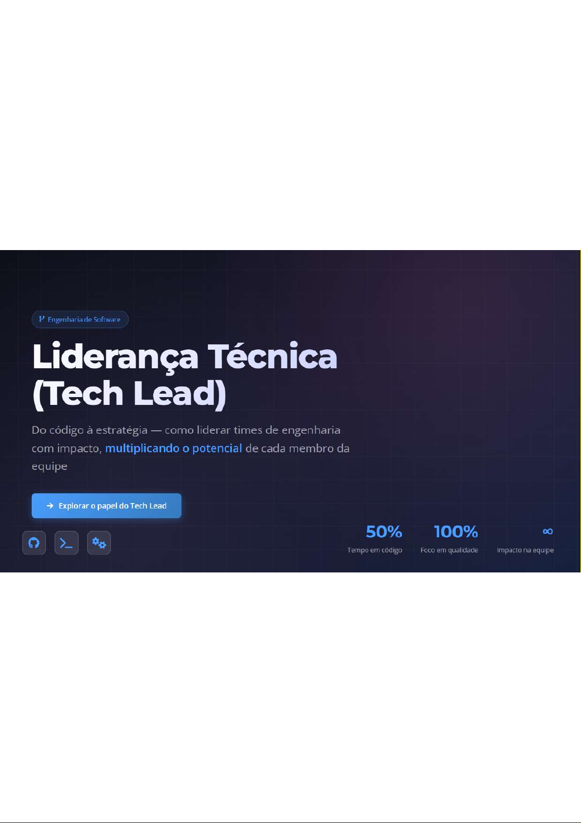 Engenharia de Software Liderança Técnica (Tech Lead) Do código à estratégia como liderar times de engenharia com impacto, multiplicando potencial de cada membro da equipe Explorar papel do Tech Lead 50% 100% Tempo em código Foco em qualidade Impacto na equipePapel do Tech Lead A ponte entre negócio, produto e engenharia definindo direção técnica e elevando time Ponte Estratégica Direção Técnica Conecta necessidades de negócio com Define arquitetura e garante qualidade do capacidades técnicas da equipe código Liderança Técnica Mantém-se hands-on estrategicamente Balanceia velocidade VS excelência Desenvolvimento do Time Alinhamento Estratégico Multiplica impacto do time Coaching, feedback e desbloqueio de Arquitetura alinhada às restrições reais impedimentos 30-50% 100% 8 Tempo em código Foco em qualidade Impacto na equipeCompetências Essenciais As 5 pilares que definem um Tech Lead de sucesso do técnico ao estratégico Técnica Liderança Comunicação Processo Produto Arquitetura de sistemas, design Influência sem autoridade Clareza, escuta ativa e Fluxo de métricas Foco em valor, priorização e revisão de código e formal, mentoria e facilitação do storytelling técnico para DORA e melhoria contínua trade-offs técnicos garantia de qualidade time stakeholders Arquitetura Design Mentoria Facilitação Clareza Escuta Storytelling DORA Métricas Fluxo Valor Priorização Trade-offs Code Review Influência Cada competência é essencial para 0 sucesso do time 5 Competências 100% Essenciale Desafios equilíbrio entre entrega de valor e gestão de riscos Responsabilidades Principais Desafios Comuns Definir Visão e Padrões Técnicos Balancear Velocidade vs Excelência Estabelecer arquitetura. diretrizes de código e práticas de desenvolvimento pressão por entregas rápidas com qualidade técnica Orquestrar Entregas e Dependências Escopo Mutável e Stakeholders Coordenar entregas. gerenciar dependências e remover bloquelos Gerenciar mudanças frequentes e alinhamento de expectativas Revisar Código e Práticas Pouco Tempo para Codar Garantir segurança e boas práticas de desenvolvimento Balancear tarefas administrativas com desenvolvimento Gerir Riscos e Dívida Técnica Saúde do Time e Burnout Identificar riscos, priorizar dividas técnicas e mitigar problemas Prevenir burnout e manter motivação da equipe Mentoria e Desenvolvimento do Time Escalar Arquitetura Coaching, feedback e desenvolvimento de habilidades da equipe Evoluir arquitetura conforme 0 produto cresce 1 Tech Lead deve equilibrar todas essas áreas para sucesso 5 Responsabilidades 5 DesafiosConclusões e Próximos Passos Transformando conhecimento em ação caminho para a liderança técnica efetiva Mensagens-chave Próximos Passos Call to Action Liderar é multiplicar impacto do time, não Definir visão técnica (6-12 meses) e acordos Alinhar objetivos e métricas do trimestre 1 apenas gerenciar tarefas de equipe Engajar stakeholders definir prioridades Clareza + Segurança psicológica + Mapear riscos e priorizar com 2 aprendizado contínuo produto Implementar melhorias continuas Meça que importa: qualidade, lead time, Estabelecer rituais: revisão técnica, tech radar, incident review valor entregue Vamos alinhar objetivos e métricas do trimestre? Iniciar Conversa Estabeleça uma base sólida para sucesso da sua equipe de engenharia A liderança técnica é uma jornada contínua de aprendizado e evolução 3 Pilares 5 Passos Impacto