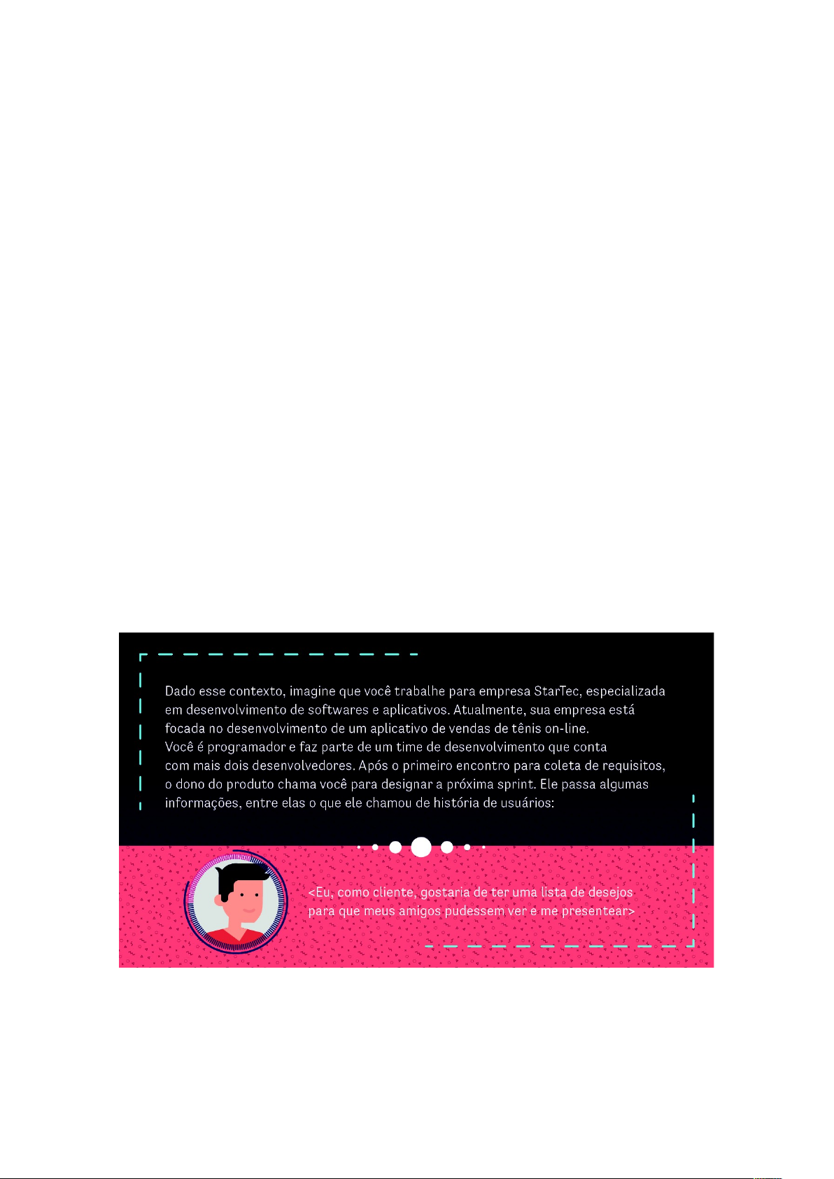 Apresentação O processo de desenvolvimento ágil de software por vezes é confuso, por não haver a existência de requisitos, ou seja, o projeto vai sendo desbravado conforme anda, sem que demais reuniões de planejamento ocorram. No entanto, isso está extremamente errado. Um dos maiores desafios na condução de um time Scrum é conseguir entender o que exatamente precisa ser feito, mas também como deve ser feito. Daí a importância do domínio dos requisitos. Nesta Unidade de Aprendizagem, você irá aprender como funciona o processo de coleta visual dos requisitos e também a identificar quais são as partes interessadas e quais são os objetivos dentro de um projeto Scrum. Por fim, você verá a forma de coletar requisitos para o backlog do produto. Bons estudos. Desafio Histórias de usuários são normalmente utilizadas para coleta de requisitos em projetos ágeis. Elas se caracterizam por serem frases em linguagem simples que delineiam o resultado desejado. Os stakeholders são chamados a participar e indicam suas necessidades, que são convertidas no formato de histórias de usuários. O dono do produto avalia as histórias de usuário e prioriza a ordem de implementação. Cada história de usuário deve ser implementada em, no máximo, uma sprint. A imagem a seguir possui audiodescrição. Para acessar o recurso, Diante do que foi lhe apresentado, responda: a) Você considera o que lhe foi passado uma história de usuário? b) Seria possível dividi-la em duas ou mais histórias de usuários? Demonstre. Escreva sua resposta no campo abaixo: Padrão de resposta esperado a) Avaliando com cuidado a necessidade do usuário apresentada pelo dono do produto como história do usuário, percebe-se estar diante de um épico, pois sua implementação irá envolver várias etapas: criar uma opção para incluir os produtos na lista, listar o que está cadastrado, identificar há quanto tempo o produto está cadastrado, verificar se algum produto da lista já foi comprado e possibilitar que os clientes visualizem a lista de desejo de seus amigos. b) Sendo um épico, é possível que se divida, facilitando o entendimento pela equipe e a execução durante uma sprint. A seguir, encontram-se sugestões de divisão: Infográfico Os requisitos que irão compor o backlog do produto são as necessidades ou os desejos dos stakeholders. O dono do produto avalia essa lista e decide o que deve ser priorizado. Para o Scrum, não importa a técnica usada para a definição e a priorização dos requisitos, mas é importante que os resultados gerem valor para os clientes e para a empresa. Para atender às demandas do projeto, o dono do produto deve garantir um bom backlog. DEEP é um acrônimo para Detalhado, Estimado, Emergente e Priorizado, que são as características para um bom backlog. Ele pode funcionar com um checklist para o dono do produto. Por sua vez, o acrônimo FDP indica as atividades Fatiar, Detalhar e Priorizar, e o dono do produto pode praticar para organizar os requisitos. Veja, neste Infográfico, detalhes desses acrônimos. A imagem a seguir possui audiodescrição. Para acessar o recurso, Conteúdo do Livro Na fase de coleta de requisitos, ocorre a investigação do que e de para quem serão desenvolvidas as funcionalidades do sistema. No Scrum, a coleta de requisitos não precisa ser realizada em um único encontro ou em uma única fase. Inicialmente, definem-se os requisitos principais e o dono do produto prioriza alguns desses requisitos para serem desenvolvidos em uma sprint. Isso termina definindo-se o backlog do produto. No capítulo Scrum e os requisitos, da obra Processos de desenvolvimento de software, você verá como coletar os requisitos de forma visual utilizando técnicas como árvores e floresta. Identificar os stakeholders e seus objetivos e influência é um processo que requer habilidades e técnicas, pois permite que você planeje formas de atender às diferentes necessidades desses grupos; portanto, você verá técnicas que vão auxiliá-lo a identificar os objetivos dos stakeholders. A qualidade dos requisitos que irão compor o backlog vai definir a qualidade do seu produto; então, é interessante conhecer estratégias e técnicas que podem ser empregadas nesse processo. Boa leitura. Os elementos gráficos deste capítulo possuem audiodescrição. Para acessar o recurso, Dica do Professor O backlog do produto é uma lista que contém todos os requisitos identificados nas histórias de usuários. O dono do produto irá acessar essa lista e priorizar os requisitos que serão inicialmente implementados. Perceba que as histórias são um ponto-chave para a coleta de requisitos, e, para que as histórias traduzam com clareza e simplicidade os requisitos, é necessário investir algum tempo avaliando suas qualidades. É possível avaliar as qualidades das histórias por meio das características do INVEST, que você conhecerá nesta Dica do Professor. Na prática No início de seu projeto, é importante ter foco em identificar todos os grupos que tenham interesses, papéis ou até mesmo necessidades relacionados ao seu produto de software, além da suas influências. Após, deve-se fazer uma espécie de mapeamento identificando como será a comunicação com cada stakeholder para mantê-los interessados e engajados no projeto. Esse engajamento dos stakeholders garantirá bom desempenho no decorrer do desenvolvimento do projeto. Veja, neste Na Prática, uma situação em que a forma de interação com os stakeholders foi estipulada conforme seu papel ou sua capacidade de influência. A imagem a seguir possui audiodescrição. Para acessar o recurso, image1.jpeg image2.jpeg image3.jpeg