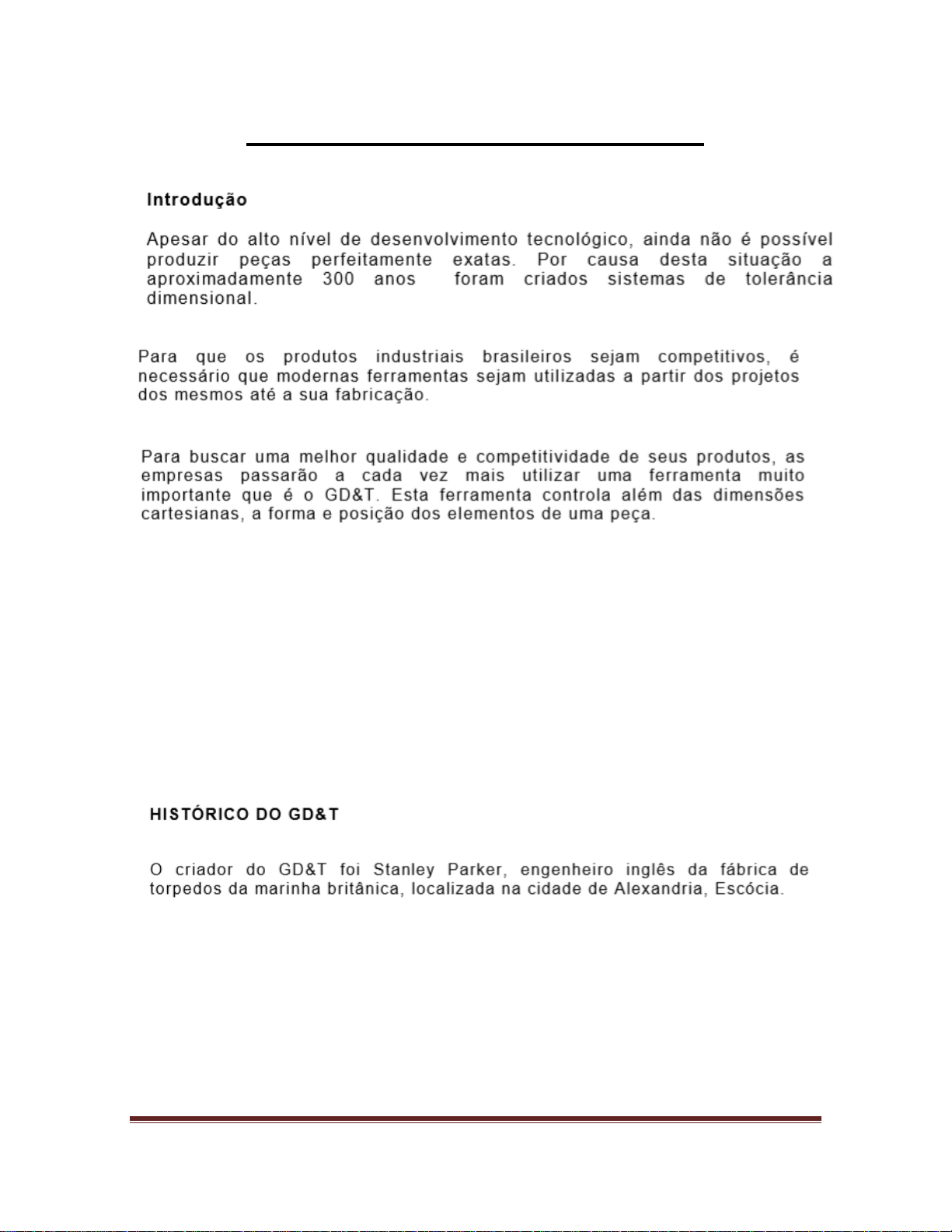 Tolerancia Geometrica resumo_2.docx Página 1 GD&T – Tolerância Geométrica Definições GD&T: • Geometric Dimensioning and Tolerancing • Dimensionamento Geométrico e Toleranciamento • Dimensionamento e Tolerância Geométrica • GD&T é uma linguagem matemática precisa que pode ser usada para descrever o tamanho, forma, orientação e localização de elementos. Tolerancia Geometrica resumo_2.docx Página 2 Tolerancia Geometrica resumo_2.docx Página 3 • Tolerância de forma Tolerancia Geometrica resumo_2.docx Página 4 Tolerancia Geometrica resumo_2.docx Página 5 Tolerancia Geometrica resumo_2.docx Página 6 Tolerancia Geometrica resumo_2.docx Página 7 Tolerancia Geometrica resumo_2.docx Página 8 Tolerância de Orientação Tolerancia Geometrica resumo_2.docx Página 9 Tolerâncias de Posição: Tolerancia Geometrica resumo_2.docx Página 10