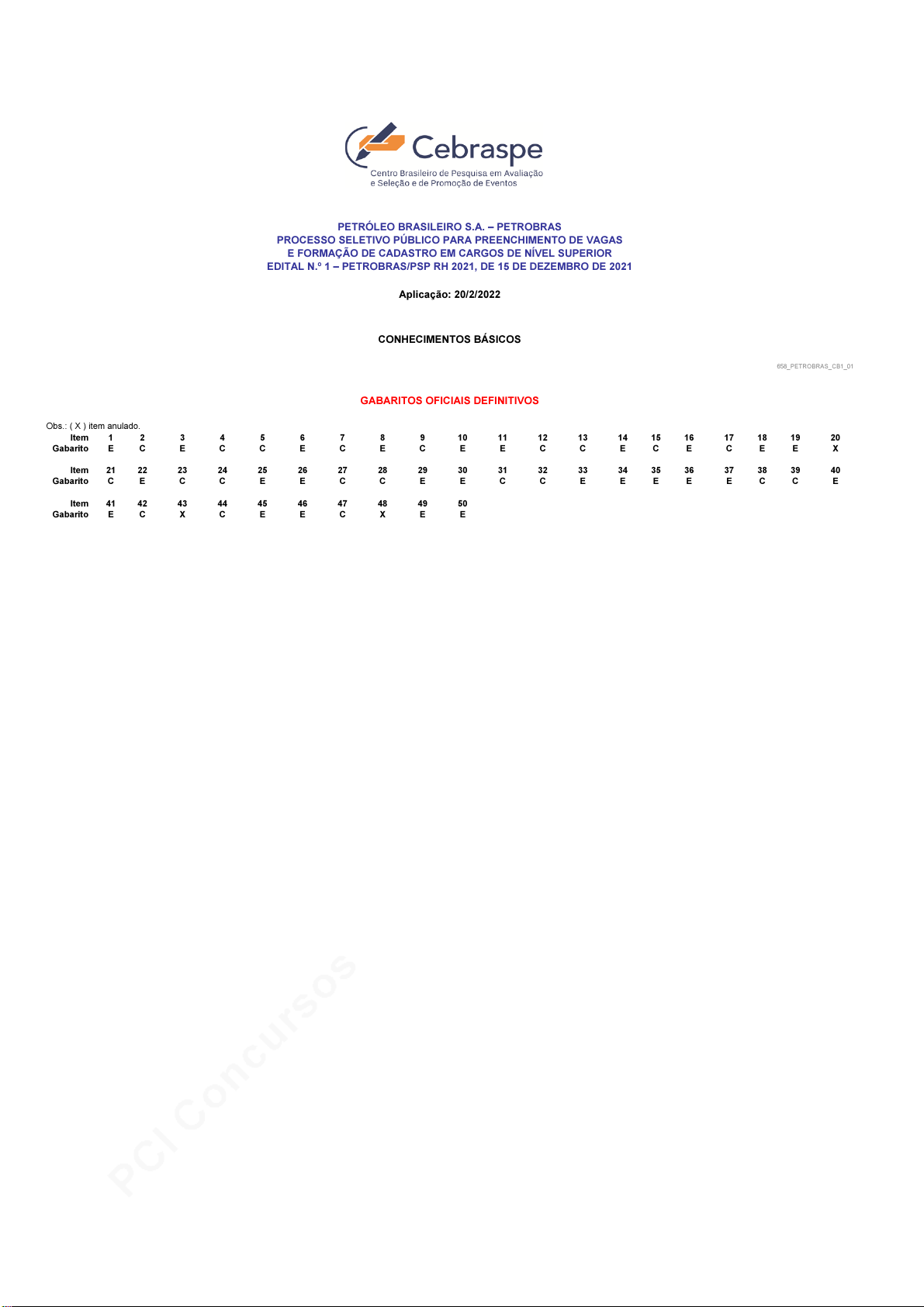 pcimarkpci MDAwMDowMDAwOjAwMDA6MDAwMDowMDAwOmZmZmY6YzcxMzpmOTZm:TW9uLCAwNiBBcHIgMjAyNiAyMjo1ODoxNyAtMDMwMA== www.pciconcursos.com.br PETRÓLEO BRASILEIRO S.A. – PETROBRAS PROCESSO SELETIVO PÚBLICO PARA PREENCHIMENTO DE VAGAS E FORMAÇÃO DE CADASTRO EM CARGOS DE NÍVEL SUPERIOR EDITAL N.º 1 – PETROBRAS/PSP RH 2021, DE 15 DE DEZEMBRO DE 2021 Aplicação: 20/2/2022 1 2 3 4 5 6 7 8 9 10 11 12 13 14 15 16 17 18 19 20 E C E C C E C E C E E C C E C E C E E X 21 22 23 24 25 26 27 28 29 30 31 32 33 34 35 36 37 38 39 40 C E C C E E C C E E C C E E E E E C C E 41 42 43 44 45 46 47 48 49 50 0 0 0 0 0 0 0 0 0 0 E C X C E E C X E E 0 0 0 0 0 0 0 0 0 0 0 0 0 0 0 0 0 0 0 0 0 0 0 0 0 0 0 0 0 0 0 0 0 0 0 0 0 0 0 0 0 0 0 0 0 0 0 0 0 0 0 0 0 0 0 0 0 0 0 0 0 0 0 0 0 0 0 0 0 0 0 0 0 0 0 0 0 0 0 0 0 0 0 0 0 0 0 0 0 0 0 0 0 0 0 0 0 0 0 0 0 0 0 0 0 0 0 0 0 0 0 0 0 0 0 0 0 0 0 0 0 0 0 0 0 0 0 0 0 0 0 0 0 0 0 0 0 0 0 0 0 0 0 0 0 0 0 0 0 0 0 0 0 0 0 0 0 0 0 0 0 0 0 0 0 0 0 0 0 0 0 0 0 0 0 0 0 0 0 0 0 0 0 0 0 0 0 0 0 0 0 0 0 0 0 0 0 0 0 0 0 0 0 0 0 0 0 0 0 0 0 0 0 0 0 0 0 0 0 0 0 0 0 0 0 0 0 0 0 0 0 0 0 0 0 0 0 0 0 0 0 0 0 0 0 0 0 0 0 0 0 0 0 0 0 0 0 0 0 0 0 0 0 0 0 0 0 0 0 0 0 0 0 0 0 0 0 0 0 0 0 0 0 0 0 0 0 0 0 0 0 0 0 0 0 0 0 0 0 0 0 0 0 0 0 0 0 0 0 0 0 0 0 0 0 0 0 0 0 0 0 0 0 0 0 0 0 0 0 0 658_PETROBRAS_CB1_01 Item Gabarito GABARITOS OFICIAIS DEFINITIVOS 0 CONHECIMENTOS BÁSICOS Item 0 Obs.: ( X ) item anulado. Item Gabarito Gabarito pcimarkpci MDAwMDowMDAwOjAwMDA6MDAwMDowMDAwOmZmZmY6YzcxMzpmOTZm:TW9uLCAwNiBBcHIgMjAyNiAyMjo1ODoxNyAtMDMwMA== www.pciconcursos.com.br 51 52 53 54 55 56 57 58 59 60 61 62 63 64 65 66 67 68 69 70 E C C E C E C C X E E C C E E E C C E E 71 72 73 74 75 76 77 78 79 80 81 82 83 84 85 86 87 88 89 90 C C E E X E C E E X C E C E C C E E E C 91 92 93 94 95 96 97 98 99 100 101 102 103 104 105 106 107 108 109 110 E C E X C E C E C C E C E C E C E E C C 111 112 113 114 115 116 117 118 119 120 0 0 0 0 0 0 0 0 0 0 E C E C E C E C C E 0 0 0 0 0 0 0 0 0 0 0 0 0 0 0 0 0 0 0 0 0 0 0 0 0 0 0 0 0 0 0 0 0 0 0 0 0 0 0 0 0 0 0 0 0 0 0 0 0 0 0 0 0 0 0 0 0 0 0 0 0 0 0 0 0 0 0 0 0 0 0 0 0 0 0 0 0 0 0 0 0 0 0 0 0 0 0 0 0 0 0 0 0 0 0 0 0 0 0 0 0 0 0 0 0 0 0 0 0 0 0 0 0 0 0 0 0 0 0 0 0 0 0 0 0 0 0 0 0 0 0 0 0 0 0 0 0 0 0 0 0 0 0 0 0 0 0 0 0 0 0 0 0 0 0 0 0 0 0 0 0 0 0 0 0 0 0 0 0 0 0 0 0 0 0 0 0 0 0 0 0 0 0 0 0 0 0 0 0 0 0 0 0 0 0 0 0 0 0 0 0 0 0 0 0 0 0 0 0 0 0 0 0 0 0 0 0 0 0 0 0 0 0 0 0 0 0 0 0 0 0 0 0 0 0 0 0 0 0 0 0 0 0 0 0 0 0 0 0 0 0 0 0 0 0 0 0 0 0 0 0 0 0 0 0 0 0 0 0 0 0 0 0 0 0 0 0 0 0 0 0 0 0 0 0 0 0 0 0 0 0 0 0 0 0 0 0 0 0 0 0 0 0 0 0 0 0 0 0 0 0 0 0 0 0 0 0 0 0 0 0 0 0 0 0 0 0 0 0 0 0 0 0 0 0 0 0 0 0 0 0 0 0 0 0 0 0 0 0 0 0 0 0 0 0 0 0 0 0 0 0 0 0 0 0 0 0 0 0 0 0 0 0 0 0 0 0 0 0 0 0 0 0 0 0 0 0 0 0 0 0 0 0 0 0 0 0 0 0 0 0 0 0 0 0 0 0 0 0 0 Gabarito Item Obs.: ( X ) item anulado. GABARITOS OFICIAIS DEFINITIVOS 0 0 PETRÓLEO BRASILEIRO S.A. – PETROBRAS PROCESSO SELETIVO PÚBLICO PARA PREENCHIMENTO DE VAGAS E FORMAÇÃO DE CADASTRO EM CARGOS DE NÍVEL SUPERIOR EDITAL N.º 1 – PETROBRAS/PSP RH 2021, DE 15 DE DEZEMBRO DE 2021 Aplicação: 20/2/2022 658_PETROBRAS_001_01 Item ÊNFASE 1: ADMINISTRAÇÃO Gabarito Item Gabarito Item Gabarito pcimarkpci MDAwMDowMDAwOjAwMDA6MDAwMDowMDAwOmZmZmY6YzcxMzpmOTZm:TW9uLCAwNiBBcHIgMjAyNiAyMjo1ODoxNyAtMDMwMA== www.pciconcursos.com.br PETRÓLEO BRASILEIRO S.A. – PETROBRAS PROCESSO SELETIVO PÚBLICO PARA PREENCHIMENTO DE VAGAS E FORMAÇÃO DE CADASTRO EM CARGOS DE NÍVEL SUPERIOR EDITAL N.º 1 – PETROBRAS/PSP RH 2021, DE 15 DE DEZEMBRO DE 2021 Aplicação: 20/2/2022 51 52 53 54 55 56 57 58 59 60 61 62 63 64 65 66 67 68 69 70 C C C E E C C C E E C E C C E E E C C E 71 72 73 74 75 76 77 78 79 80 81 82 83 84 85 86 87 88 89 90 C E C C X E E C C C E C E E X E C E E C 91 92 93 94 95 96 97 98 99 100 101 102 103 104 105 106 107 108 109 110 E C C C E E E C E C X C E C E E E C C E 111 112 113 114 115 116 117 118 119 120 0 0 0 0 0 0 0 0 0 0 C E E C E E C C E E 0 0 0 0 0 0 0 0 0 0 0 0 0 0 0 0 0 0 0 0 0 0 0 0 0 0 0 0 0 0 0 0 0 0 0 0 0 0 0 0 0 0 0 0 0 0 0 0 0 0 0 0 0 0 0 0 0 0 0 0 0 0 0 0 0 0 0 0 0 0 0 0 0 0 0 0 0 0 0 0 0 0 0 0 0 0 0 0 0 0 0 0 0 0 0 0 0 0 0 0 0 0 0 0 0 0 0 0 0 0 0 0 0 0 0 0 0 0 0 0 0 0 0 0 0 0 0 0 0 0 0 0 0 0 0 0 0 0 0 0 0 0 0 0 0 0 0 0 0 0 0 0 0 0 0 0 0 0 0 0 0 0 0 0 0 0 0 0 0 0 0 0 0 0 0 0 0 0 0 0 0 0 0 0 0 0 0 0 0 0 0 0 0 0 0 0 0 0 0 0 0 0 0 0 0 0 0 0 0 0 0 0 0 0 0 0 0 0 0 0 0 0 0 0 0 0 0 0 0 0 0 0 0 0 0 0 0 0 0 0 0 0 0 0 0 0 0 0 0 0 0 0 0 0 0 0 0 0 0 0 0 0 0 0 0 0 0 0 0 0 0 0 0 0 0 0 0 0 0 0 0 0 0 0 0 0 0 0 0 0 0 0 0 0 0 0 0 0 0 0 0 0 0 0 0 0 0 0 0 0 0 0 0 0 0 0 0 0 0 0 0 0 0 0 0 0 0 0 0 0 0 0 0 0 0 0 0 0 0 0 0 0 0 0 0 0 0 0 0 0 0 0 0 0 0 0 0 0 0 0 0 0 0 0 0 0 0 0 0 0 0 0 0 0 0 0 0 0 0 0 0 0 0 0 0 0 0 0 0 0 0 0 0 0 0 0 0 0 0 0 0 0 0 0 0 0 0 0 0 0 ÊNFASE 2: ANÁLISE DE COMERCIALIZAÇÃO E LOGÍSTICA – COMÉRCIO E SUPRIMENTO GABARITOS OFICIAIS DEFINITIVOS 658_PETROBRAS_002_01 0 Obs.: ( X ) item anulado. Item 0 Gabarito Item Item Gabarito Item Gabarito Gabarito pcimarkpci MDAwMDowMDAwOjAwMDA6MDAwMDowMDAwOmZmZmY6YzcxMzpmOTZm:TW9uLCAwNiBBcHIgMjAyNiAyMjo1ODoxNyAtMDMwMA== www.pciconcursos.com.br PETRÓLEO BRASILEIRO S.A. – PETROBRAS PROCESSO SELETIVO PÚBLICO PARA PREENCHIMENTO DE VAGAS E FORMAÇÃO DE CADASTRO EM CARGOS DE NÍVEL SUPERIOR EDITAL N.º 1 – PETROBRAS/PSP RH 2021, DE 15 DE DEZEMBRO DE 2021 Aplicação: 20/2/2022 51 52 53 54 55 56 57 58 59 60 61 62 63 64 65 66 67 68 69 70 C C E C E C C E C C E E C E C C C C E E 71 72 73 74 75 76 77 78 79 80 81 82 83 84 85 86 87 88 89 90 E E E C C C C C E C E C C E E C E C C E 91 92 93 94 95 96 97 98 99 100 101 102 103 104 105 106 107 108 109 110 E C C E E C C C C E E C C C C E E X E C 111 112 113 114 115 116 117 118 119 120 0 0 0 0 0 0 0 0 0 0 E E C E C E C E E C 0 0 0 0 0 0 0 0 0 0 0 0 0 0 0 0 0 0 0 0 0 0 0 0 0 0 0 0 0 0 0 0 0 0 0 0 0 0 0 0 0 0 0 0 0 0 0 0 0 0 0 0 0 0 0 0 0 0 0 0 0 0 0 0 0 0 0 0 0 0 0 0 0 0 0 0 0 0 0 0 0 0 0 0 0 0 0 0 0 0 0 0 0 0 0 0 0 0 0 0 0 0 0 0 0 0 0 0 0 0 0 0 0 0 0 0 0 0 0 0 0 0 0 0