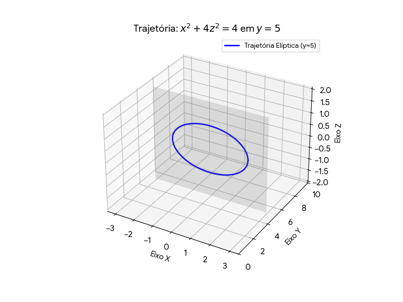 Trajetória: + 4z² = Trajetória Eliptica (y=5) + 2.0 1.5 1.0 0.5 0.0 Eixo Z -0.5 -1.0 -1.5 -2.0 10 8 6 -3 - -2 -1 4 EIXO 0 X 1 2 2 3