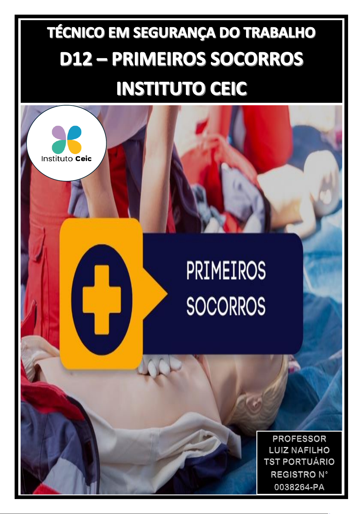 PRIMEIROS SOCORROS – D12 1. 1 - Avaliação Inicial da Vítima A análise inicial de uma vítima é um procedimento essencial para garantir a segurança do socorrista e da própria pessoa envolvida, além de identificar rapidamente as condições que necessitam de atendimento imediato. No curso Técnico em Segurança do Trabalho, esse conhecimento é fundamental para que os profissionais possam agir com eficiência em emergências, minimizando os riscos e promovendo a melhor resposta possível até a chegada de um atendimento especializado. 1. Segurança no Local do Acidente Antes de qualquer intervenção, é essencial verificar a segurança do local. O socorrista deve se certificar de que não há riscos iminentes, como incêndios, fios elétricos expostos ou substâncias tóxicas, que possam colocar sua vida ou a da vítima em perigo. Esse cuidado inicial previne que outras pessoas sejam prejudicadas. 2. Verificação da Consciência O próximo passo é verificar se a vítima está consciente. Para isso, o socorrista pode falar com ela, fazer perguntas simples e tentar obter uma resposta. Caso a vítima esteja inconsciente, medidas adicionais deverão ser tomadas. Se a pessoa estiver consciente, é possível perguntar o que aconteceu, se sente dor ou onde está ferida. 3. Atendimento das Funções Vitais A prioridade em emergências é manter ou restabelecer as funções vitais, ou seja, verificar a respiração e a circulação da vítima. Para isso, é necessário: • Verificar a Respiração: O socorrista deve observar o movimento do tórax, ouvir sons respiratórios e sentir a respiração. Caso a vítima não esteja respirando adequadamente, pode ser necessário realizar a reanimação cardiorrespiratória (RCP). • Pulso e Circulação: Verificar o pulso da vítima também é essencial. O socorrista deve apalpar a região do pescoço ou pulso para sentir a batida do coração. Se o pulso não for detectado, ações imediatas, como massagem cardíaca, são indispensáveis. 4. Controle de Hemorragias Sangramentos graves podem representar um risco imediato à vida. O socorrista deve procurar por ferimentos que causem hemorragias, principalmente em áreas como pernas, braços ou cabeça, e buscar estancar o sangue o mais rápido possível com pressão direta sobre o local ou utilizando um torniquete, caso necessário. 5. Estabilização de Fraturas e Lesões Em caso de suspeita de fraturas ou lesões graves, o socorrista deve evitar mover a vítima desnecessariamente. A imobilização correta dos membros é crucial para evitar o agravamento da lesão. Dispositivos como talas ou bandagens podem ser utilizados para estabilizar ossos quebrados até que a vítima receba atendimento especializado. 6. Tratamento de Queimaduras Se houver queimaduras, o socorrista deve resfriar a área afetada com água fria (nunca gelo), proteger a região com um pano limpo e seco e evitar estourar bolhas ou remover tecidos queimados, pois isso pode causar mais danos à vítima. 7. Prevenção de Choque O choque é uma condição potencialmente fatal, causada por perda significativa de sangue, trauma ou outros fatores. Para prevenir o choque, o socorrista deve manter a vítima aquecida, levantar suas pernas, se possível, e monitorar seus sinais vitais até a chegada de ajuda. 8. Chamada de Ajuda Especializada Assim que a situação for controlada, é importante acionar o serviço de emergência ou os profissionais capacitados para dar continuidade ao atendimento. Durante a ligação, é fundamental fornecer o máximo de informações possíveis sobre o estado da vítima e o local do acidente para facilitar o resgate. Conclusão O processo de análise inicial da vítima requer atenção, calma e o conhecimento técnico de procedimentos básicos de primeiros socorros. Esse conjunto de habilidades pode fazer a diferença entre a vida e a morte em emergências. No contexto da Segurança do Trabalho, estar preparado para agir rapidamente e com eficiência é crucial para garantir a integridade física dos trabalhadores até que o suporte médico chegue ao local. 2. 2 - Atendimento em Paradas Cardiorrespiratórias A parada cardiorrespiratória (PCR) é uma condição de emergência em que o coração e os pulmões param de funcionar adequadamente, interrompendo a circulação do sangue e o fornecimento de oxigênio para o corpo. No ambiente de trabalho, saber como reagir diante de uma situação de parada cardiorrespiratória é crucial, pois uma resposta rápida e eficaz pode salvar vidas. Identificação de uma Parada Cardiorrespiratória É essencial reconhecer os sinais de uma parada cardiorrespiratória para agir rapidamente. Os principais sinais incluem: • Ausência de movimentos respiratórios ou respiração anormal (gasping); • Falta de pulso ou batimentos cardíacos; • Perda súbita de consciência. Primeiros Passos: Chamar Ajuda e Iniciar Reanimação Ao identificar uma parada cardiorrespiratória, o primeiro passo é chamar ajuda o mais rápido possível. É importante acionar o serviço de emergência (192) imediatamente. Enquanto a ajuda não chega, os procedimentos de reanimação cardiopulmonar (RCP) devem ser iniciados. A seguir, descrevemos os passos para realizar a RCP: 1. Posicionar a vítima: Colocar a pessoa deitada de costas em uma superfície rígida. 2. Comprimir o tórax: Posicione as mãos, uma sobre a outra, no centro do peito da vítima, entre os mamilos. Realize compressões firmes e rápidas, afundando o peito cerca de 5 a 6 cm, com uma frequência de 100 a 120 compressões por minuto. É importante manter uma boa qualidade nas compressões, permitindo que o tórax retorne completamente à posição inicial entre uma compressão e outra. 3. Ventilar a vítima (se possível): Se o socorrista estiver treinado e tiver segurança para isso, ele pode realizar ventilações boca-a-boca intercaladas com as compressões. A cada 30 compressões, faça duas ventilações, vedando 