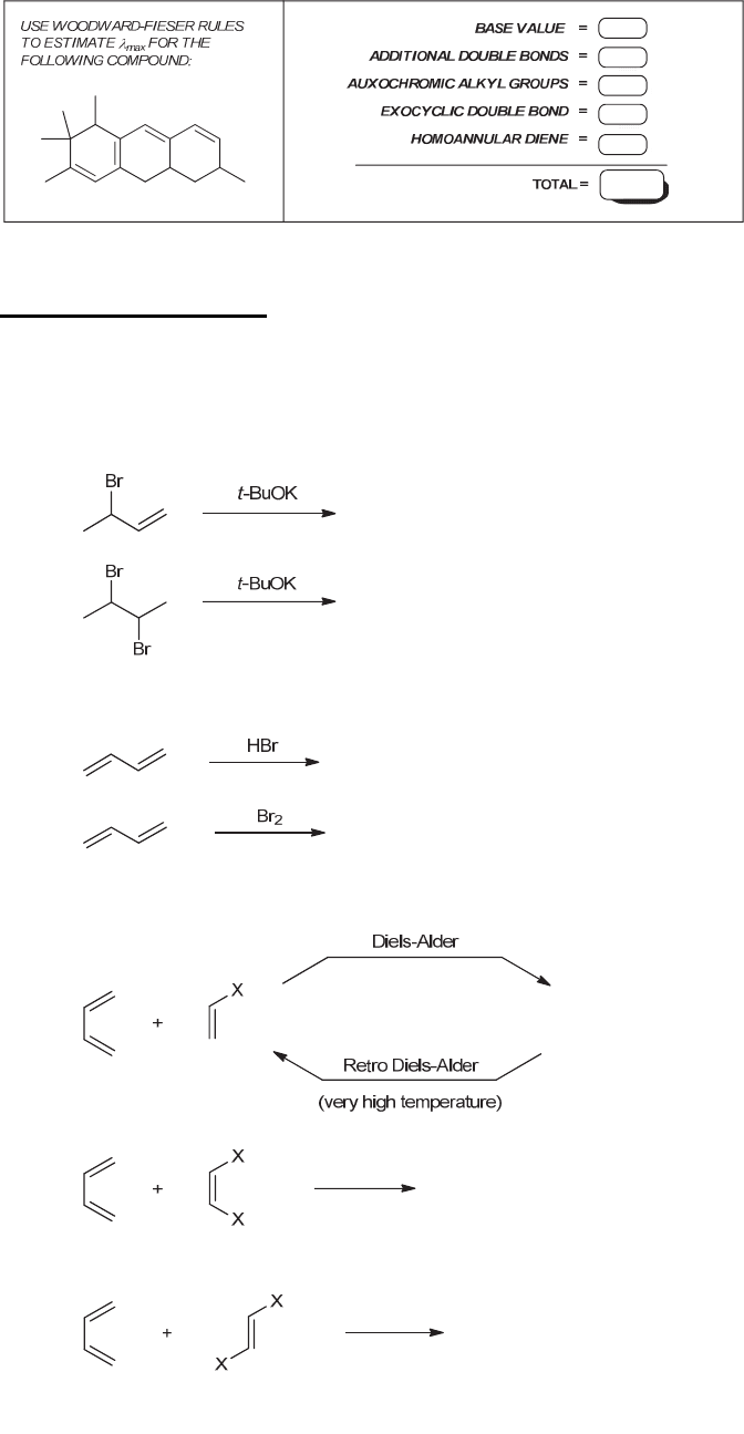 564 CHAPTER 16 16.5 Using Woodward–Fieser Rules to Estimate λmax Review of Reactions Predict the Products for each of the following transformations. To verify that your answers are correct, look in your textbook at the end of Chapter 16. The answers appear in the section entitled Review of Reactions. Preparation of Dienes Electrophilic Addition Diels–Alder Reaction www.MyEbookNiche.eCrater.com