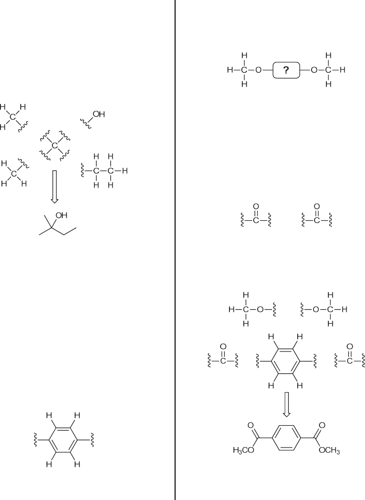 534 CHAPTER 15 neighbors), so we conclude that this likely represents an OH group (the molecular formula indicates the presence of an oxygen atom). If we inspect the fragments that we have determined thus far (an ethyl group, two methyl groups and an OH group), we will find that these fragments account for all of the atoms in the molecular formula (C5H10O) except for one carbon atom. Indeed, this carbon atom is necessary to connect all of the fragments, as shown: 15.24. The molecular formula (C10H10O4) indicates six degrees of unsaturation (see Section 14.16), which suggests an aromatic ring as well as two other degrees of unsaturation. To determine the relative integration values, we divide each of the integration values by 52, giving a ratio of approximately 1 : 1.5. Since the compound has ten protons (C10H10O4), the numbers above must correspond to four protons and six protons, respectively. Now let’s analyze each of the signals individually. The signal at 8.1 ppm is significantly downfield, and likely represents aromatic protons. Since it is a singlet with an integration of 4, it must correspond with a 1,4- disubstituted aromatic ring in which both substituents are identical (therefore rendering all four aromatic protons equivalent). The other signal has an integration of 6, which likely represents two equivalent methyl groups (interchangeable by symmetry). Since the signal is a singlet, these methyl groups must not have any neighbors. The chemical shift is consistent with these methyl groups being connected to oxygen atoms: If we inspect the fragments that we have determined thus far (a 1,4-disubstituted aromatic ring, and two methoxy groups), we will find that these fragments account for all of the atoms in the molecular formula (C10H10O4) except for two carbon atoms and two oxygen atoms. Recall that the compound must have six degrees of unsaturation, and the fragments above only account for four degrees of unsaturation. Therefore, the remaining two carbon atoms and two oxygen atoms are likely carbonyl groups: There are certainly a few different ways to connect all of these fragments, but there is only one way to connect them without breaking the symmetry necessary to keep all four aromatic protons identical: 15.25. Begin by calculating the HDI. The molecular formula indicates 9 carbon atoms and 1 nitrogen atom. These would require 21 hydrogen atoms in order to be fully saturated. There are only 13 hydrogen atoms, so 8 hydrogen atoms are missing. Therefore, the HDI is 4. This is a relatively large number, and it would be inefficient to think about all of the possible ways to have 4 degrees of unsaturation. Anytime we encounter an HDI of 4 or more, we should be on the lookout for an aromatic ring. Keep this in mind when analyzing the spectrum, which we expect to exhibit aromatic protons (near 7 ppm). Next, consider the number of signals and the integration value for each signal. Be on the lookout for integration values that suggest the presence of symmetry. For example, a signal with an integration of 4 would suggest two equivalent CH2 groups. The spectral data indicates a total of 6 signals. Let’s begin with the pair of triplets just below 3 ppm, each of which has an integration of 2. This suggests that there are two adjacent methylene groups. www.MyEbookNiche.eCrater.com