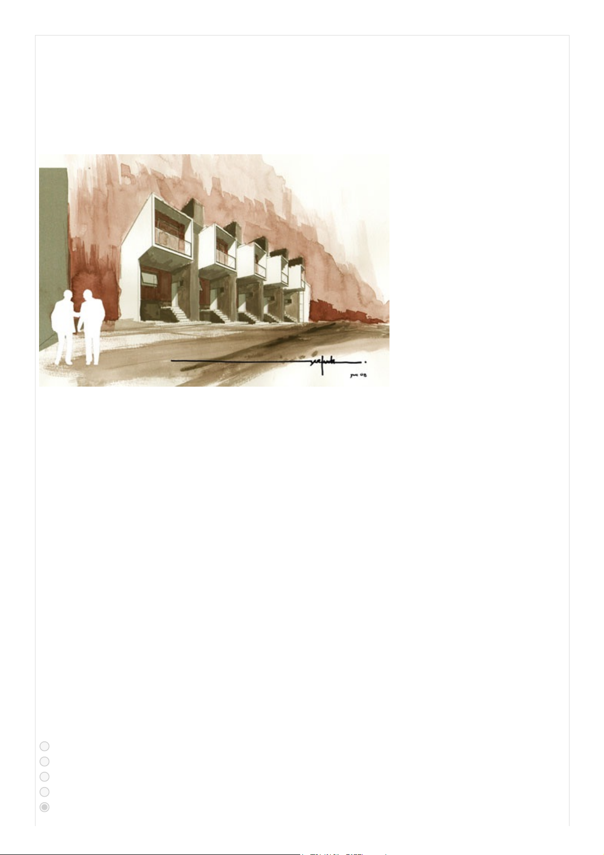No sistema de representação cônica, todos os elementos são projetados sobre um plano de forma convergente e não ortogonal. O desenho em perspectiva representa os espaços em toda sua profundidade, reproduzindo as características tridimensionais da realidade. Observe o desenho em perspectiva cônica do conjunto habitacional com unidades iguais e equidistantes apresentado a seguir. Box House (Yuri Vital, São Paulo, 2008). Disponível em . Acesso em 11 jun. 2010. Considerando o tipo de perspectiva utilizada, são feitas as afirmações a seguir. I. A distância entre as casas diminuirá à medida que se afastam e seu tamanho também diminuirá na proporção indicada pelas retas que convergem para o ponto de fuga. II. As linhas verticais são paralelas entre si. III. As profundidades são obtidas com um único ponto de fuga para onde convergem as linhas das faces laterais. IV. As profundidades convergem para dois pontos de fuga situados na linha do horizonte. São corretas as afirmações Alternativas: A: I e III, apenas B: II, apenas C: II e III, apenas D: I, II e III, apenas E: I, II e IV, apenas 01/04/2026, 11:54 UNIP - Universidade Paulista : DisciplinaOnline - Sistemas de conteúdo online para Alunos. https://online.unip.br/Imprimir/ImprimirExercicio 1/2 Resposta do aluno: E Justificativa(s) do aluno: 01/04/2026, 11:54 UNIP - Universidade Paulista : DisciplinaOnline - Sistemas de conteúdo online para Alunos. https://online.unip.br/Imprimir/ImprimirExercicio 2/2